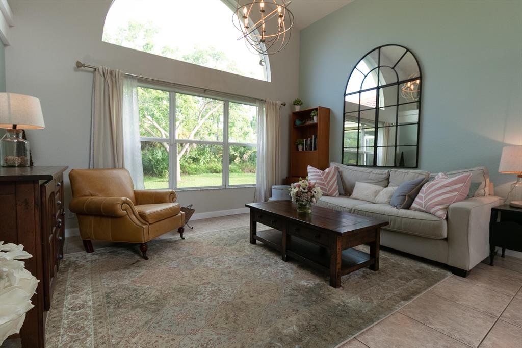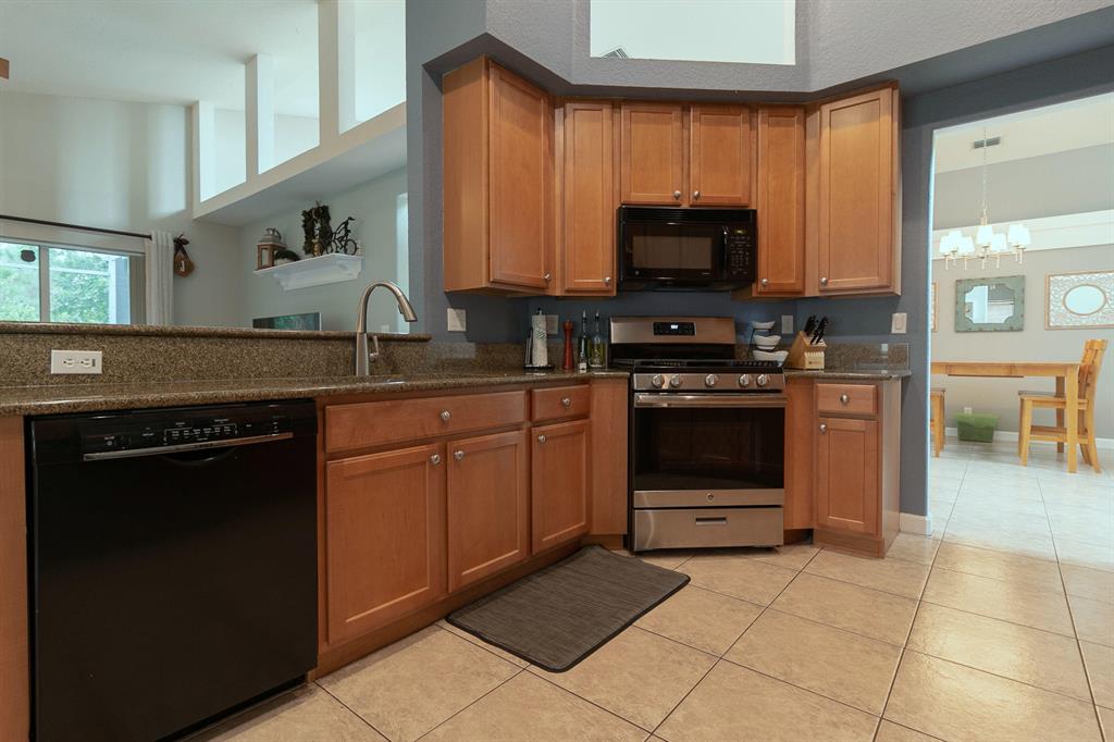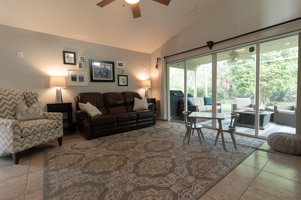 Bright and open floorplan. 3 bedrooms, 2 bath, 2 car garage. Spacious kitchen with granite counters, new gas range, refrigerator. Breakfast nook as well as formal dining area. Formal living room and family room. Gas powered dryer. Screened patio overlooks private backyard that backs to a nature preserve. Complete hurricane shutters. Commercial grade carpeting in bedrooms. Wall to wall carpet tiles in 2 of the bedrooms can be removed, washed and even bleached!