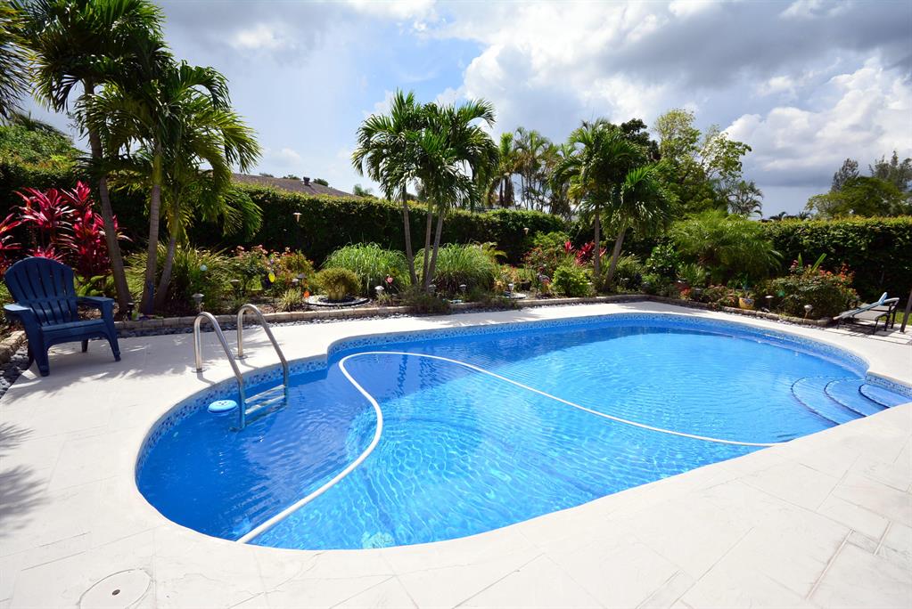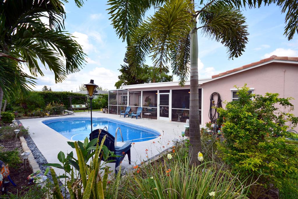Wow! One of a Kind Tropical Paradise. Beautifully landscaped & completely renovated pool home with private backyard & 2 car garage, located on culdesac street. S-Tile Roof. Large eatin kitchen with new granite counters, many cabinets, new stainless steel Whirlpool appliances, new lighting & large pantry. Renovated bathrooms with new tile,fixtures,cabinets,lights. Working Fireplace. Wood & Pergo floors thruout. 8'' baseboards in liv rm & 6'' in other rooms. Alarm System. AC is 3 years. New French doors lead out to covered screened (new enclosure) patio area, which overlooks resort style backyard. Pool has glow in dark pool tiles. Large private hedged yard surround the gorgeous landscaped pool &patio area. New double led lights in back. Low HOA fees. Walk to excellent schools, parks,shopping