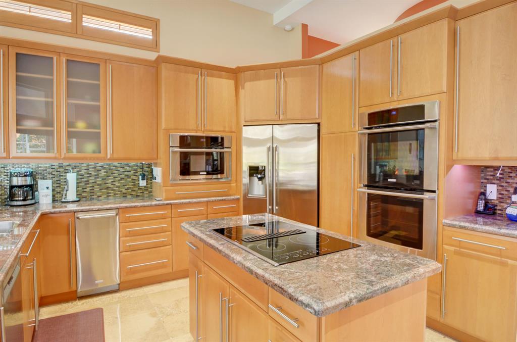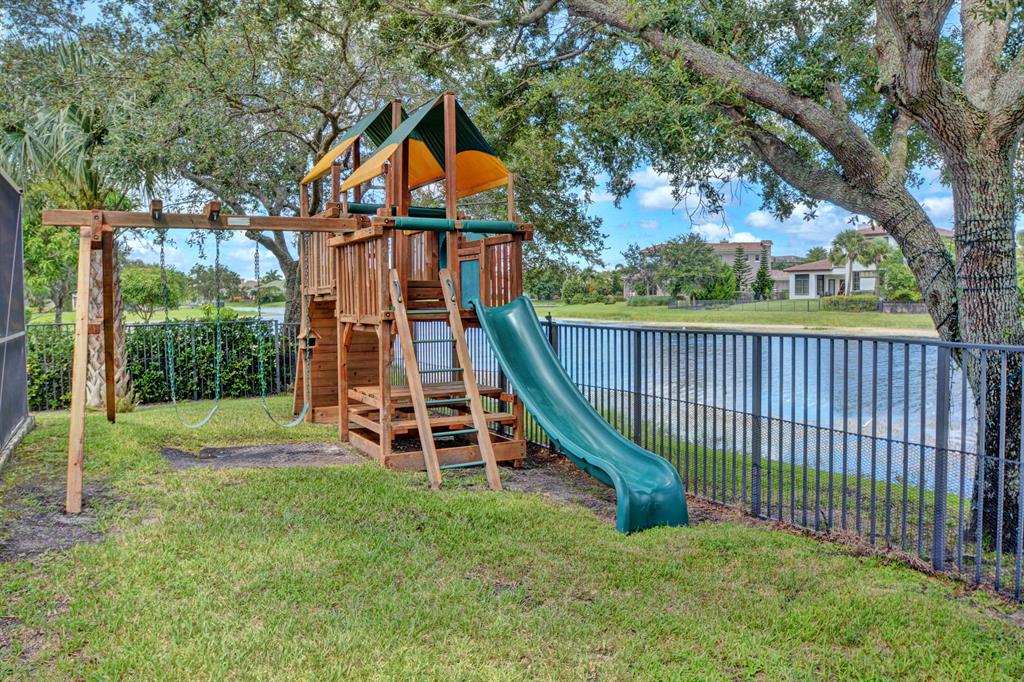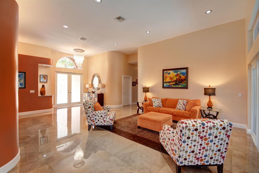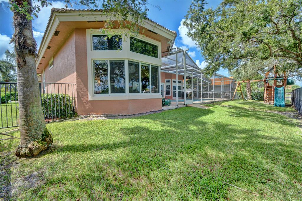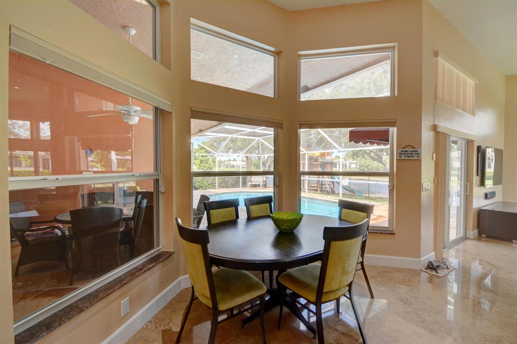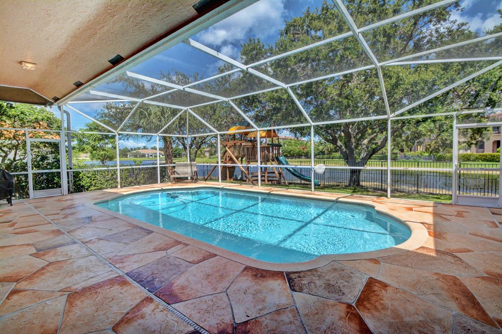 Beautiful, updated, MINT-condition home with long lake views in the gated community of Meadow Run. Single-story 5 bed/4.5 bath split floor plan. Fully renovated in 2010 to include COMPLETE HURRICANE IMPACT GLASS WINDOWS AND DOORS, 36'' Italian Marble floors in main living area and real wood floors in the master and office. Open kitchen with high end custom 48'' cabinets, granite countertops, stainless Electrolux and Bosch appliances and a double oven! All bathrooms have granite countertops and updated vanities. Office has a custom designed workspace and built in shelves in closet. Outside space includes saltwater, heated + screened pool, cabana bath and fenced yard. Completely ready to move in! COME SEE THIS IMMACULATE HOME! Community has playground + tennis courts.