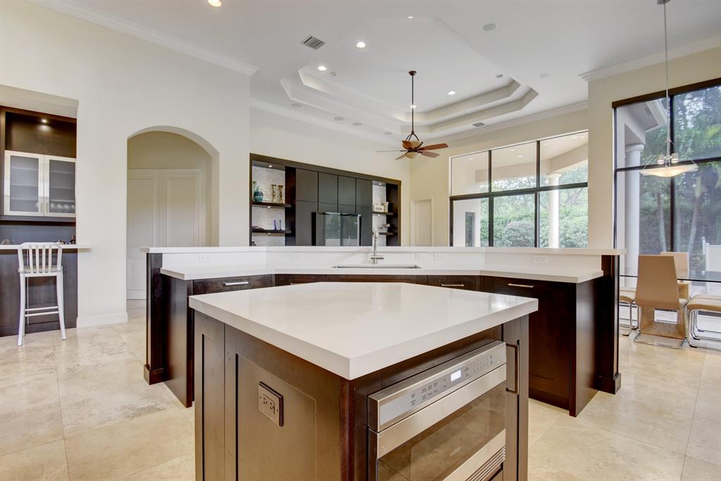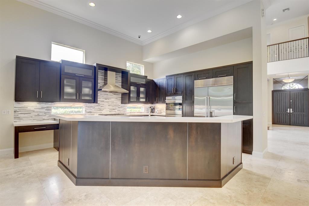 THIS AMAZING 5BDRM CORDOBA V MODEL SITS ON AN OVERSIZED LOT ALMOST 1/3 OF AN ACRE. A HUGE SIDE YARD FOR YOUR KIDS TO PLAY. This popular floor-plan has the master down with a Den/Office. This home boast a newly renovated kitchen with top of the line Wolf double oven, Wolf Microwave Drawer, and 2 Miele dishwashers perfect for cleanup after entertaining. The mosaic backsplash complements the new Caesar stone quartz. Custom stone built-in the family room.The Bar has a Subzero wine cooler.The main floor has 24x24 Marble and there are plantation shutters throughout.The green space of this home is fantastic. Large yard for kids or dogs to play. The oversize driveway has adequate parking for your guest. Newly renovated Clubhouse and restaurant is fantastic. THIS HOME IS A MUST SEE!! Easy to show
