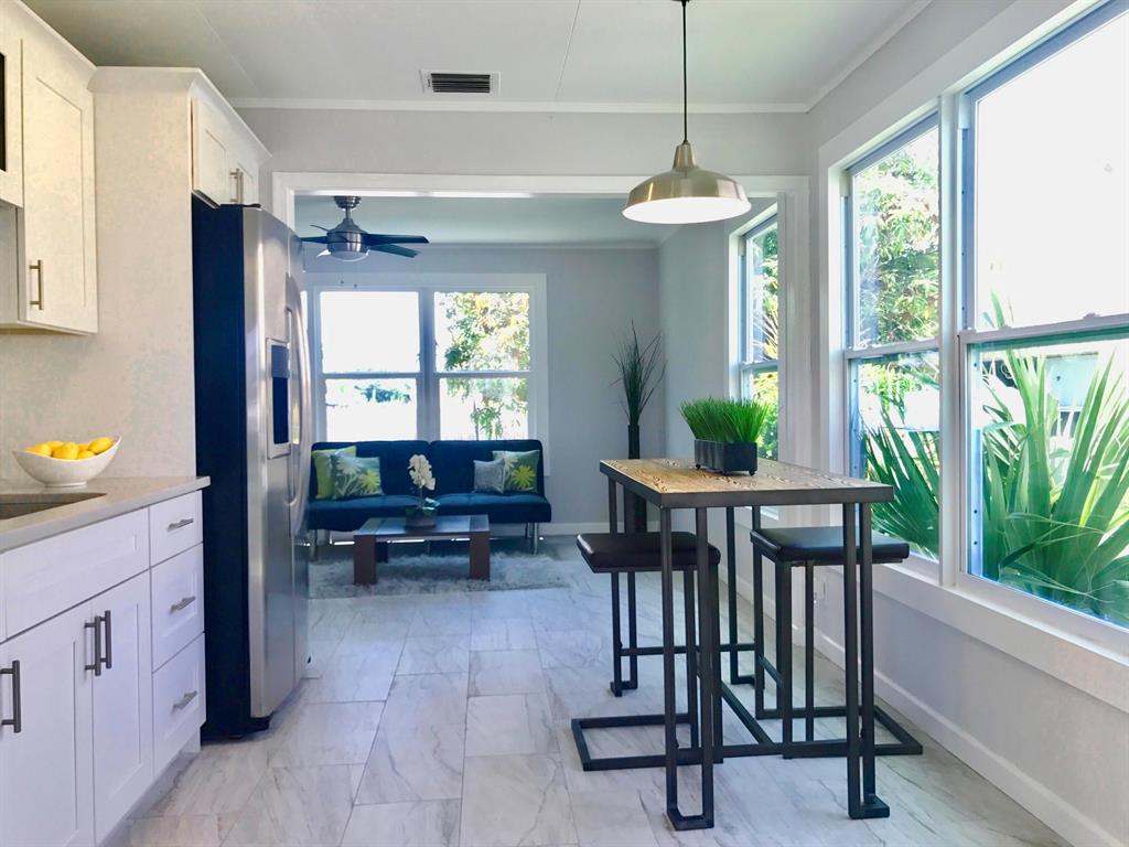 SELLER WILL GIVE $1000 CLOSING CREDIT Location, location!!! This completely remodeled adorable home is minutes away from I-95 , Downtown WPB/City Place and the beach, as well as walking distance to the Palm Beach Zoo and the beautiful Dreher Park. This perfect home has had much of the plumbing and electric updated; brand new hurricane impact, energy efficient windows throughout; a new tankless water heater; a new A/C; new Shaker white kitchen cabinets with quartz countertops and stainless steel appliances, new modern grey ceramic tile floor; a new white subway tile bathroom with double vanity sink; laundry room with stackable washer/dryer for your convenience. You will love the meticulous landscaping in the yard and has an outside Shed for storage.
