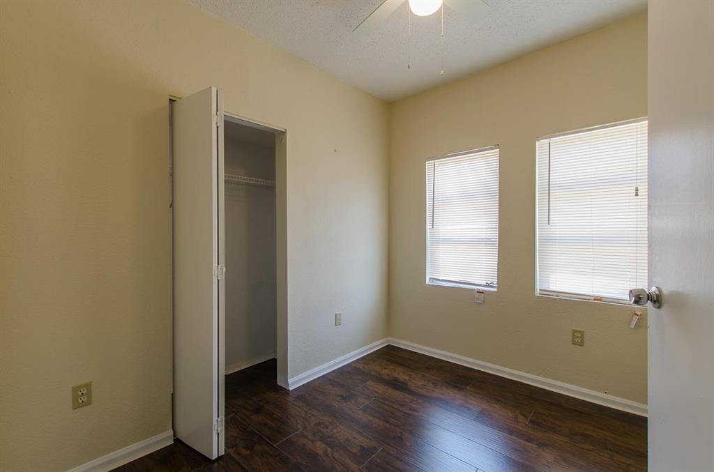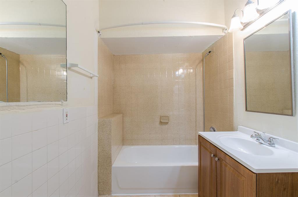 Spacious 2 bedroom 1 bathroom home features updated kitchen and bathroom. Wood flooring in bedrooms. Fenced in back yard.