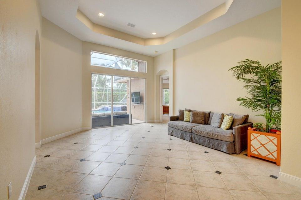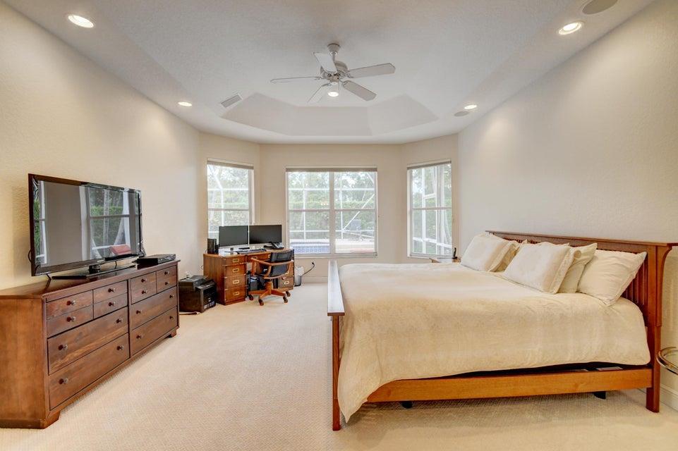 Immaculate rare Bordeaux Model/Vintage Collection! 4 bedroom 3 bath one-story home with 2 car garage on south facing private lot. Beautifully screened heated salt water pool and spa with custom lighting and covered patio. Tile floors in the living areas. Split bedroom plan for maximum privacy. Master has 2 walk in custom closets, twin sinks, roman tub, and bay window. Kitchen well appointed with white cabinets, double wall oven, granite countertops and breakfast bar overlooking the family room and pool area. Also NEST thermostat. Light and bright home! Saturnia amenities include a manned-gated entrance, resort style pool, tennis courts, clubhouse, fitness center and children's playground. Don't miss this move in ready home!