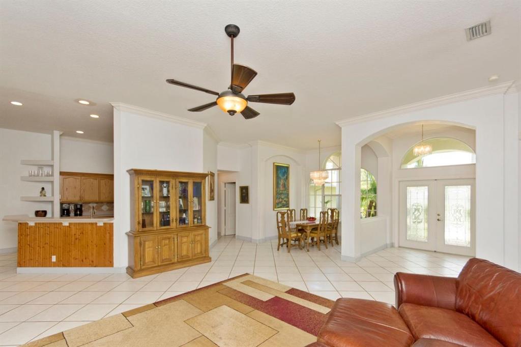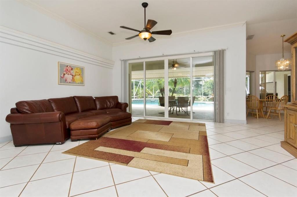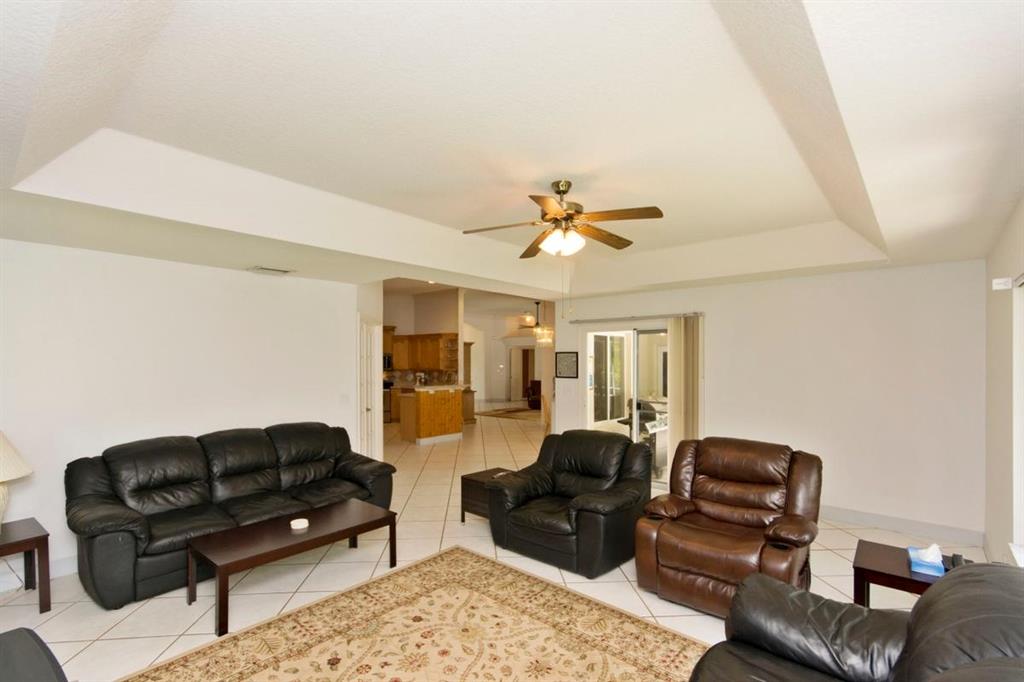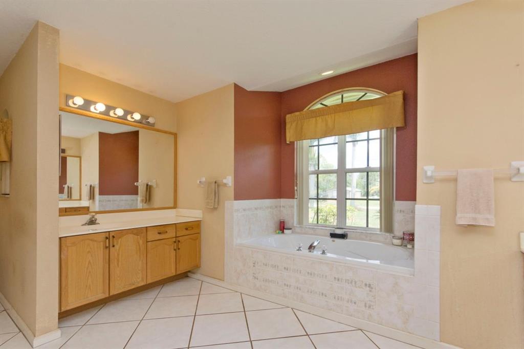 Fabulous 4 Bedroom 2 bath pool home. Large eat-in kitchen with S/S appliances, hardwood cabinets & Corean counters. Spacious master bedroom has his/her walk-in closets, an en-suite bathroom with double sinks, soaking tub & separate shower. This home flows from room to room for perfect family living or an entertainer's delight. Living areas are tiled on the diagonal & bedrooms have wood laminate flooring. High volume & trey ceilings are accented with crown molding. Impact glass front door & overhead window. Screened in heated salt water pool & spa has an interior Aqualink controller. Other extras include a generator transfer switch, wide concrete driveway, storage shed, fenced in yard for pets & a variety of fruit bearing trees. This recently painted home comes with a 1 year home warranty.