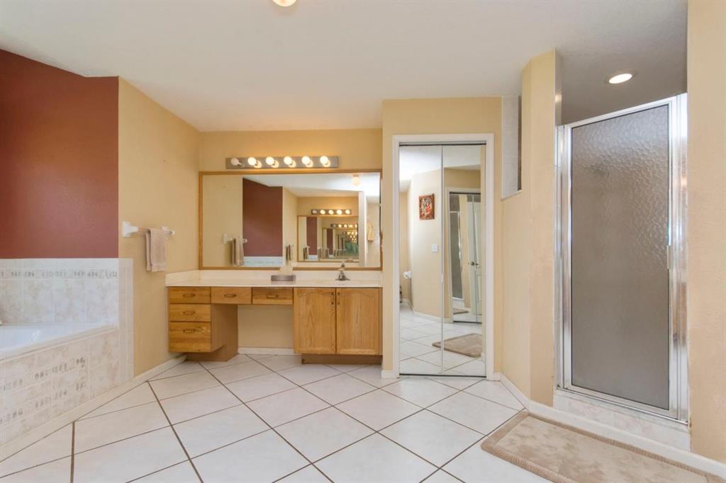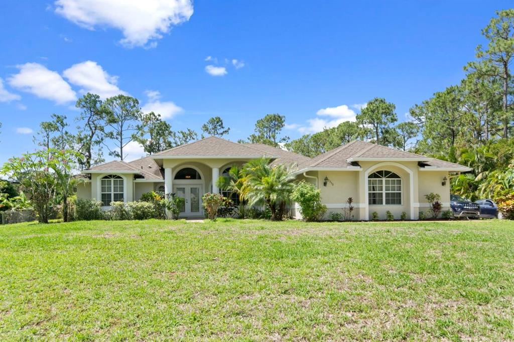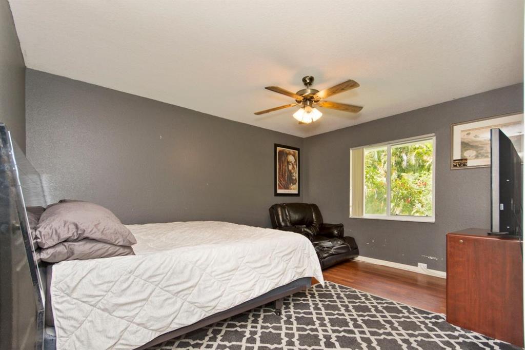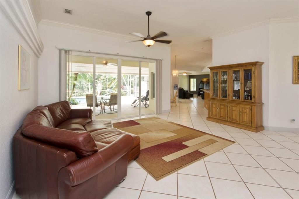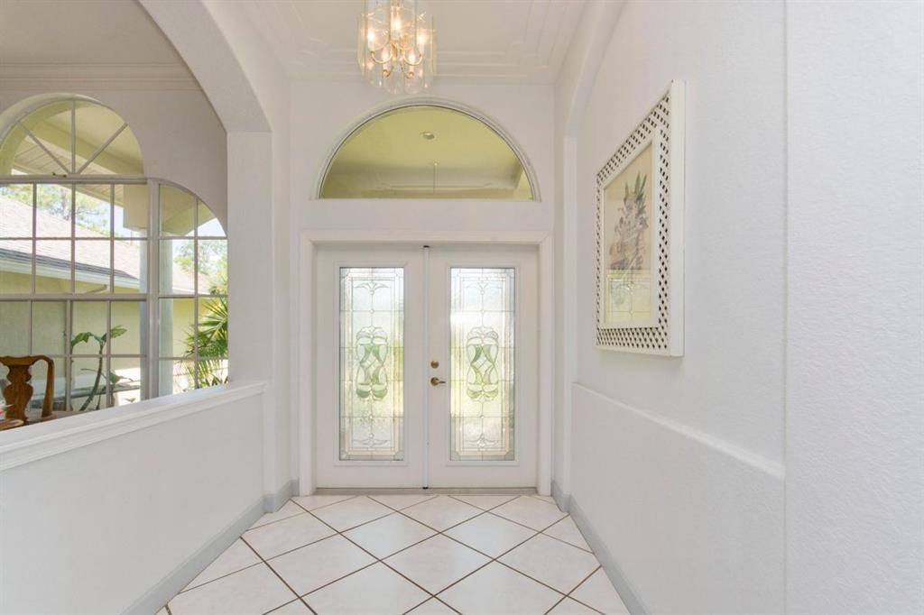 Fabulous 4 Bedroom 2 bath pool home. Large eat-in kitchen with S/S appliances, hardwood cabinets & Corean counters. Spacious master bedroom has his/her walk-in closets, an en-suite bathroom with double sinks, soaking tub & separate shower. This home flows from room to room for perfect family living or an entertainer's delight. Living areas are tiled on the diagonal & bedrooms have wood laminate flooring. High volume & trey ceilings are accented with crown molding. Impact glass front door & overhead window. Screened in heated salt water pool & spa has an interior Aqualink controller. Other extras include a generator transfer switch, wide concrete driveway, storage shed, fenced in yard for pets & a variety of fruit bearing trees. This recently painted home comes with a 1 year home warranty.