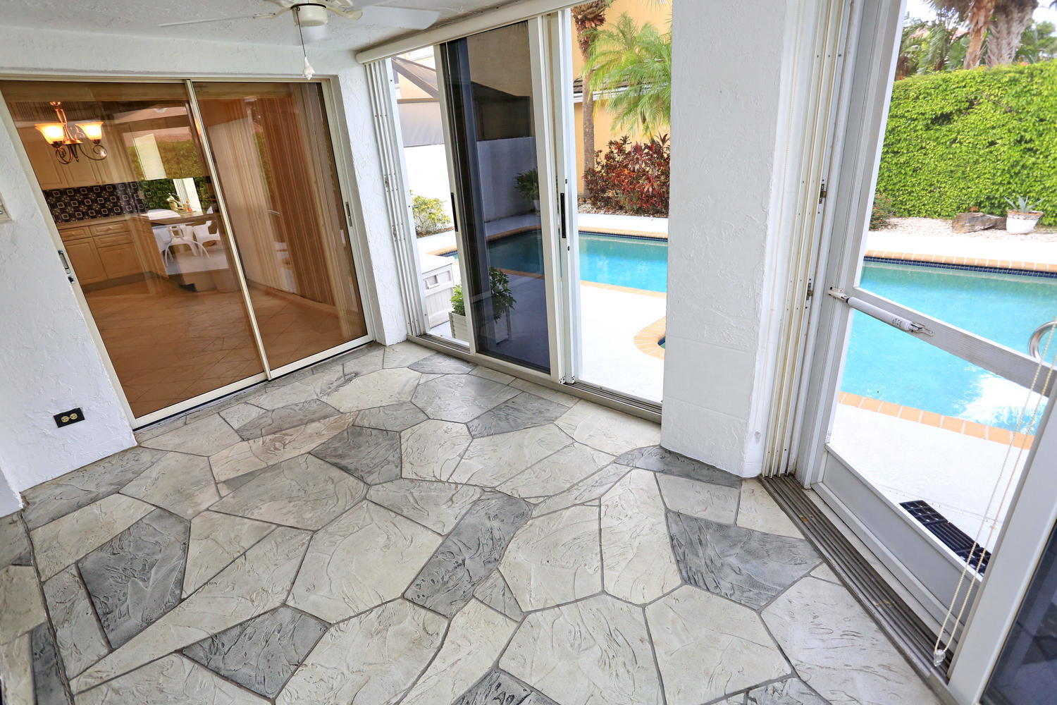 Immaculate 3/2 Single Family pool home, freshly painted interior, new laminate floors through-out living area and bedrooms. Large kitchen with breakfast area, stainless steel appliances and kitchen island. Screened patio and entry foyer. Lots of storage in this home with custom built ins and large custom walk in closets. TV in Master Bedroom included. Hot Tub negotiable. Mission Bay is located in the heart of Boca with excellent schools and resort style amenities.