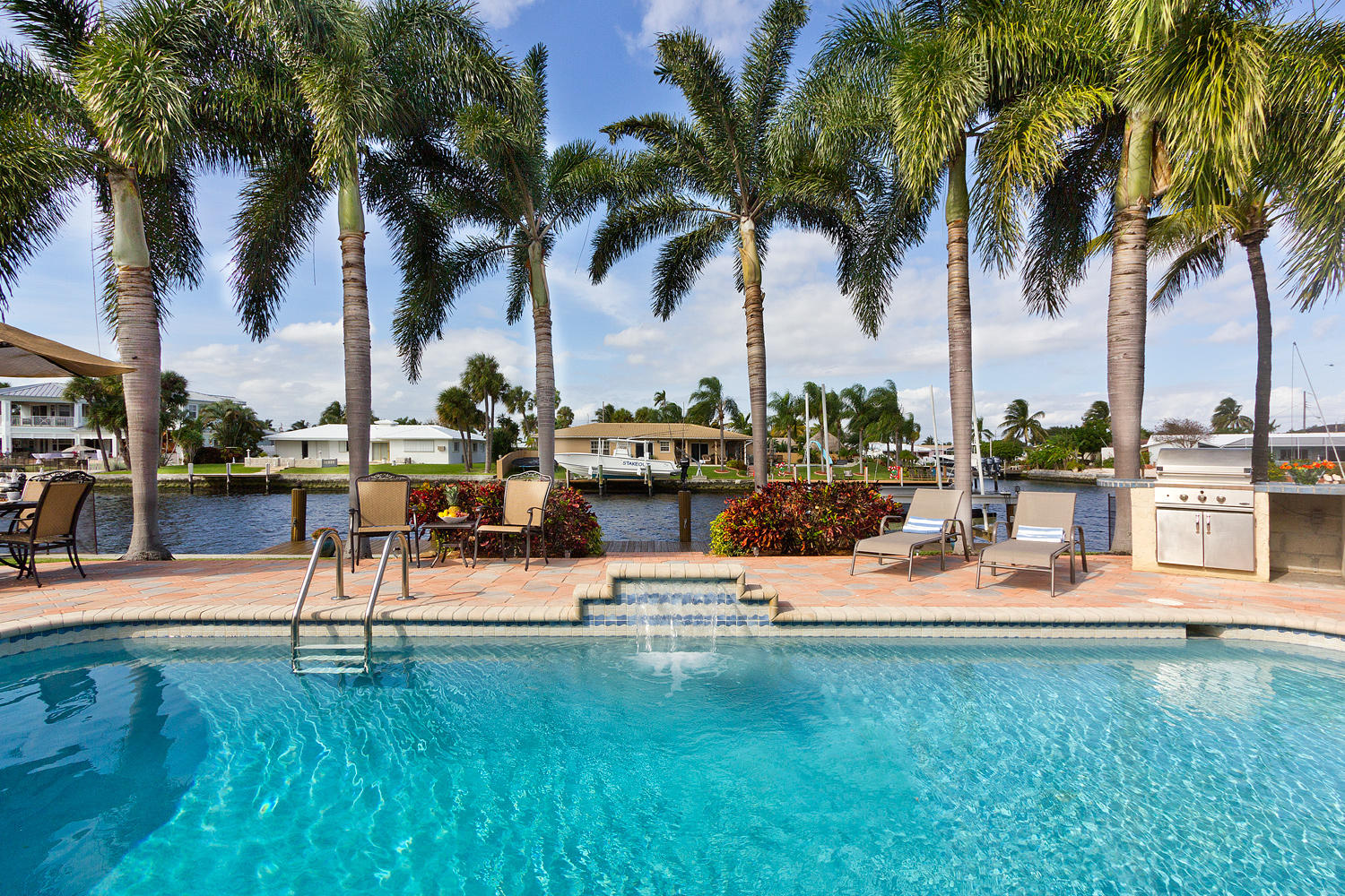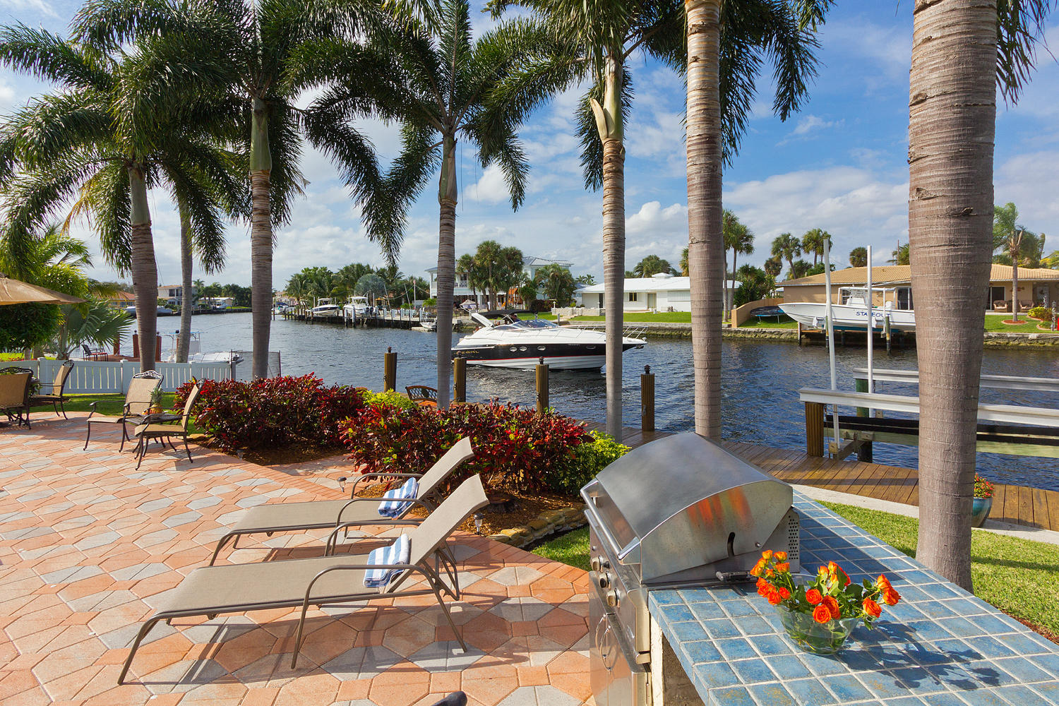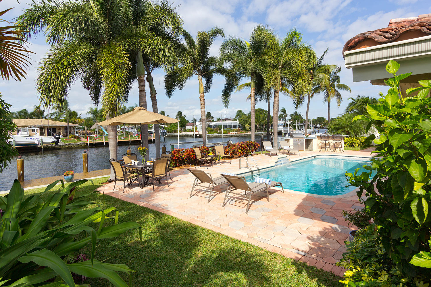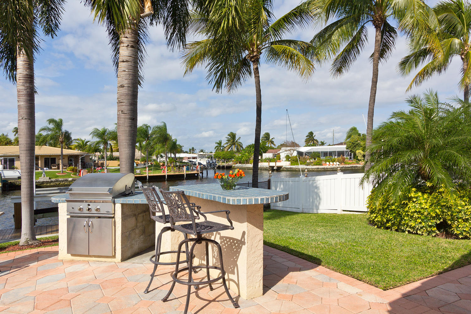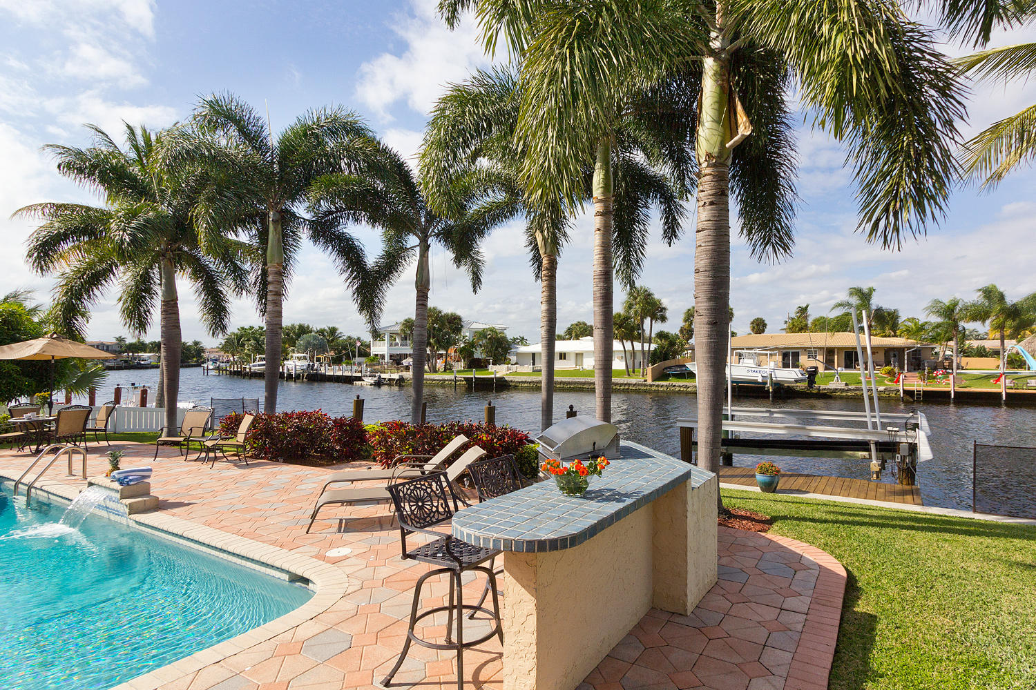 Come and see one of the best waterfront locations in Cypress Lakes, Pompano Beach! This waterfront home is situated on the main boat canal, which is very wide and leads to Lake Santa Barbara with only one fixed bridge. The outside yard has six large majestic Royal Palm Trees, a built in BBQ grill with an attached bar, a beautiful pool, and a well-maintained dock. The front of the house is on a cul-de-sac, which is why it is a very quiet street with little to no traffic. Unique aspects in this house would be the very large kitchen with a separate dining room, living room, and family room. Not to mention that the house has impact windows and sliding glass doors throughout. You'll enjoy the spectacular water view from not only the living and family rooms, but also the master bedroom.