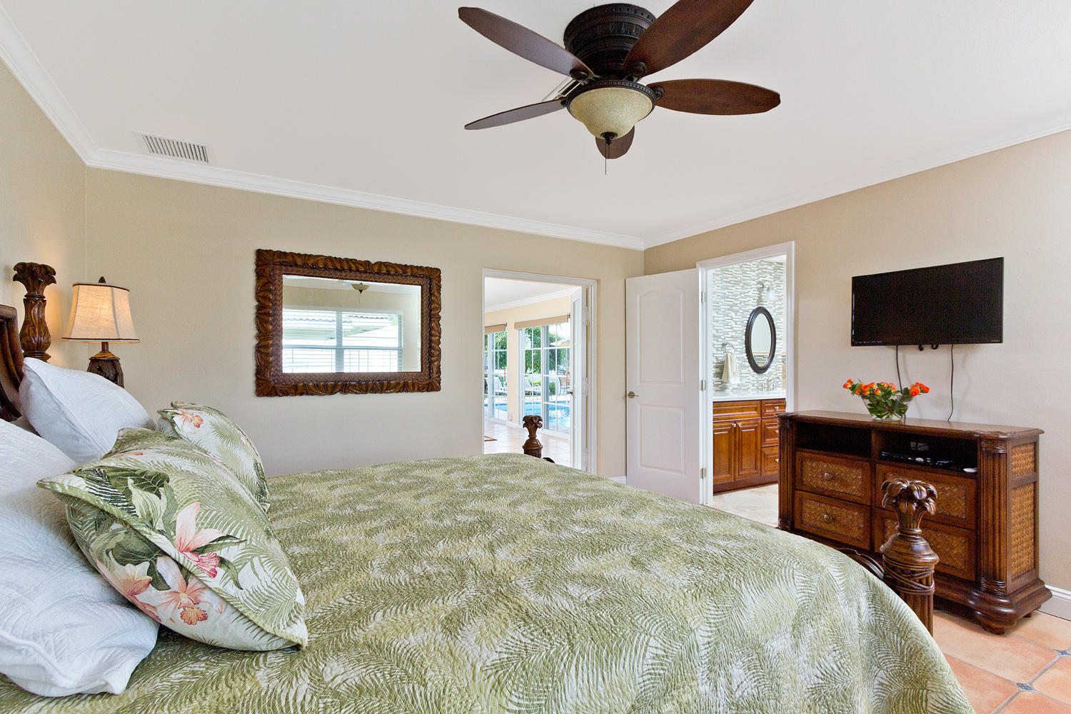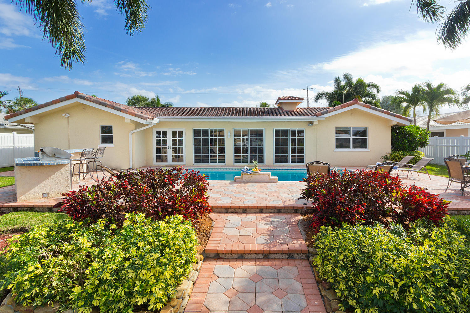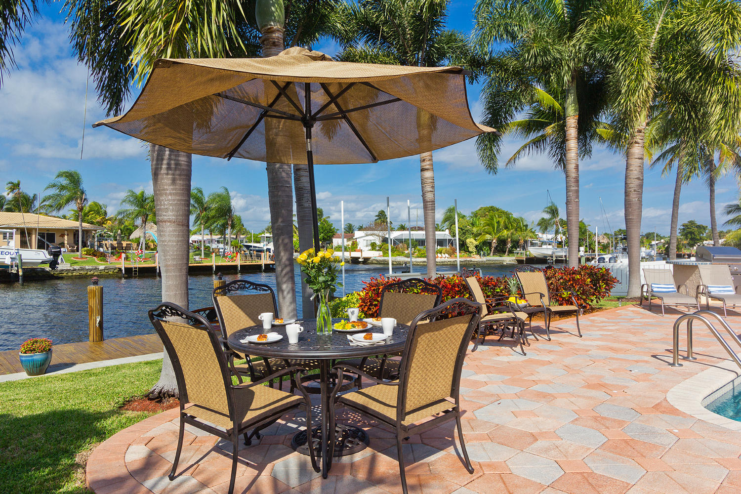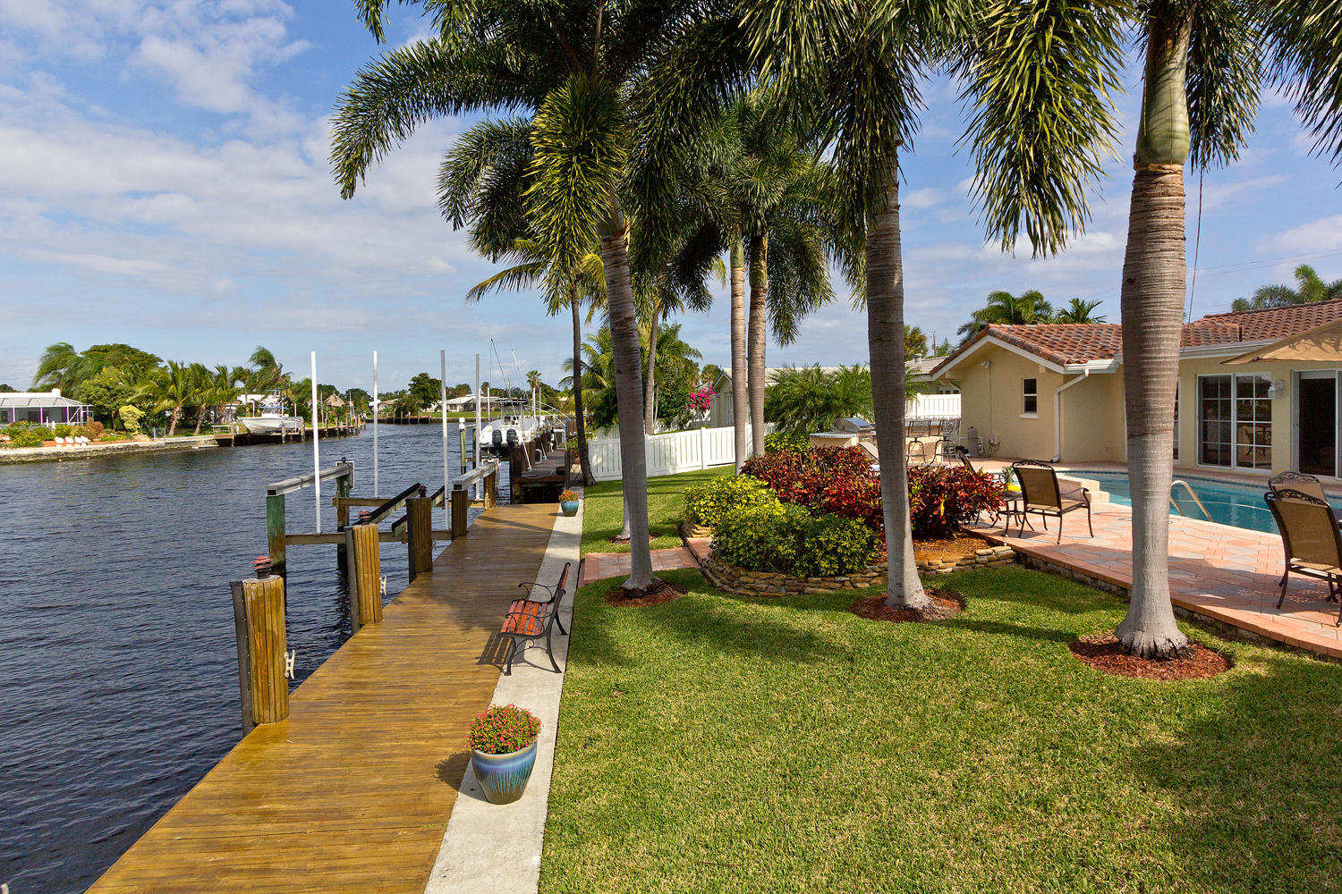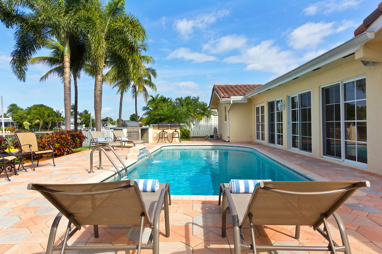Come and see one of the best waterfront locations in Cypress Lakes, Pompano Beach! This waterfront home is situated on the main boat canal, which is very wide and leads to Lake Santa Barbara with only one fixed bridge. The outside yard has six large majestic Royal Palm Trees, a built in BBQ grill with an attached bar, a beautiful pool, and a well-maintained dock. The front of the house is on a cul-de-sac, which is why it is a very quiet street with little to no traffic. Unique aspects in this house would be the very large kitchen with a separate dining room, living room, and family room. Not to mention that the house has impact windows and sliding glass doors throughout. You'll enjoy the spectacular water view from not only the living and family rooms, but also the master bedroom.