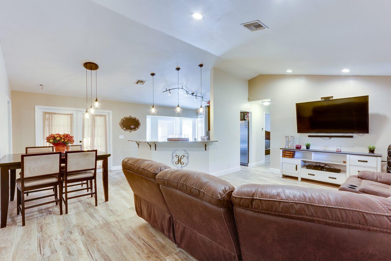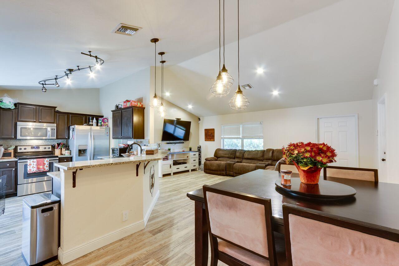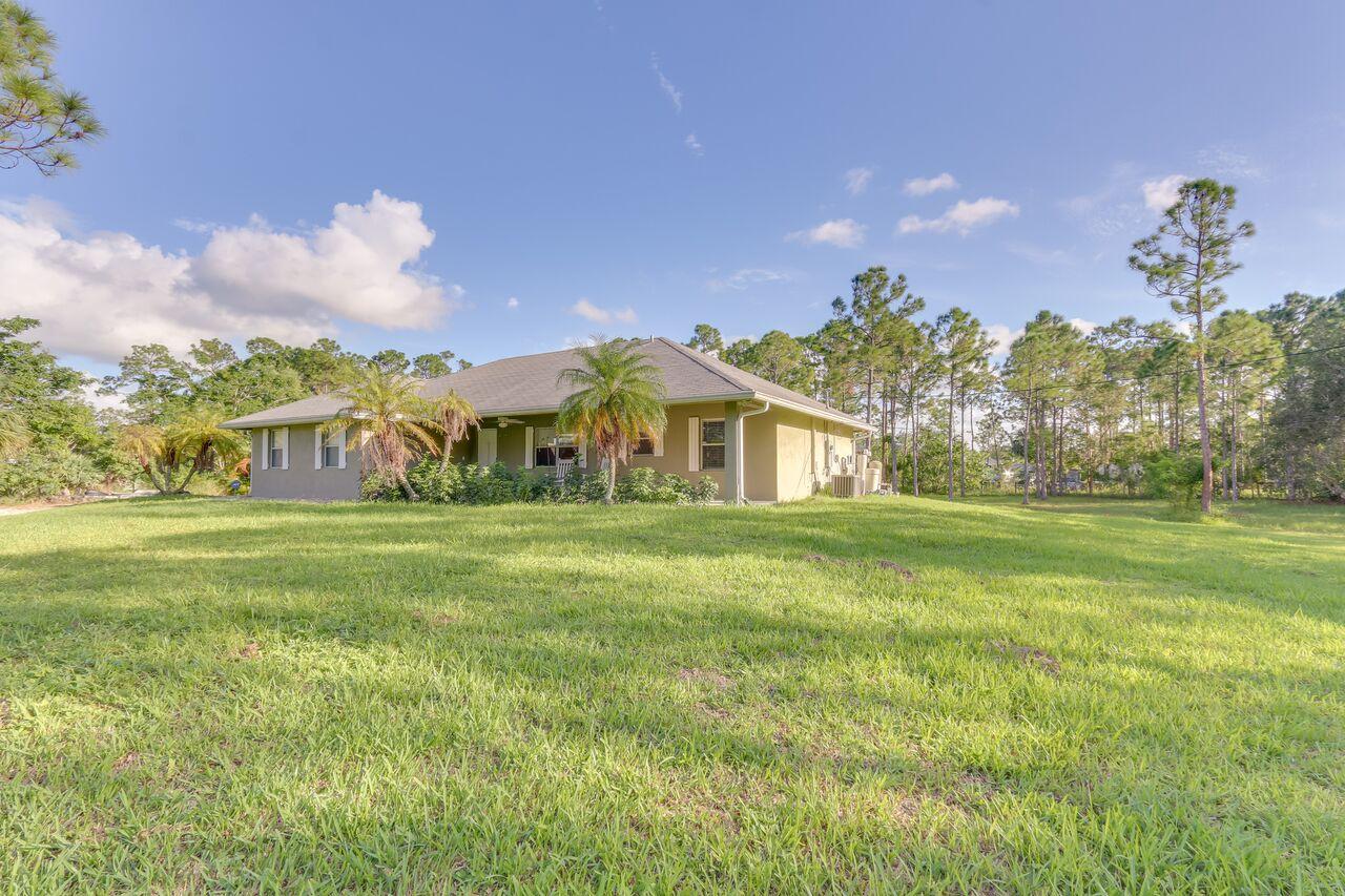 Beautifully updated 3/2-2 car garage CBS home. Completely upgraded kitchen with newer stainless steel appliances, dark cabinetry, granite counter tops. Open layout, split bedroom floor plan, new modern wood tile throughout living area. All new fixtures, Modern lighting, granite vanities in bathrooms. Huge front porch (36 x 8) large screened in back patio (20 x 14). Attractive exterior situated on a private fully fenced with electric gate 1.31 acre corner lot at the end of the block next to a small canal. GREAT SCHOOLS!! Move in ready, just bring your belongings. Not a home you want to miss!