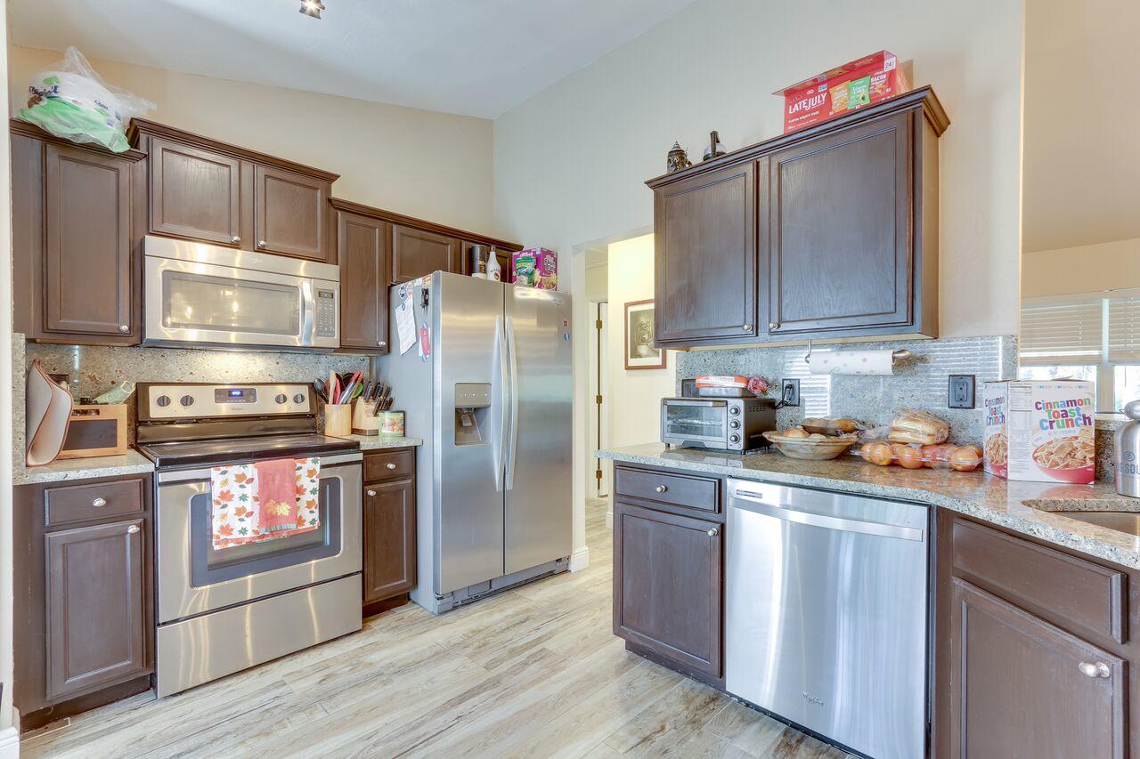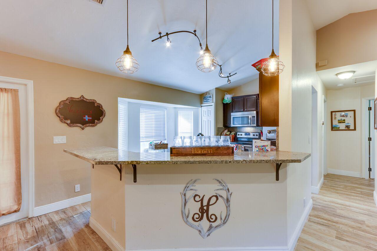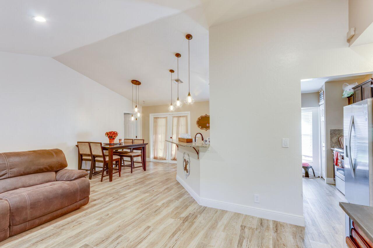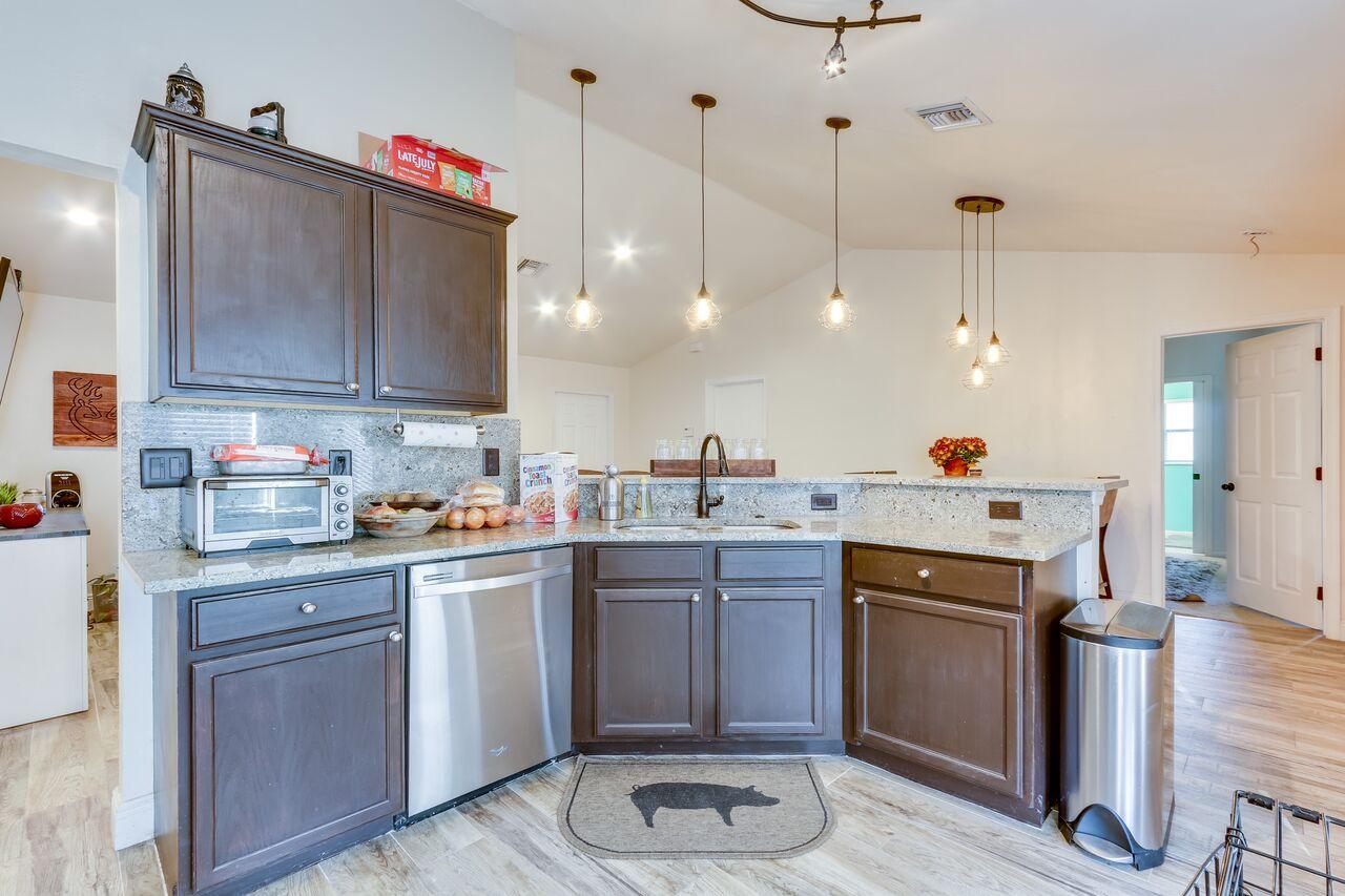 Beautifully updated 3/2-2 car garage CBS home. Completely upgraded kitchen with newer stainless steel appliances, dark cabinetry, granite counter tops. Open layout, split bedroom floor plan, new modern wood tile throughout living area. All new fixtures, Modern lighting, granite vanities in bathrooms. Huge front porch (36 x 8) large screened in back patio (20 x 14). Attractive exterior situated on a private fully fenced with electric gate 1.31 acre corner lot at the end of the block next to a small canal. GREAT SCHOOLS!! Move in ready, just bring your belongings. Not a home you want to miss!