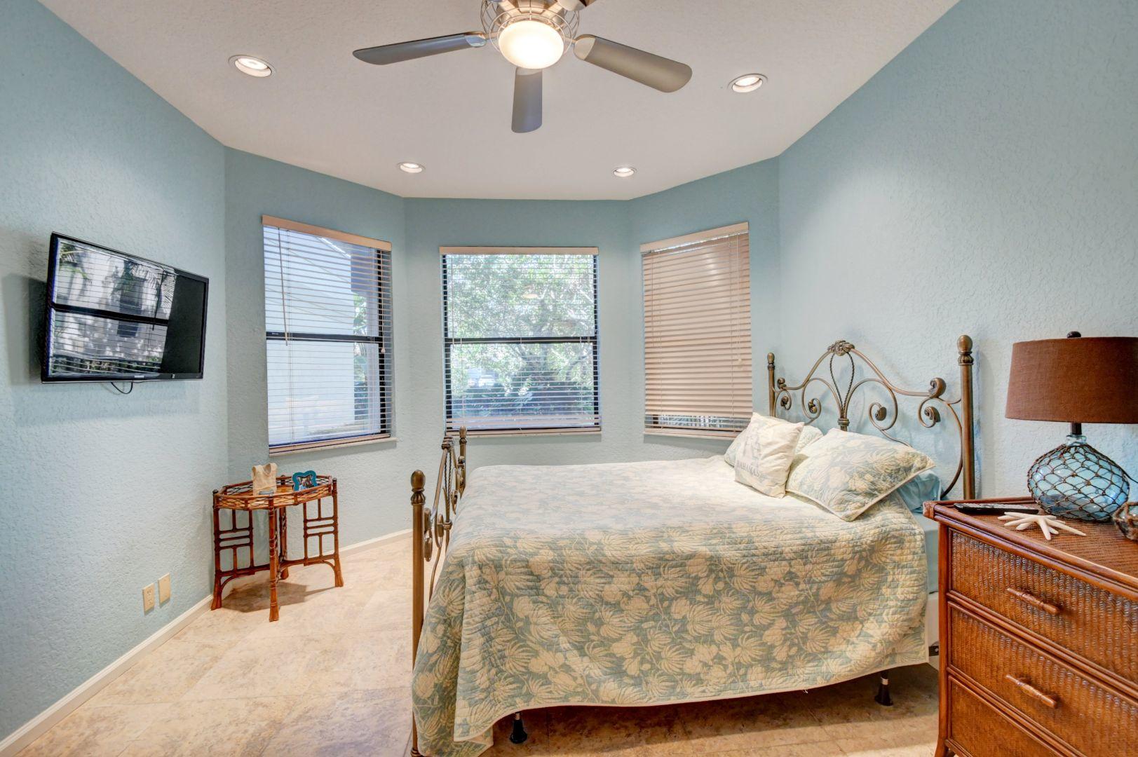 Hard to find single story with 3 bedrooms and a den. This great room home has a fabulous gourmet eat-in kitchen with butler's pantry and wine cooler. The over sized master has a dual sink bath with roman tub, separate shower, toilet and bidet. The floors in the master are wood while the living areas and remainder of house has ceramic tiles. There is a formal dining area, two ensuite bedrooms, and a great den or office. The deck and pool area are sunny and in a private setting. Buyer will be responsible for $2000 BSMA fee.