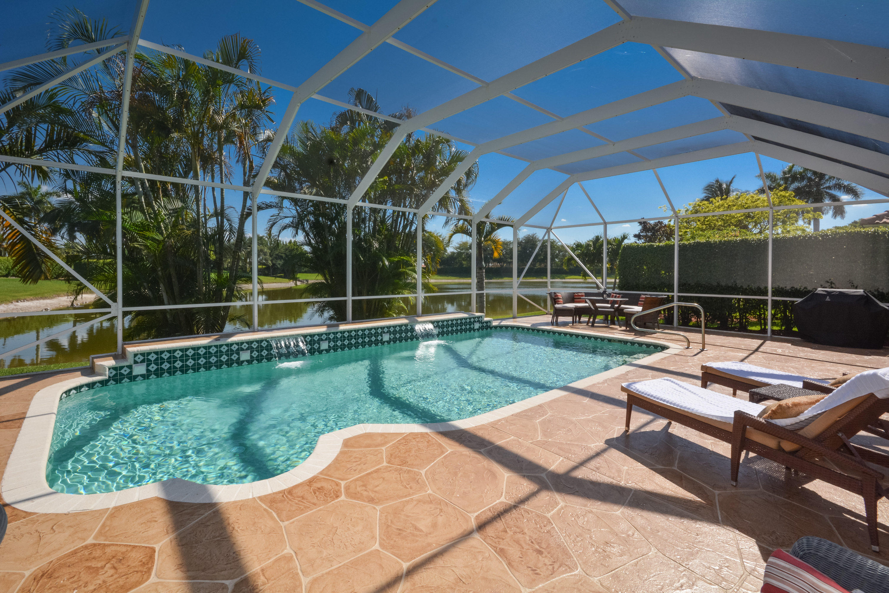 ***OWNER MOTIVATED*** Stunning custom 4 bedroom 3 1/2 bath pool home with a 3 car garage located in Cascades. Oversized screened pool area with expansive entertaining space overlooking spectacular lake views. Granite kitchen, wood cabinets, custom built-ins, accordion hurricane shutters and much more! Open concept for easy Florida living! A Must see!
