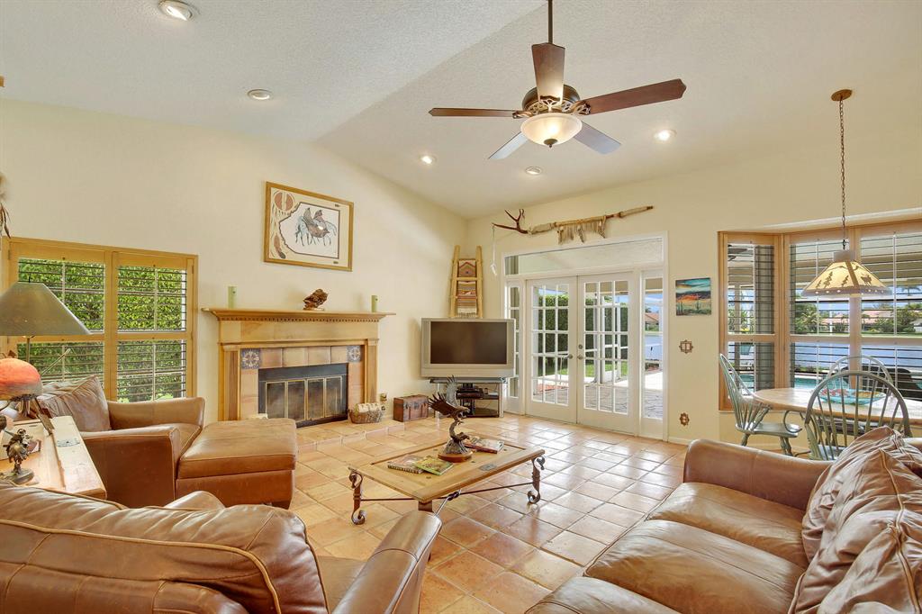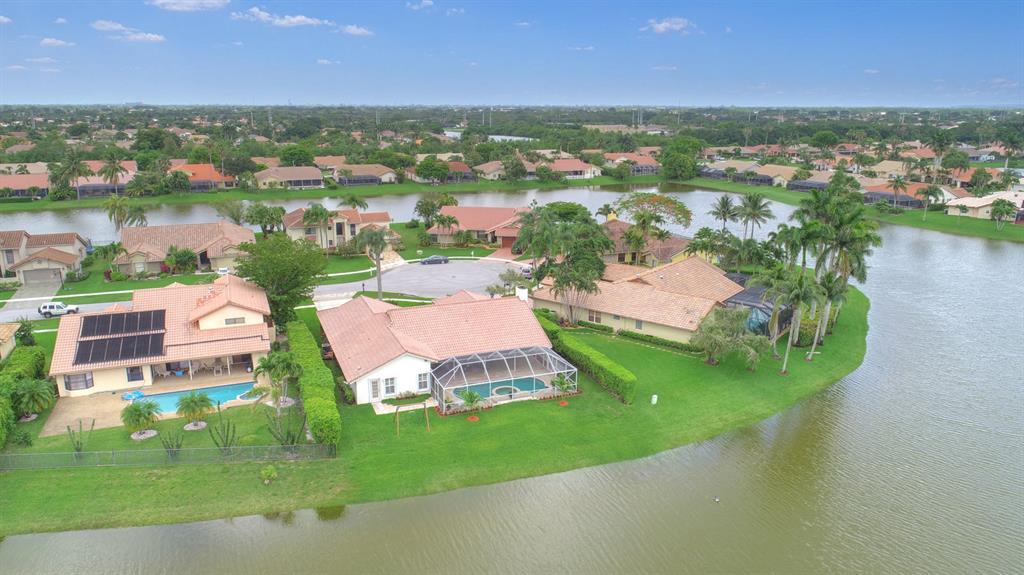 Popular Bermuda model on the most desirable cul-de-sac lake lot with forever water views. Pretty landscaping and double leaded glass doors welcome you into the open living & dining rooms w/high ceilings, real wood floors & crown molding. French doors in Family Room, Living Room & Master Bedroom. Plantation shutters on most windows. Spacious eat-in kitchen, overlooking the family room with fireplace, has wood cabinets & pantry,snack bar/island w/vegetable sink, planning desk + breakfast nook w/bay window. Beautiful pool & lake views too! Luxurious Master Suite & bathroom overlooking the lake, features French doors out to the pool, a large walk-in closet, high ceilings, long vanity w/double sinks, jetted soaking tub + a separate shower. Screened pool w/UroTile patio & large covered porch.