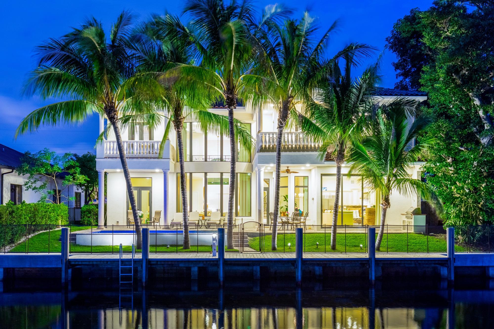 This stunning waterfront estate offers all the luxury of a new build without the hassle of waiting! Bring your 70 ft yacht to this no fixed bridge deepwater home and enjoy all that South Florida luxury living has to offer. With a South facing pool, 80 total feet of deepwater, an outdoor kitchen and multiple terraces, you can enjoy the Florida sun from sunrise to sunset. Inside you will find Wolf professional 48 inch gas range and a 48 inch Sub-Zero beverage cooler, soaring 24ft ceilings, with 12ft first floor ceilings and 10ft impact glass windows taking in gorgeous natural light and views. The first floor features 1 bedroom and 1.5 bathrooms. Take the grand rod-iron stairs to find an open loft and 5 more bedrooms with en-suite bathrooms upstairs, including the spacious master retreat.
