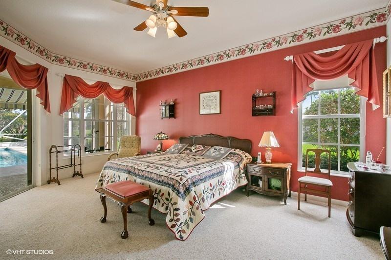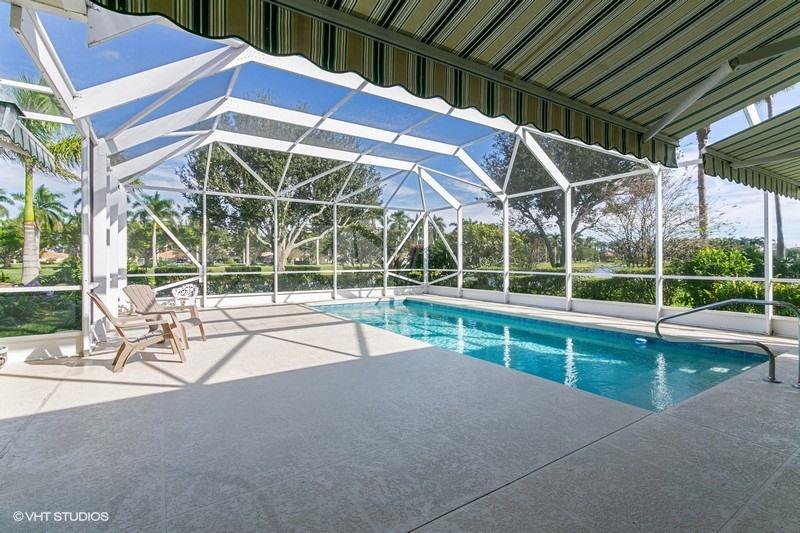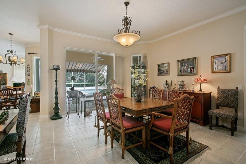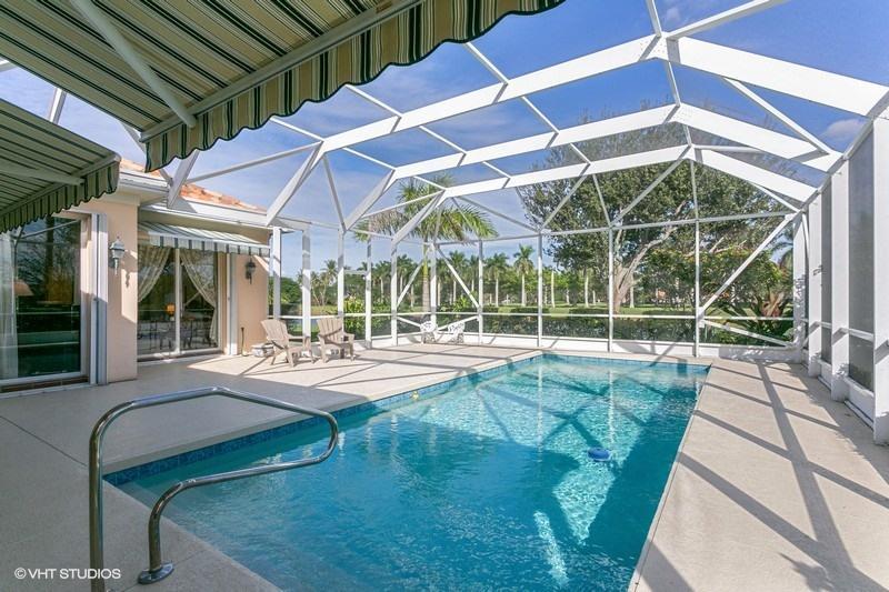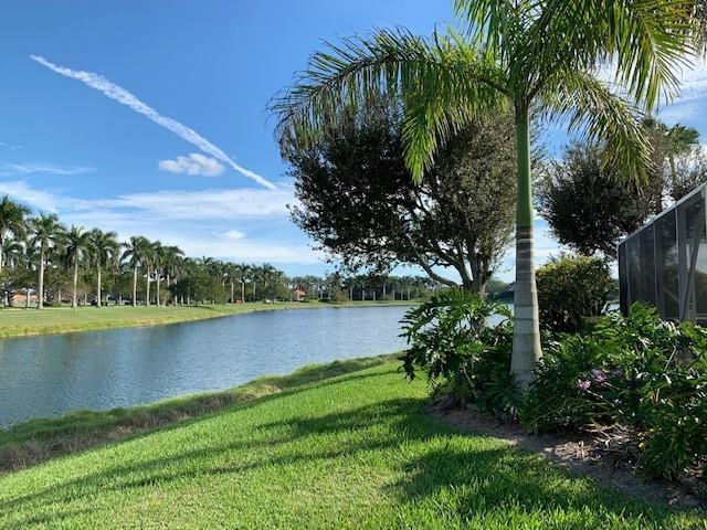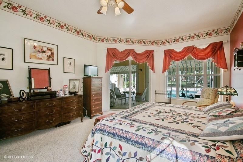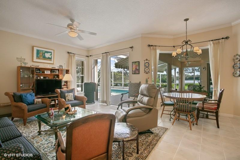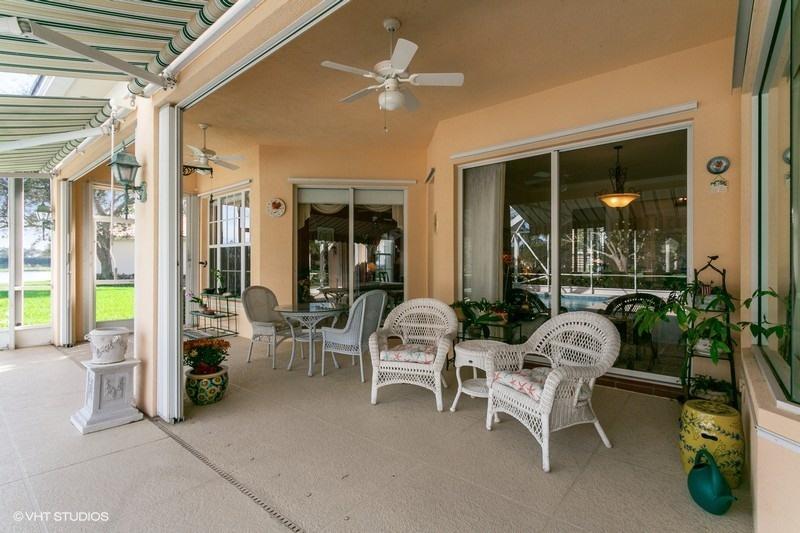 Welcome home to paradise! With a spectacular water view on an oversized cul de sac lot, this single story home is the popular Windsor Model located in the Riverwalk. The residence has many wonderful features including a split bedroom layout, two master suites, a den, a kitchen with newer appliances, walk in pantry and granite counters. You will enjoy the overall light and bright ambiance of this home. The screened in pool area includes an awning which extends over the lanai area & is accessible by sliders from the master suites. Dual sinks in master & walk in closets are what you expect and you won't be disappointed. Formal LR, FR & DR with a 2 car garage , accordion & plantation shutters complete this dream home. Enjoy the community pools, tennis , fitness, dining & the beauty salon.