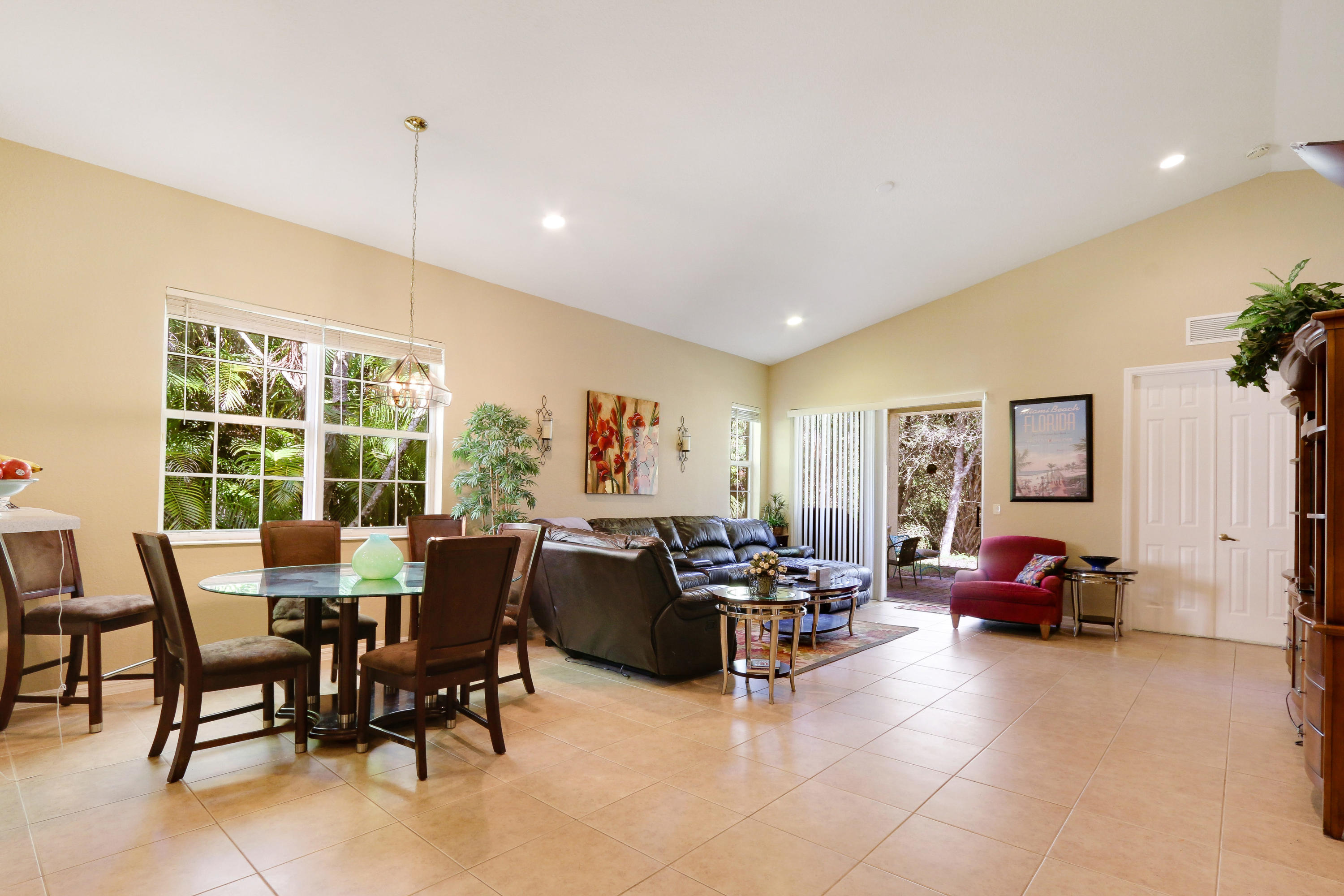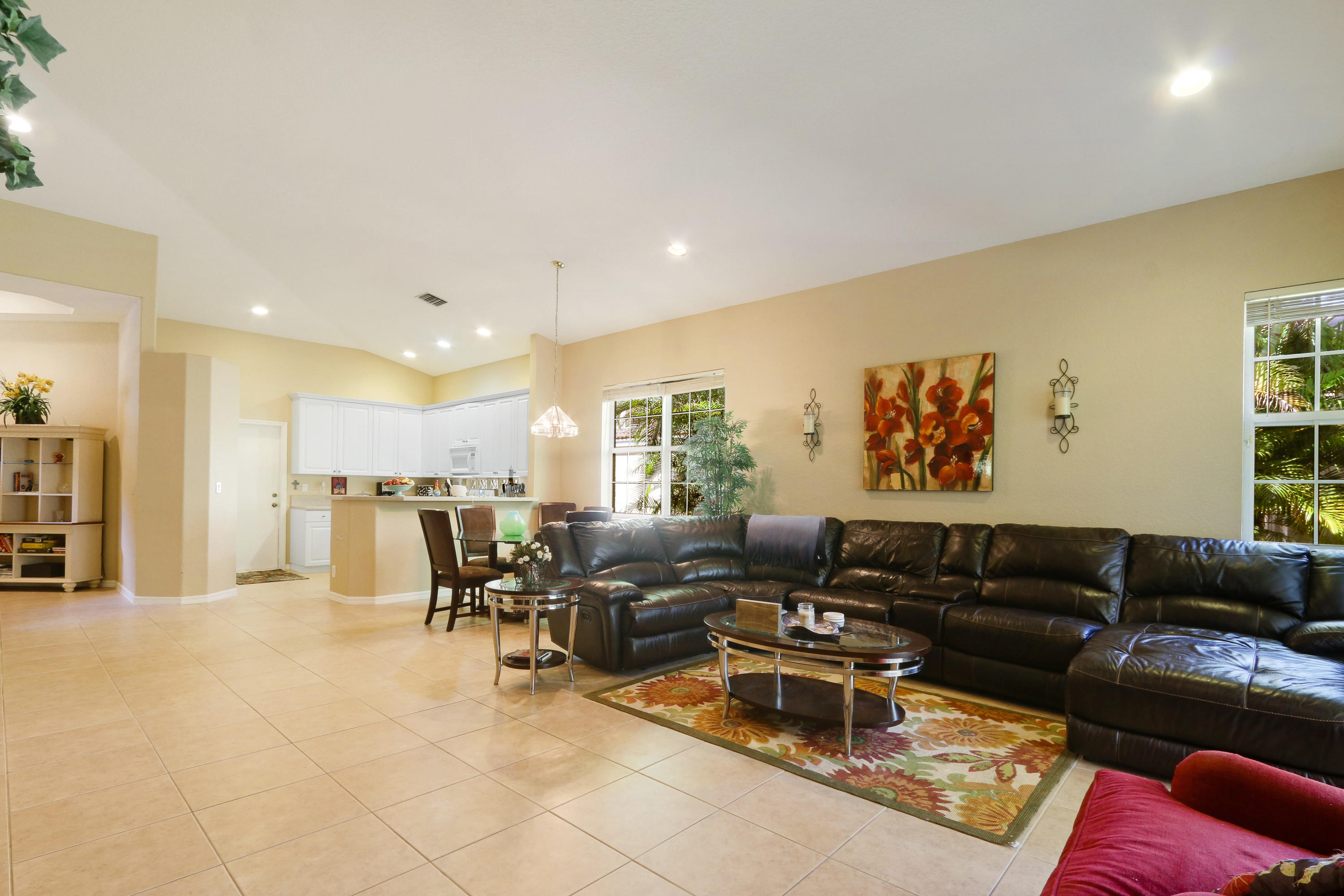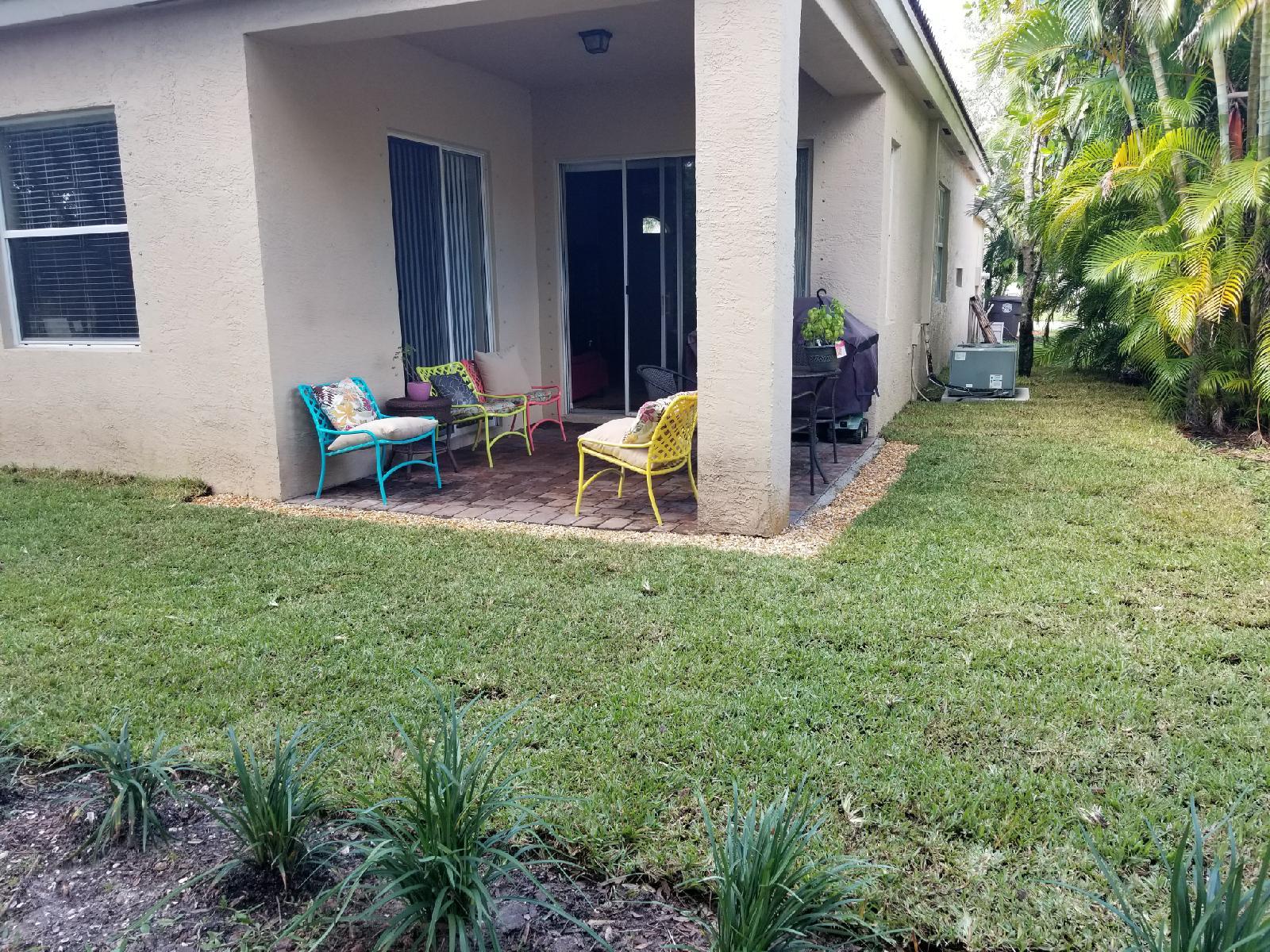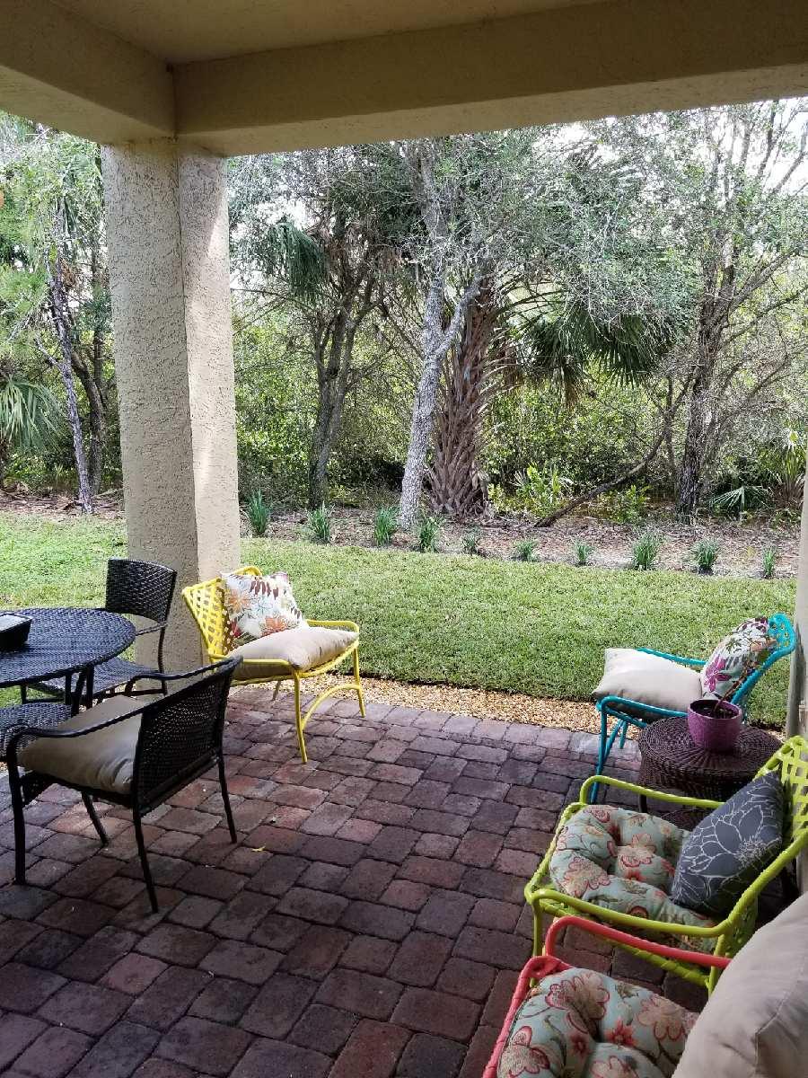 The minute you enter the pavered stone walkway to this well maintained villa you know you are home. From the open concept floor plan to the neutral tile floors in the living areas and high ceilings it speaks of quality. This home boasts split bedrooms with a large master bedroom with his & hers closets & a large master bath with soaking tub and separate shower. The kitchen boast Stainless Steel appliances and upgraded 42 inch upper cabinets and a eat in breakfast bar overlooking the living room. Enjoy cookouts on your covered rear patio with fresh grass and landscaping just installed as you enjoy the privacy of a natural preserve that is perfect for a weekend get together or any special family celebration. Washer and dryer as well as the hot water heater are less than a year old