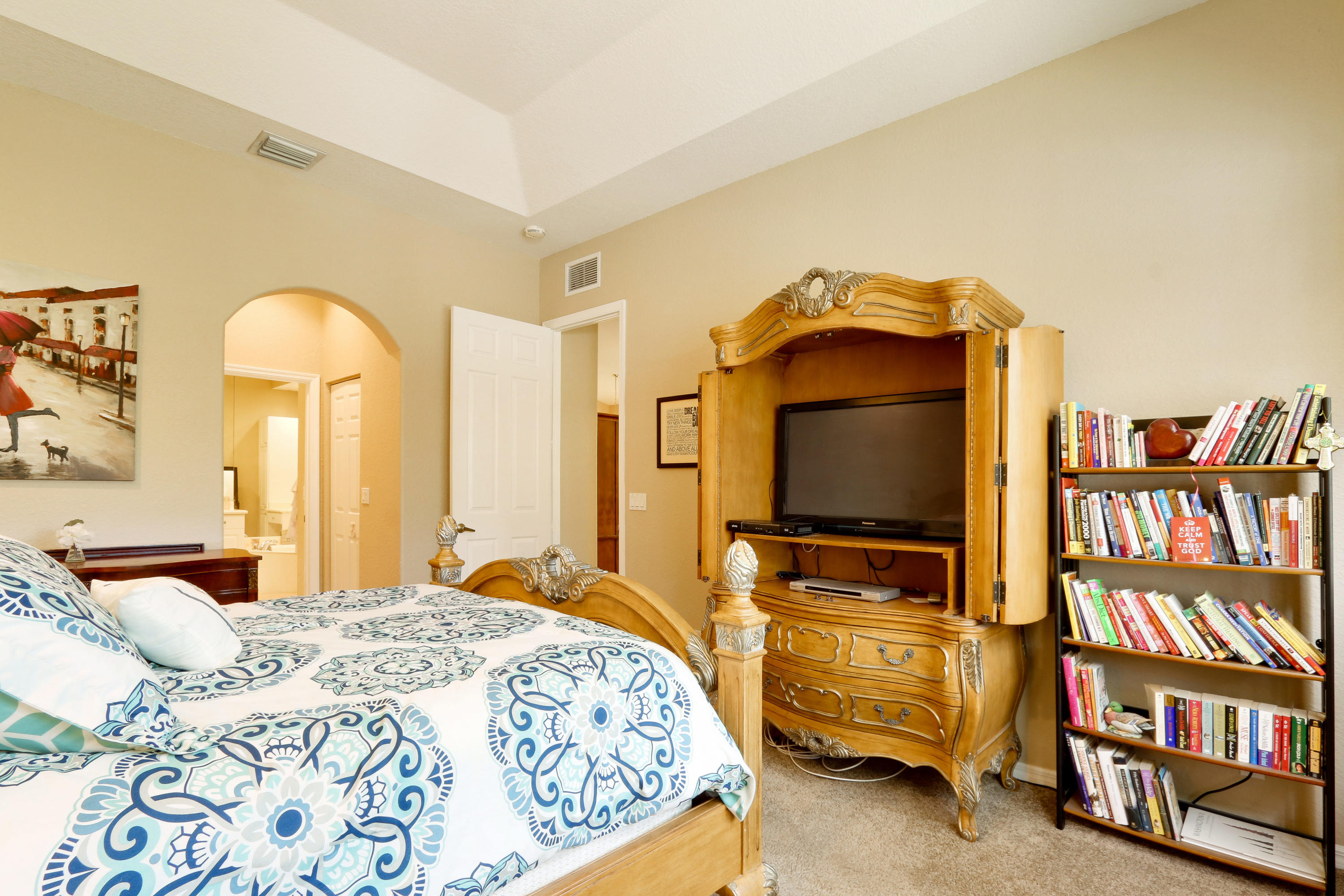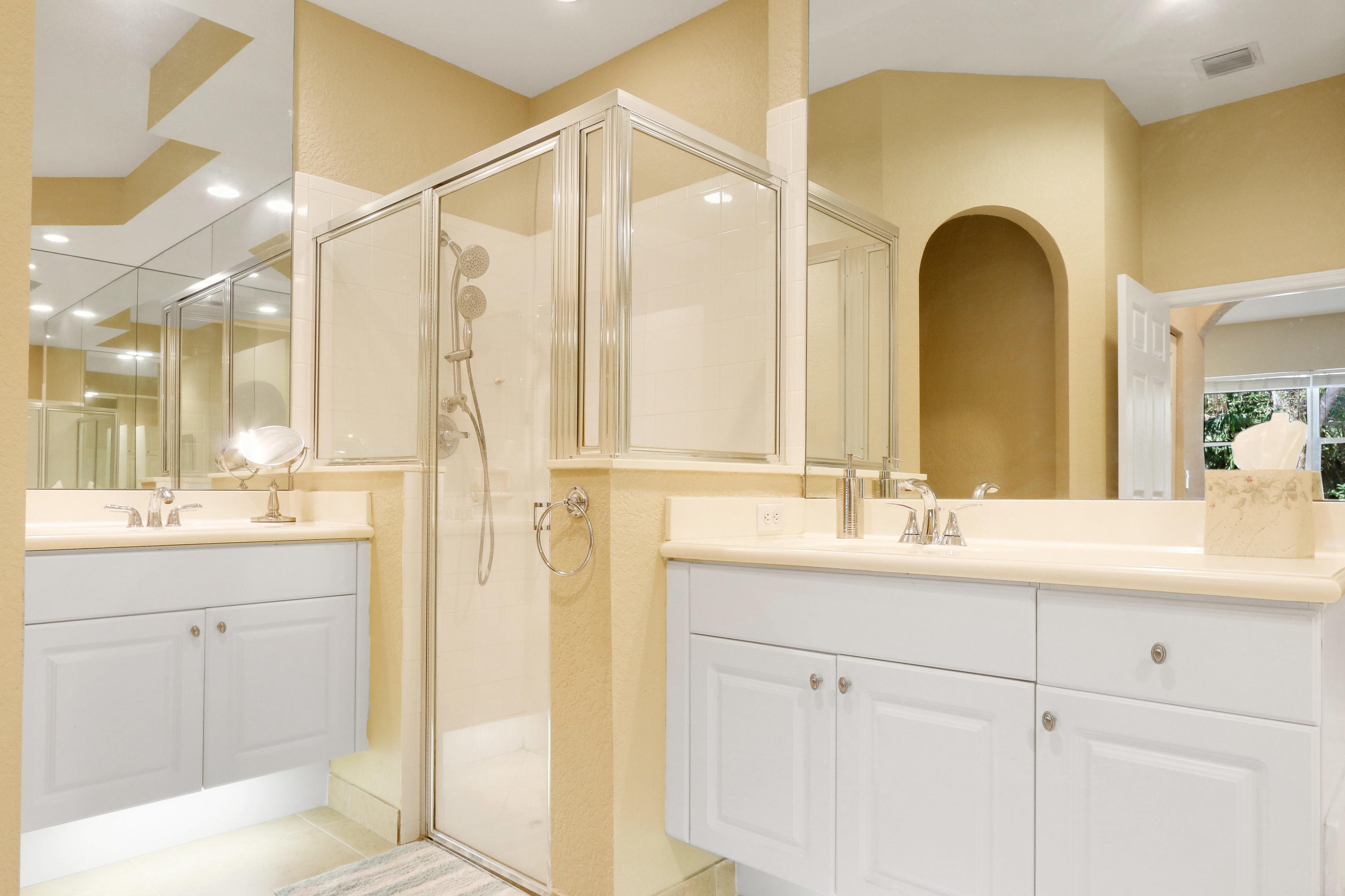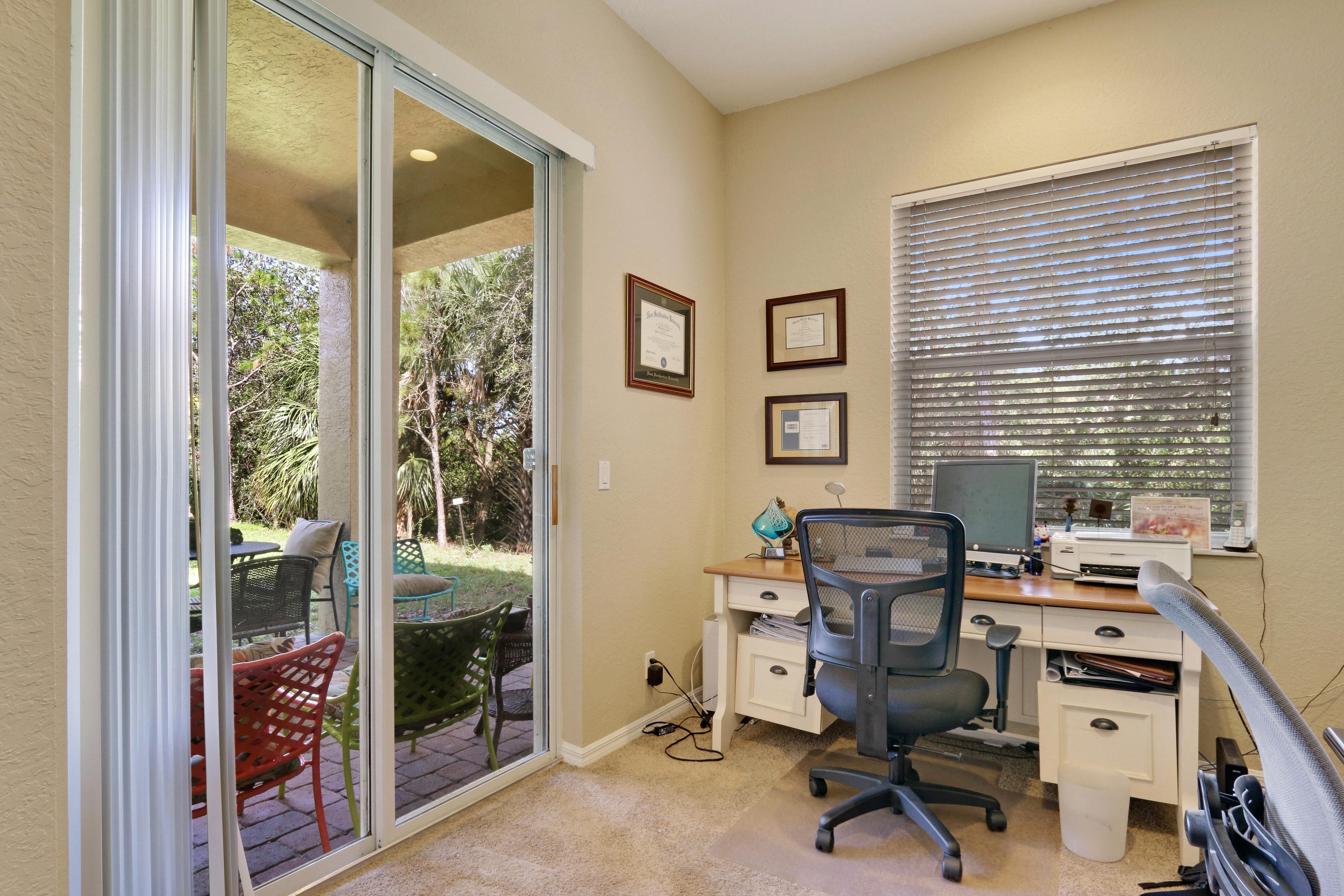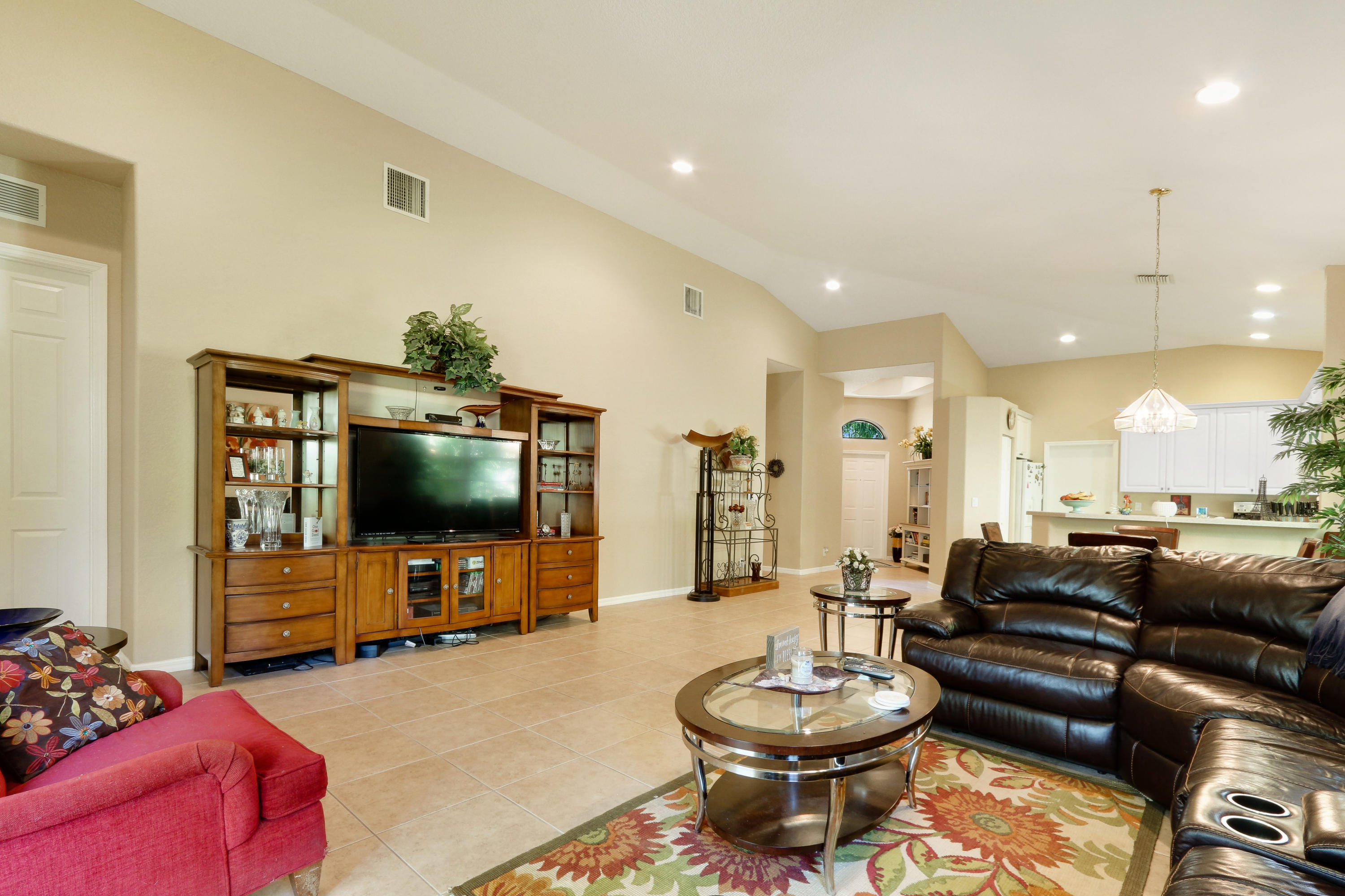 The minute you enter the pavered stone walkway to this well maintained villa you know you are home. From the open concept floor plan to the neutral tile floors in the living areas and high ceilings it speaks of quality. This home boasts split bedrooms with a large master bedroom with his & hers closets & a large master bath with soaking tub and separate shower. The kitchen boast Stainless Steel appliances and upgraded 42 inch upper cabinets and a eat in breakfast bar overlooking the living room. Enjoy cookouts on your covered rear patio with fresh grass and landscaping just installed as you enjoy the privacy of a natural preserve that is perfect for a weekend get together or any special family celebration. Washer and dryer as well as the hot water heater are less than a year old