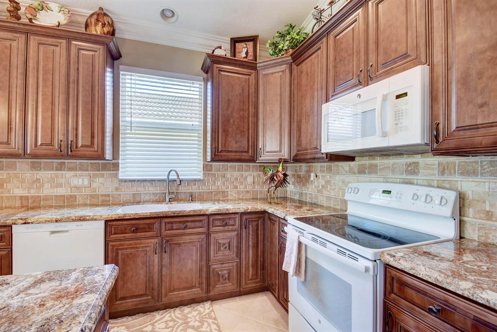 Prepared to be Wowed. Immaculate & meticulously kept, updated large 3/2 w/2-car garage. Crown molding throughout hm, newly painted interior & ceilings, Newer kitchen w/42'' wood cabinets & appliances, granite counters. Upgraded master BA with quartz counters, brushed nickel faucets, new mirrors, frameless shower door, new toilets. Lg 18x12 master BR w/9' ceilings, lg walk-in closet and add'l closet added. Newer A/C & H/W heater. Extended screened patio 20x24 w/custom stone floor and additional footings. Accordion hurricane shutters. New landscaping.Guard gated active 55+ community. Pools, gym, auditorium for shows, card room, billiards, media room, on site manager, Har-Tru tennis courts and so much more. Great location, convenient to grocery, shops, malls. Come Discover Baywind