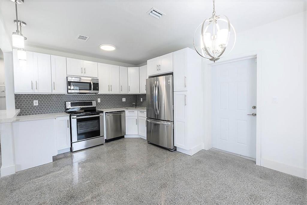 Complete remodel w/Architect plans/permits-all to code.3/1 w/sep.LR/DR & Den/Family Room. New flat-top roof, barrel tile roof well-maintained. New electrical. New Plumbing. New Tankless Water Heater. New Hurricane Impact Doors, Newer A/C, Wash/Dryer hook-up inside. Alarm system. French doors to large fenced yard w/patio-room for pool,outdoor shed.Carport w/room to park multiple cars + boat, fresh paint (in/out). New driveway and landscaping. All new kitchen with slow-close cabinetry,quartz counters, SS appliances, modern floater bartop/breakfast nook, beautifully restored & polished terrazzo flooring and wood-like tile throughout. Practically a new house! Nothing left to do but move in! Priced to sell! Appraisal supports value. E of I95 (not flood zone).Minutes to beach,shops, I95,FTL arpt