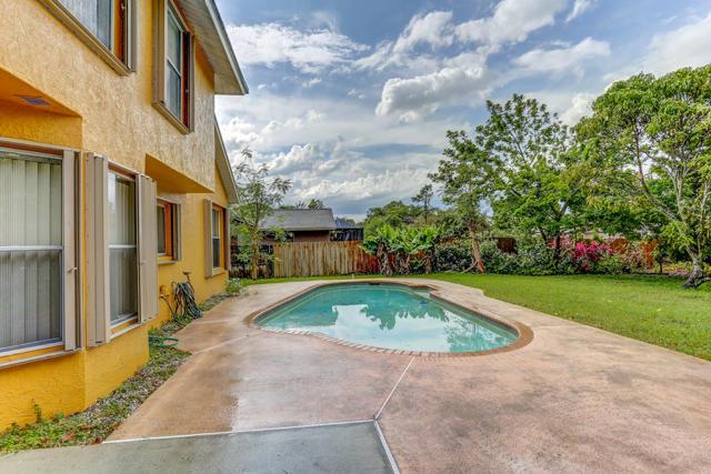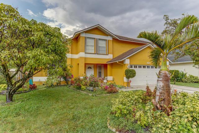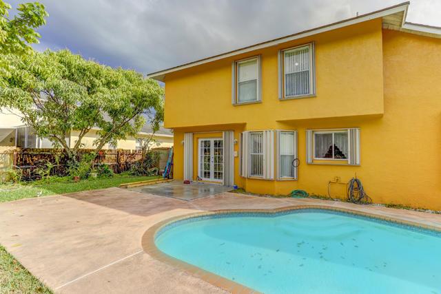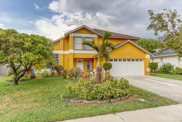 You'll love this immaculately kept two story 3 bedrooms 2.1 bathrooms family home located on an oversized lot in Royal Palm Beach. The entire home was recently painted along with stucco resurface. This charming home features a master bedroom on the second floor with its own private ensuite bathroom. The second and third bedrooms are also on the second floor along with a DEN/OFFICE and the second bathroom. The first floor has an open concept layout. Family room, dining room, kitchen and breakfast nook offer beautiful views of the POOL and backyard. The oversized backyard boast numerous mature FRUIT TREES now in full bloom. The entire home is protected with ACCORDION SHUTTERS. Over 2072 square footage makes this home ideal for a large family. This property will not last!!