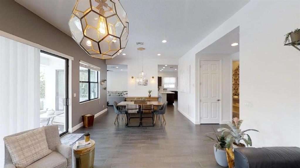 Spectacular one of a kind Contemporary home! The owners transformed this Luxury property into a designer's dream. The home features 5 bedrooms + office/playroom, 4.5 bathrooms and a 3 car tandem garage. Includes 3,995 sqft under air with high ceilings on both floors and spacious open floor plan, allowing for lots of natural light. The new modern stainless steel & glass custom railing and captivating chandelier centerpiece, set the tone for the entire house. The property features beautiful Italian tile wood floors on the 1st floor and brand new Armstrong hard wood floors throughout the upstairs. All windows are impact glass. Upgrades include kitchen quartz counter tops, oversize island, 42'' cabinets, mosaic backsplash, large