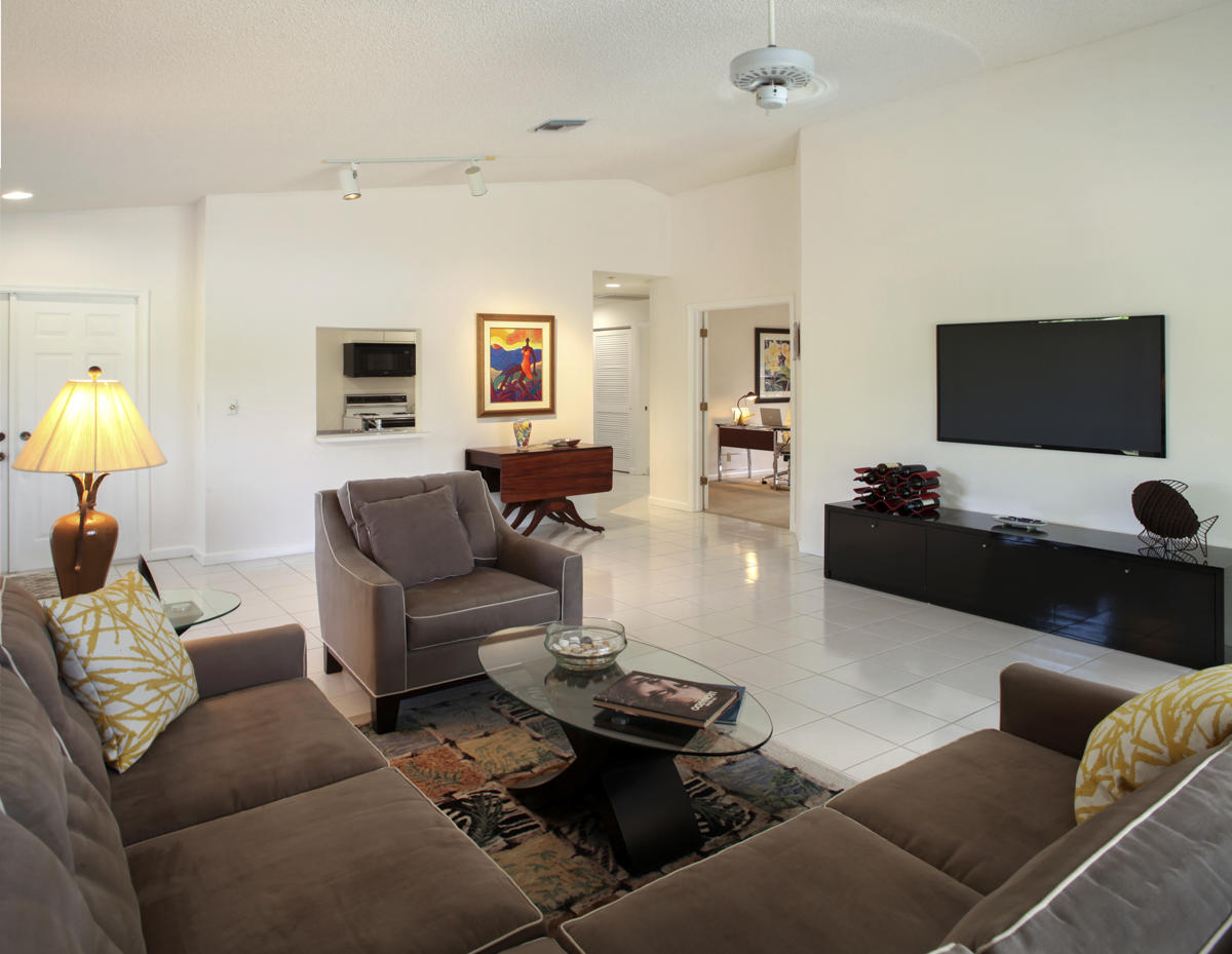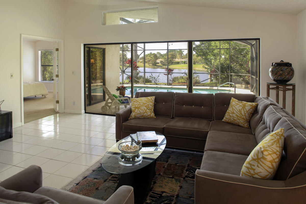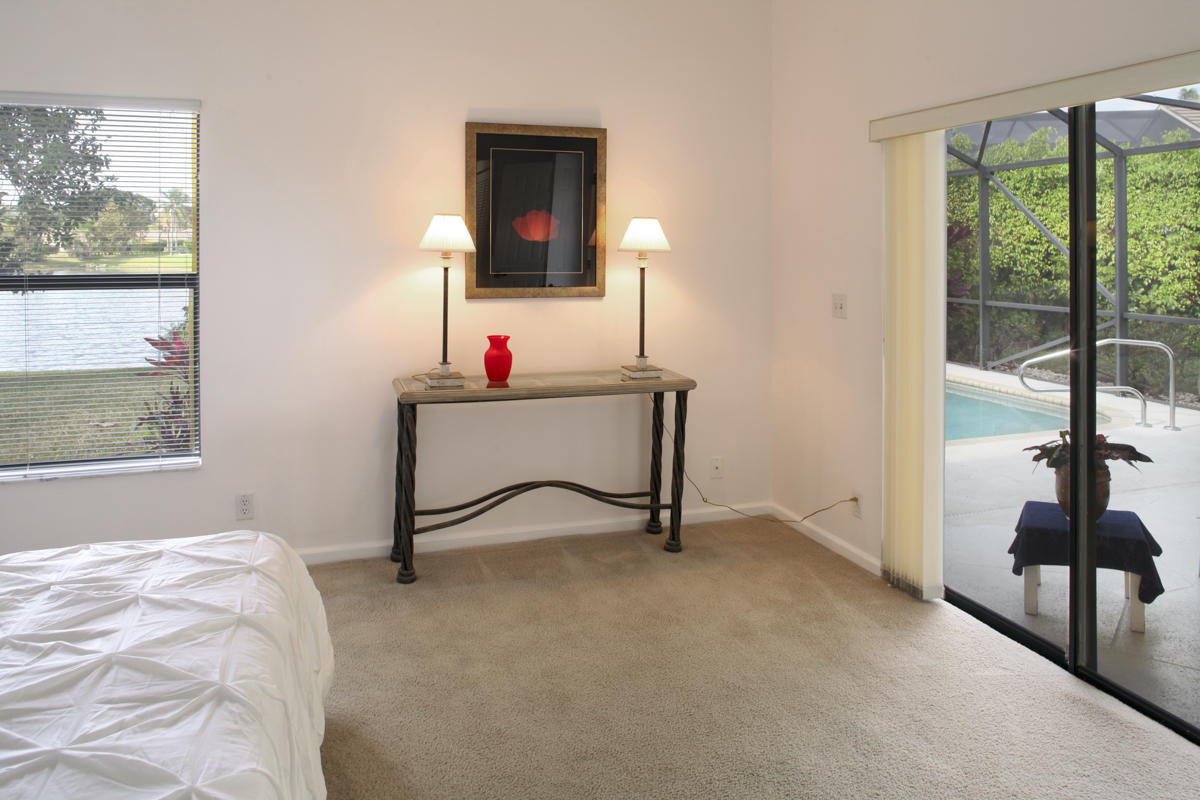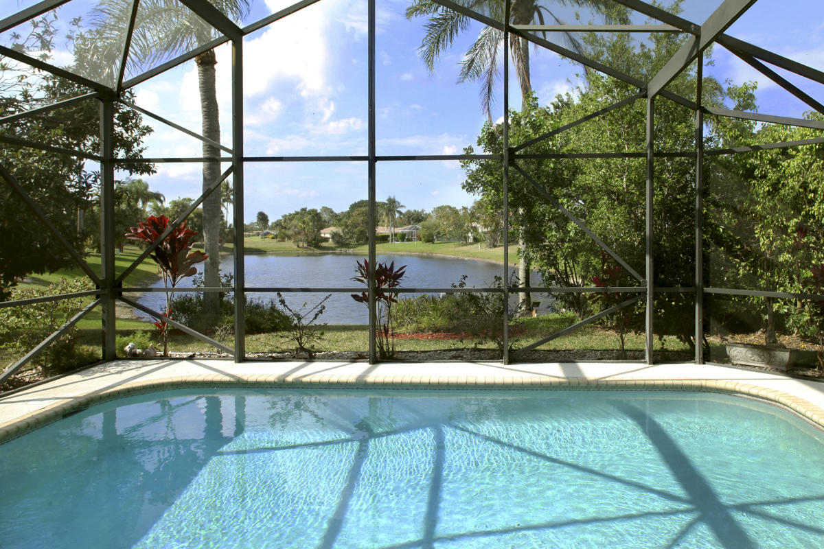 This cozy 2/2 + Den/Office home is situated on a large lot with a very private screened patio and pool. Enjoy tranquil long views of the lake and extraordinary sunsets. An original, very clean, one owner home has cathedral ceilings and a feeling of spaciousness throughout - plus a bonus of a two car garage! Move in ready or a great space to remodel and customize to your taste. Live the Country Club Lifestyle at Boca Greens with NO Membership required.You can join the club or just pay to play golf if and when you like. And, just minutes from your manned gate are numerous restaurants, grocery stores and boutique shopping.