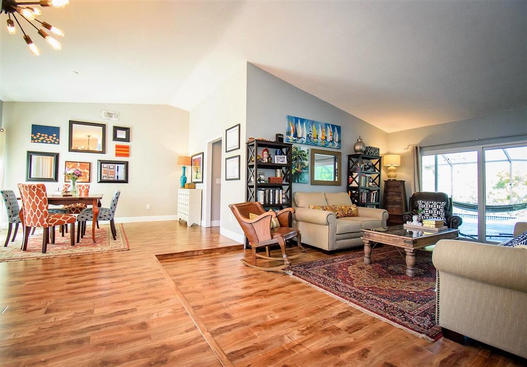 Renovated Pool Home can be your private paradise. Owners replaced roof in 2015. Installed custom, impact windows and doors, with low-E treatments (minimizing electric bill). Remodeled both bathrooms. Resurfaced and upgraded pool in 2016- it now has travertine paver surround, salt system, heater, and upgraded lighting. The enclosure was added in 2015. Other features are the high ceilings, spacious bedrooms, and private yard on canal.New floors, no popcorn inside, storage systems in garage, smart door bell and thermostat... this home has too many upgrades to list! Come see it for yourself.Over 100K in improvements. Low HOA and Maximum insurance discounts. Energy efficient and low water bills (lawn irrigated from canal) Move-in Ready!