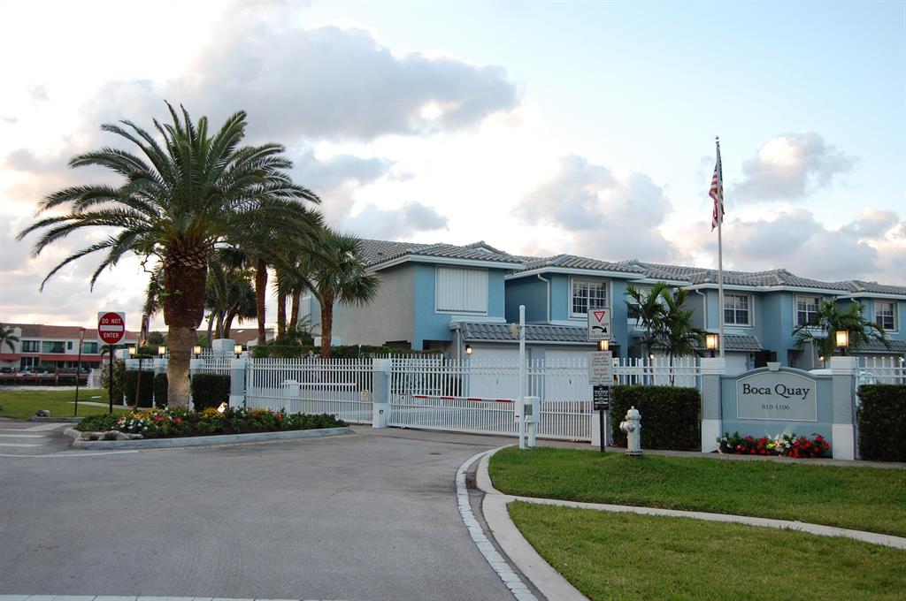 BEAUTIFUL 2 BEDROOM, 2.5 BATH TOWNHOME LOCATED IN EAST BOCA GATED INTRACOASTAL COMMUNITY OF BOCA QUAY. THIS 2 LEVEL UNIT FEATURES AN UPDATED KITCHEN WITH GRANITE COUNTER TOPS, STAINLESS STEEL APPLIANCES, FRESH PAINT & NEW LAMINATE FLOORS. TWO MASTER BEDROOMS ON THE SECOND LEVEL BOTH WITH VAULTED CEILINGS AND NEWLY RENOVATED BATHROOMS. FULL SIZE WASHER & DRYER IN UNIT. WATER INCLUDED IN HOA DUES. NEW ROOF-LESS THAN A YEAR, NEW PVC FENCES & EXTERIOR PAINT. PET & VEHICLE RESTRICTIONS. COMMUNITY POOL. NO LEASING 1ST YEAR. FABULOUS LOCATION! EAST OF US-1; CLOSE TO 1-95, BEACHES, SHOPPING & RESTAURANTS IN BOCA RATON & DELRAY BEACH.
