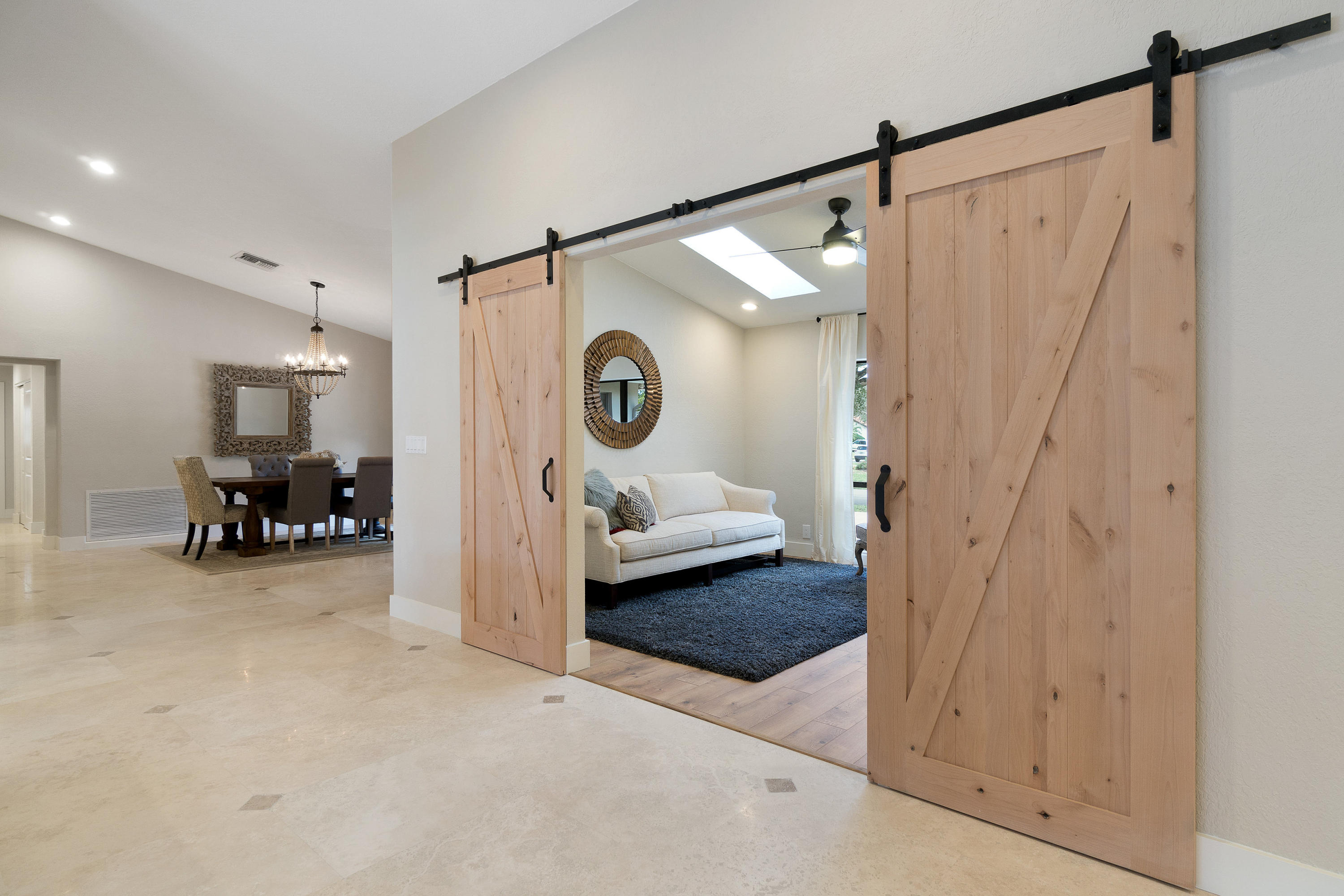 Beautifully redesigned and remodeled, 5 bedroom, plus office, 3 bath home with an open floor plan that is ideal for entertaining on a grand scale. The chef's kitchen will inspire your inner chef with 42'' cabinets, quartzite counter-tops, tiled backsplash, center island and new stainless steel appliances. The divine master retreat presents a custom walk in closet, a soaking tub, a walk-in shower and dual sinks with marble counters. This home is the pinnacle of luxury with Travertine flooring, vaulted ceilings, sky lights, barn doors, huge laundry/mud room and two new A/C units. This home has a huge 3 car garage and two separate driveways.Enjoy your own stunning tropical paradise on the covered patio that overlooks the pool and spa.