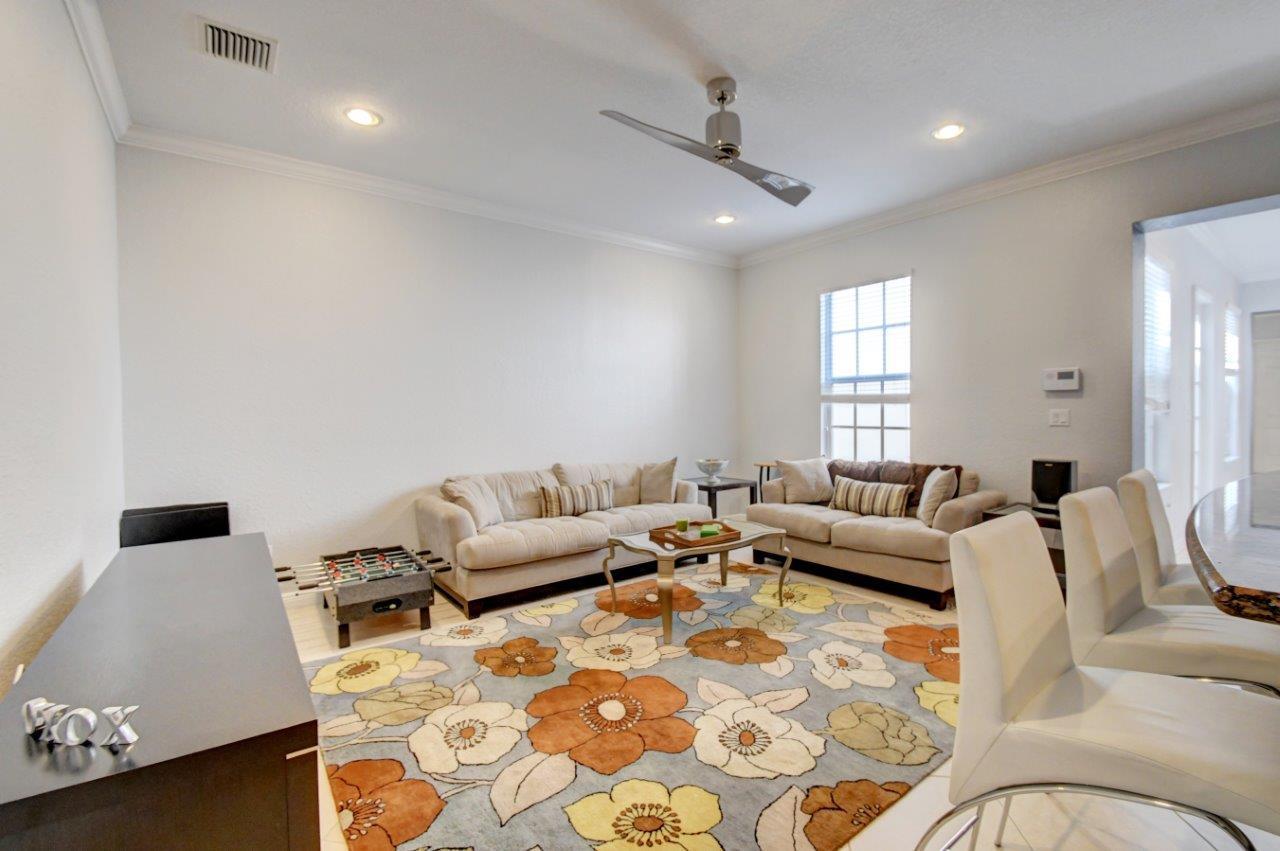 This fabulous contemporary townhome welcomes you with a private porch, 3 bedrooms, master has 2 walk-in closets, hurricane impact windows and doors throughout, kitchen has stainless steel appliances that open into a lovely family room. The living room has a contemporary decorative fireplace and is adjacent to the formal dining room. There is a charming courtyard for outdoor dining and barbecues. There is also an over sized 2 car garage. Convenient to Delray Beach, I95 and beaches.
