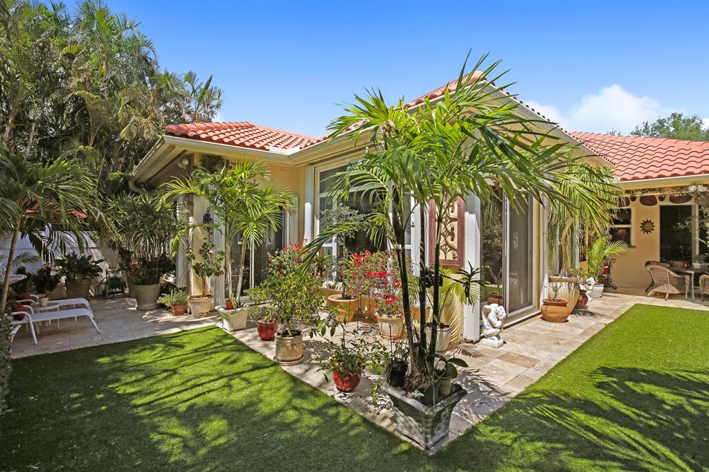 CLOSE-IN gated pocket-community 13 min. & 5.3 miles from Town of Palm Beach! Stylish home. Prestigious ''Rolls-Royce'' area where ex- and would-be Palm Beachers live! Piece of paradise minutes to airport, turnpike, beaches, golf, dining, clubs, shops. Well-kept enclave. Desirable sought-after locale. Class and style. Beaut home w/dark wood, marble/tile floors, tall ceilings in LR/family rooms & master bed/bath. Hurricane impact huge windows/doors, new barrel-tile roof & secret-garden private fenced backyard. Move-in condition gem, easily closed-up in 30 min., for travel. ADT security system, motion detection outdoor lights, 3 bubbling fountains, coquina stone walkways, outdoor covered dining area. Tropical landscape, park-like ambiance side yard. Secret area v. FAR North & West for price.