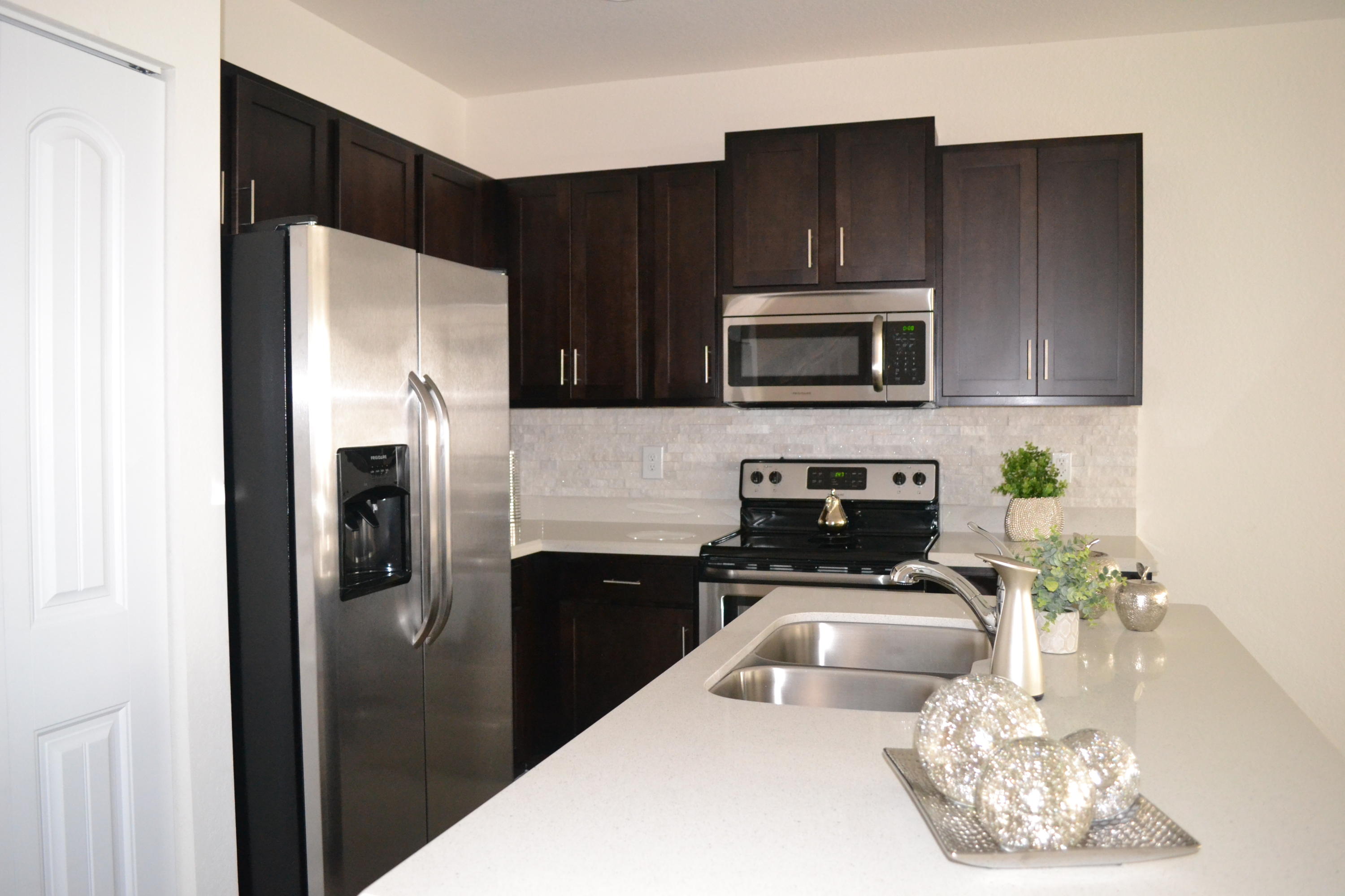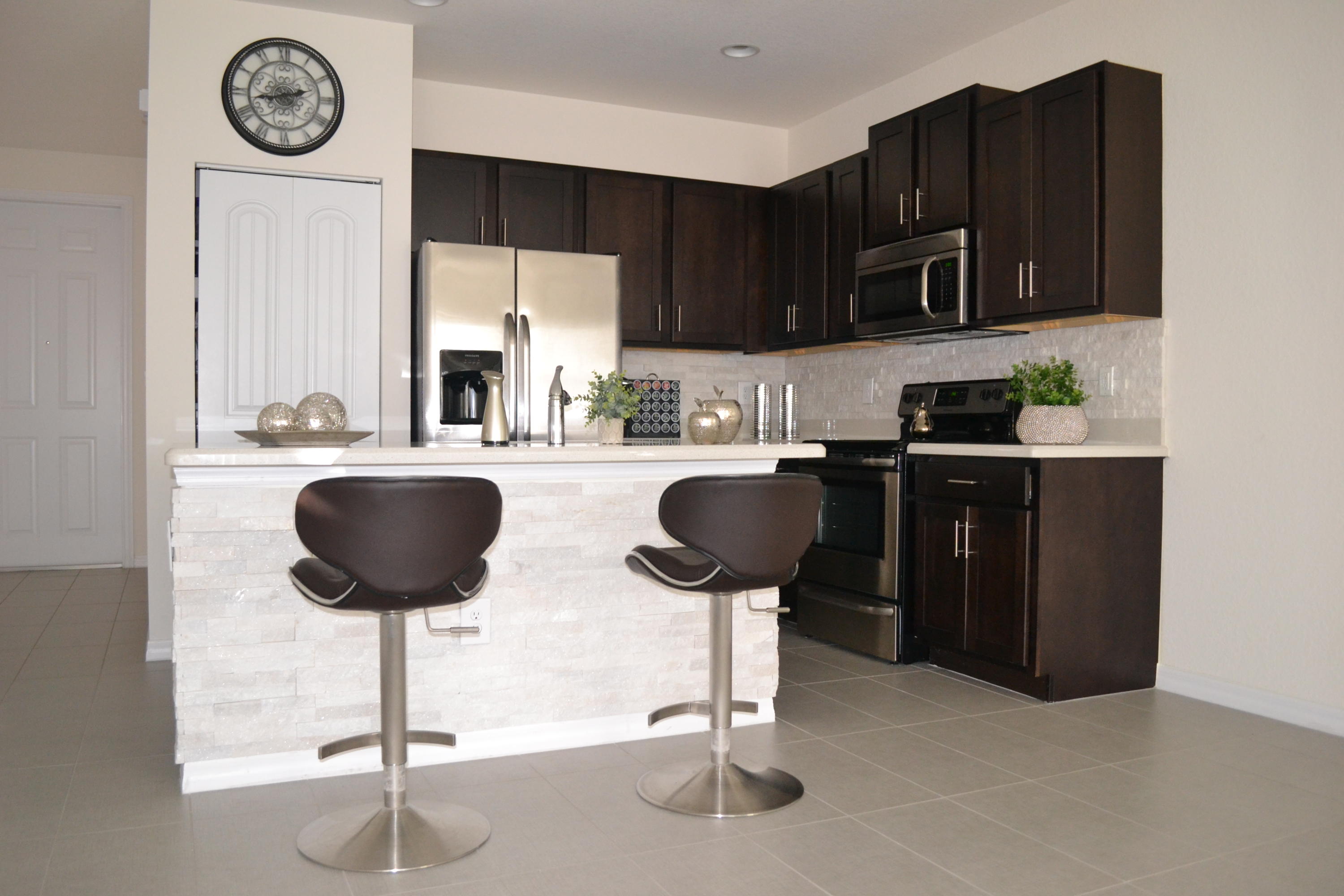 GORGEOUS BRAND NEW TOWNHOUSE! 3 Bedrooms, 2.5 Bathrooms, Spacious Garage, Paver Driveway & Volume Ceilings throughout! GORGEOUS GOURMET KITCHEN brags Granite & White Stone Center Island with Bar Stools, Granite Counters, 42" Wood Custom Cabinets, Stainless Steel Appliances, White Stone Backsplash & Recessed Lighting. Enjoy the Bright Natural Sunlight, Open Floor Plan, Spectacular Grey Porcelain Wood Plank Floors, Front Loader Washer & Dryer with Laundry Room, Impact Hurricane Windows & Doors, Master Bedroom with huge walk-in closet, double sink vanity & stunning designer bathroom ceramic tile.