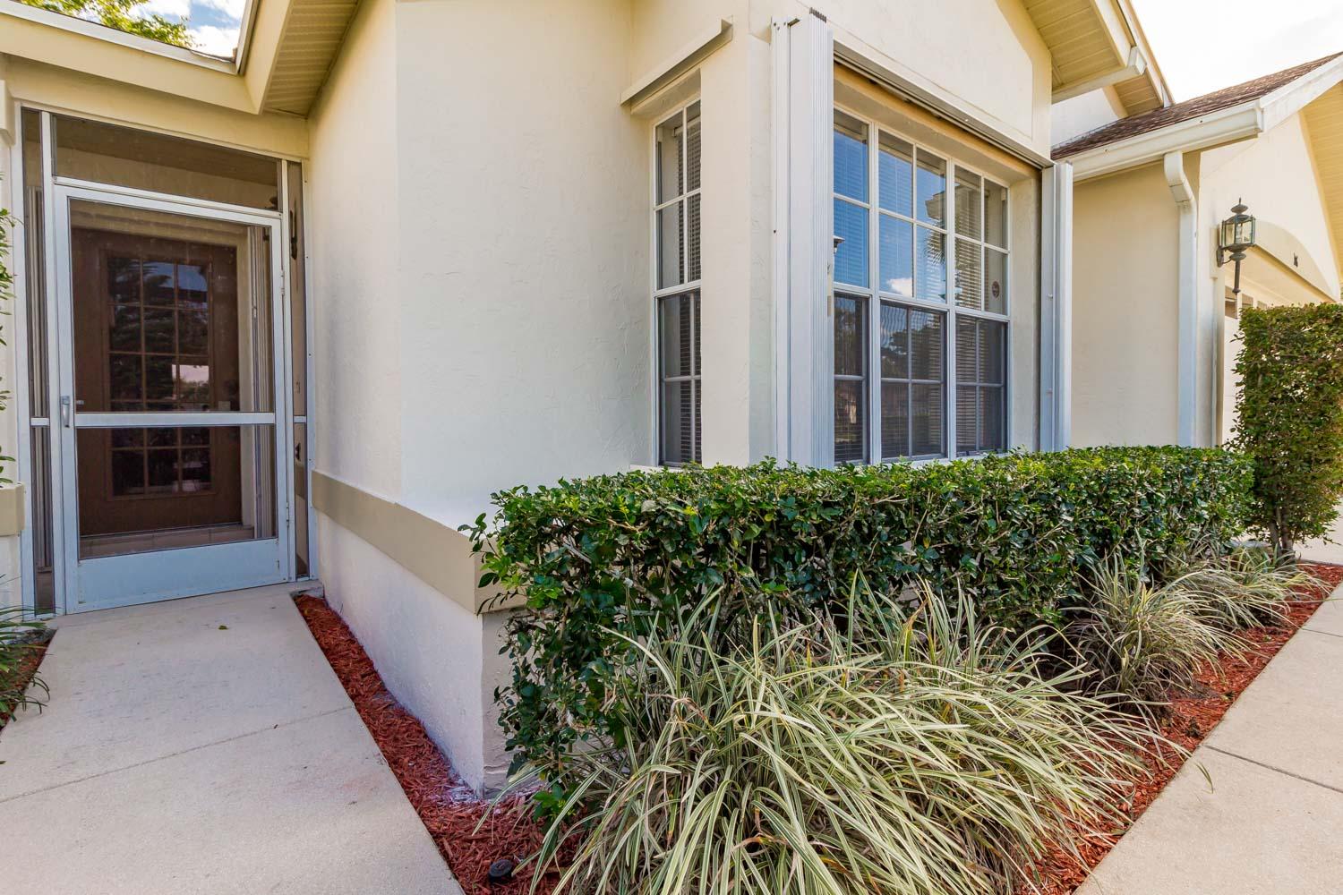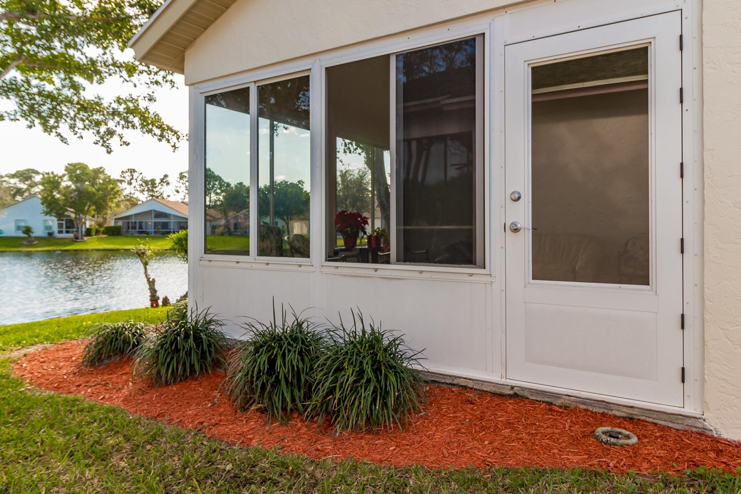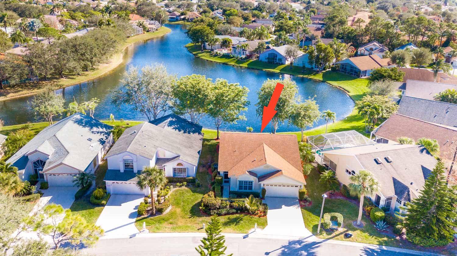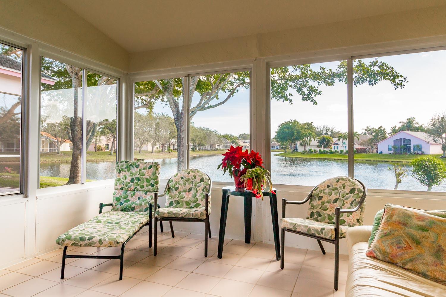 Breathtaking water views visible from foyer, kitchen, living, master, and private enclosed Florida room w/impact windows. This meticulously maintained property is a rare find at this price. Exterior just painted, roof 2008 with 2nd water barrier installed, A/C 2010, water heater 2013. Washer/dryer 2016, dishwasher 2017. Vaulted ceilings, spacious master/master bath with separate tub/shower. CAC maintenance contract transferable and good through August. Low HOA includes all lawn care and March 1 will upgrade to high speed fiber optic cable/internet.River Bridge is a fabulous gated community with resort style pools,fully equipped fitness center, social activities with full time activities director, close to Okeeheelee Park, corner shopping mall has over 10 restaurants, close to PBI.Must see!