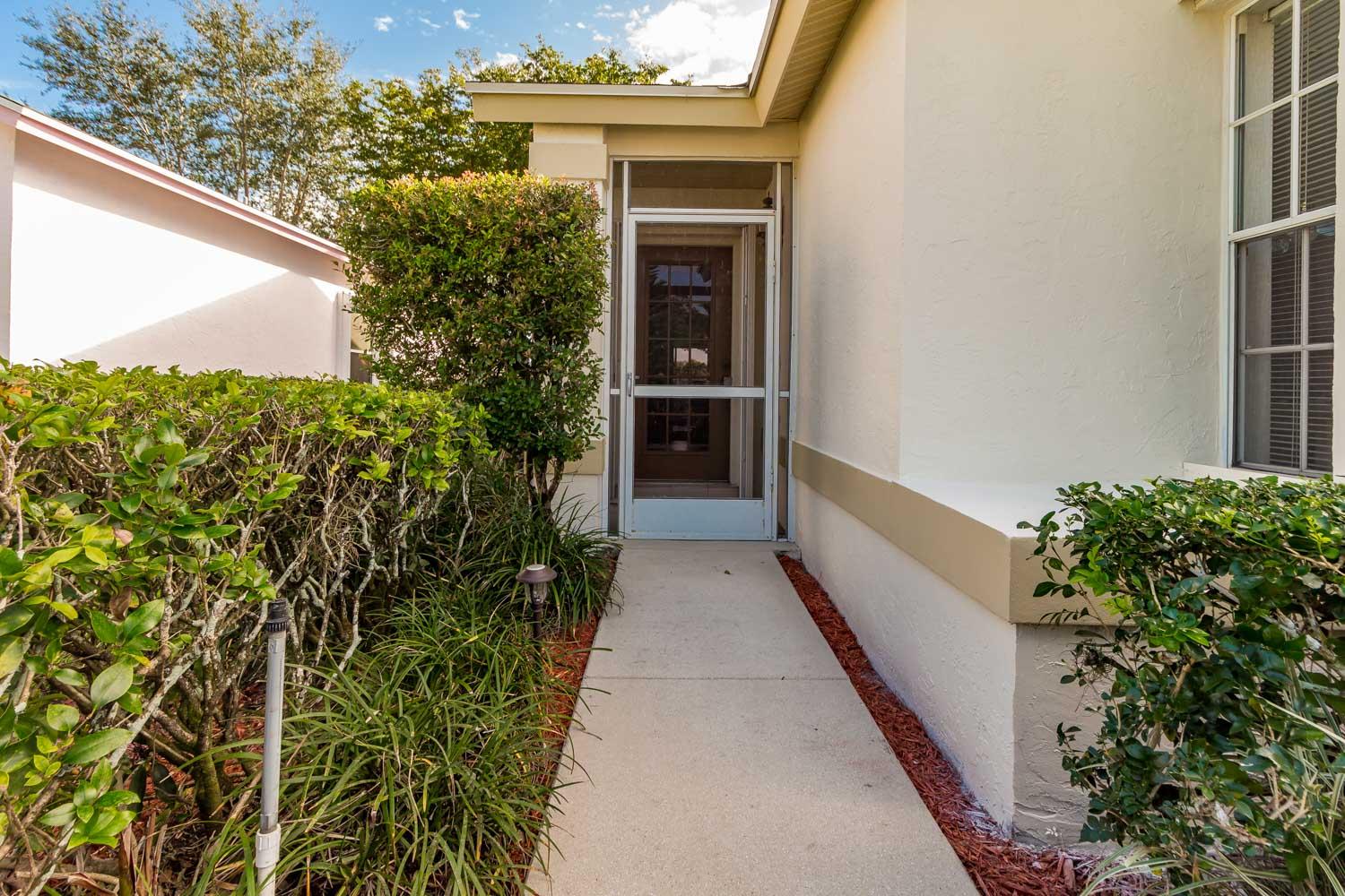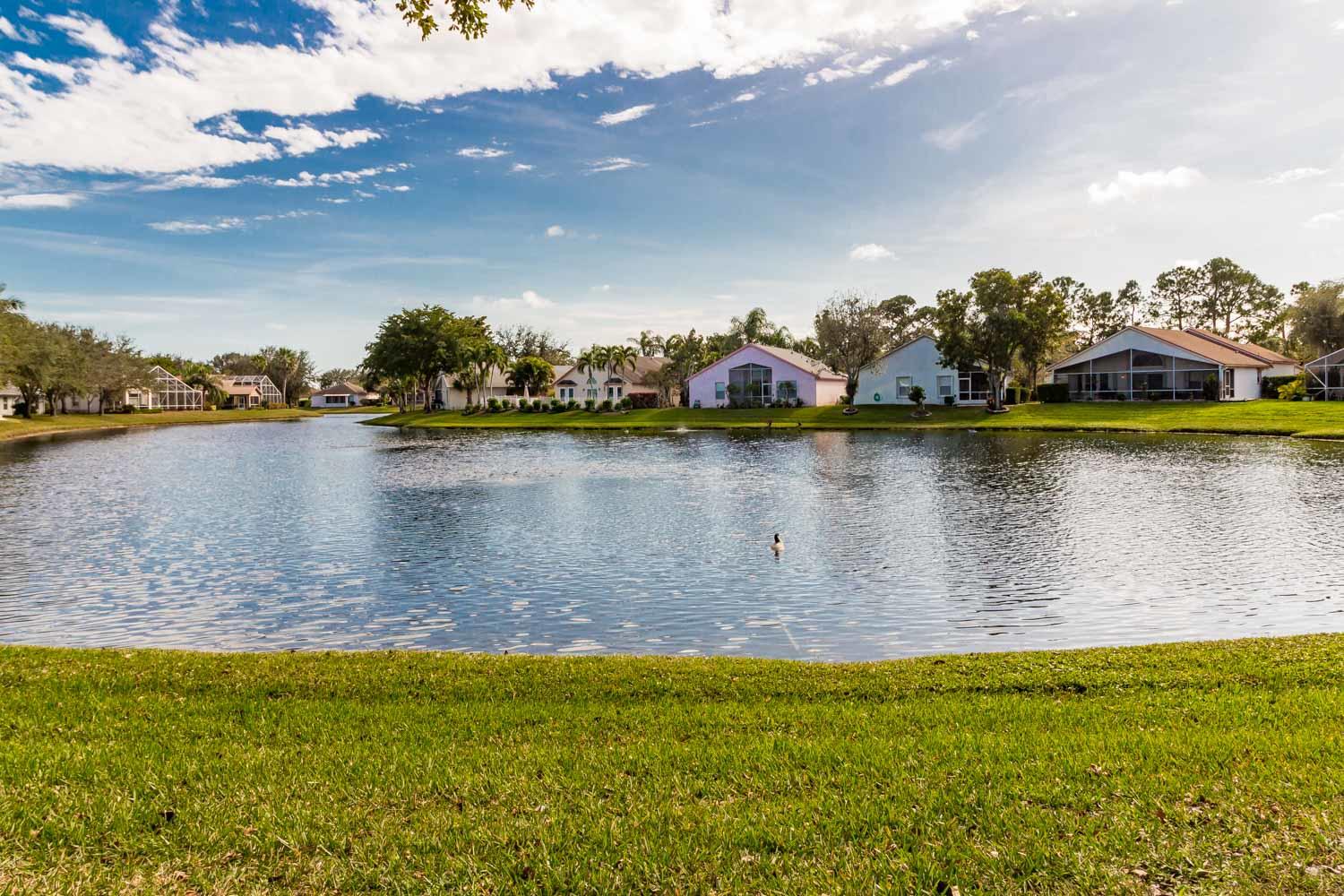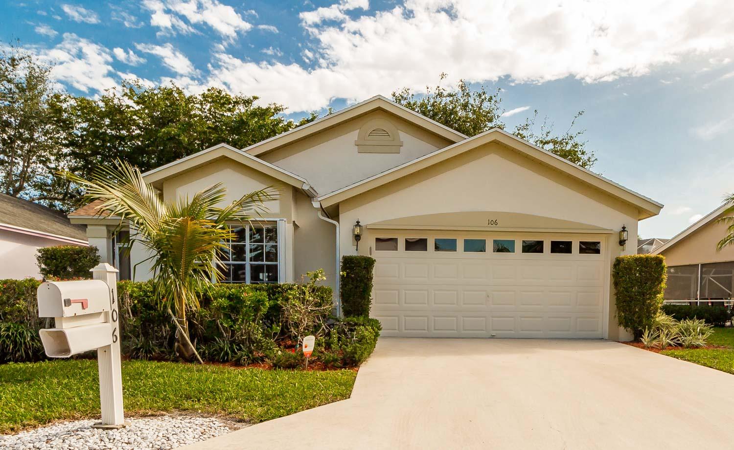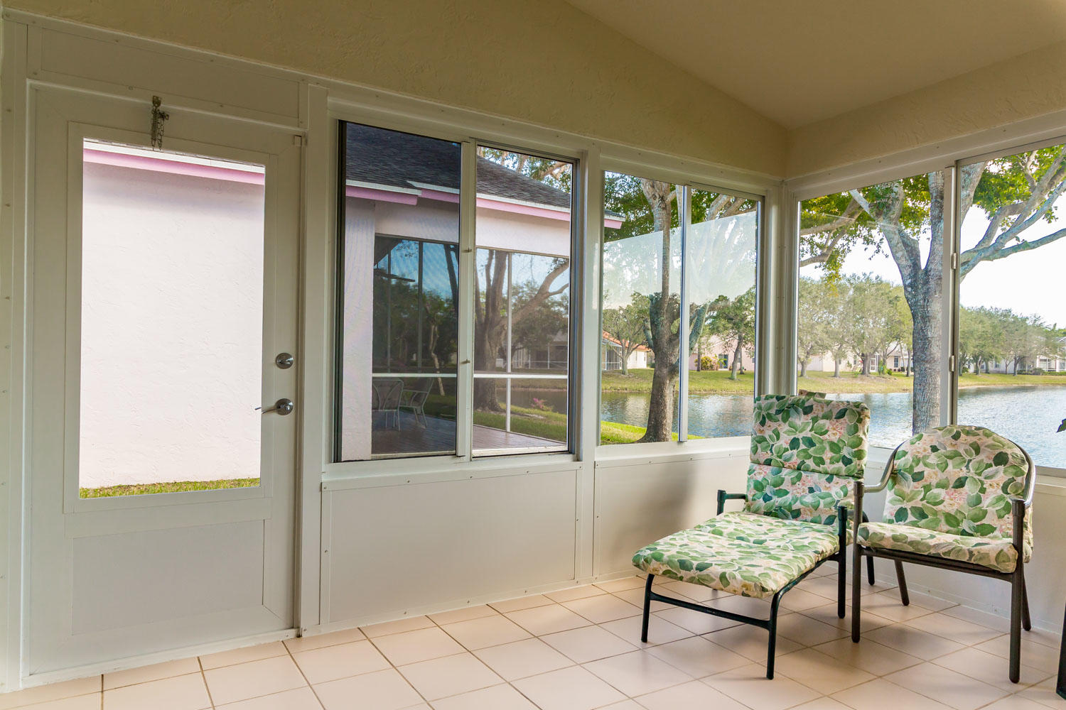 Breathtaking water views visible from foyer, kitchen, living, master, and private enclosed Florida room w/impact windows. This meticulously maintained property is a rare find at this price. Exterior just painted, roof 2008 with 2nd water barrier installed, A/C 2010, water heater 2013. Washer/dryer 2016, dishwasher 2017. Vaulted ceilings, spacious master/master bath with separate tub/shower. CAC maintenance contract transferable and good through August. Low HOA includes all lawn care and March 1 will upgrade to high speed fiber optic cable/internet.River Bridge is a fabulous gated community with resort style pools,fully equipped fitness center, social activities with full time activities director, close to Okeeheelee Park, corner shopping mall has over 10 restaurants, close to PBI.Must see!