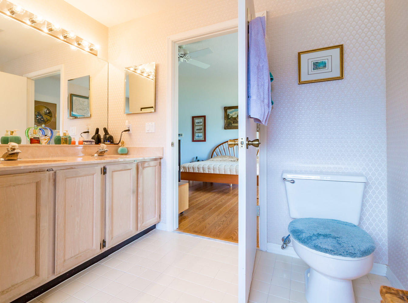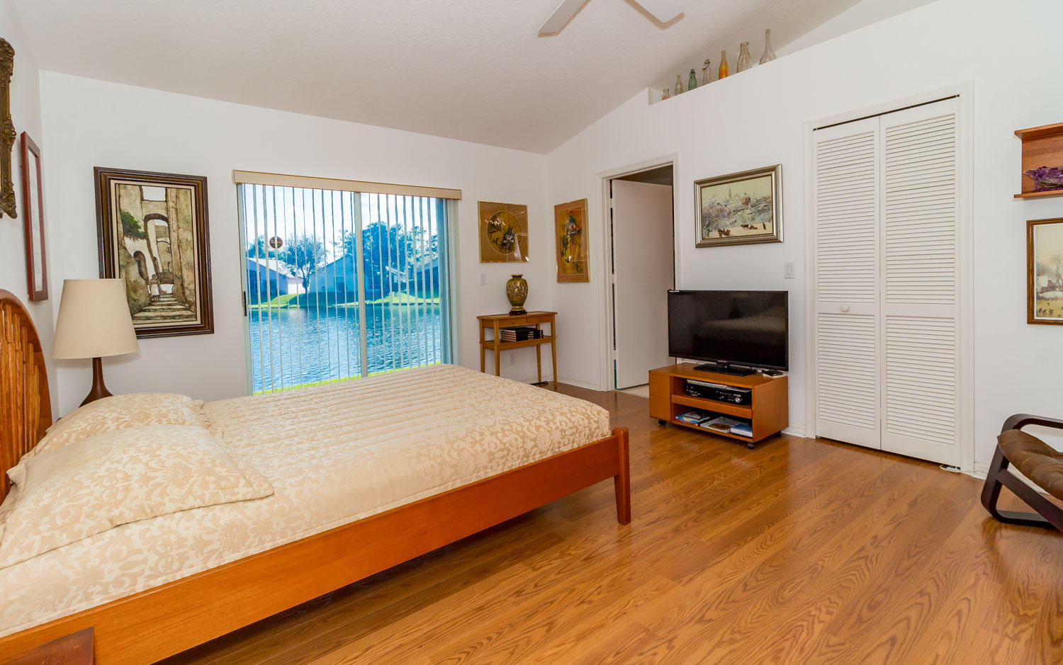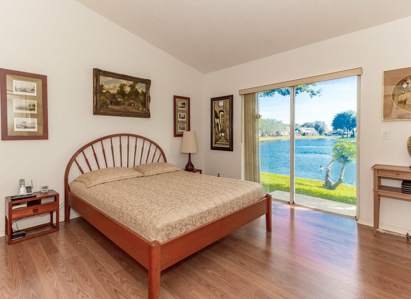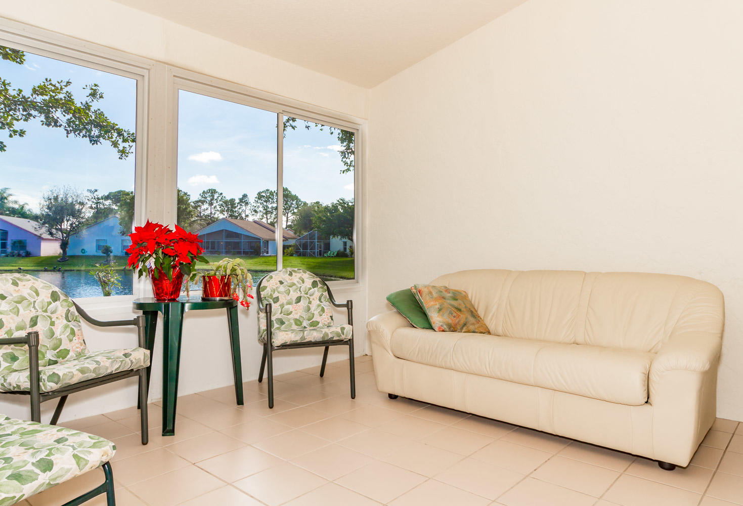 Breathtaking water views visible from foyer, kitchen, living, master, and private enclosed Florida room w/impact windows. This meticulously maintained property is a rare find at this price. Exterior just painted, roof 2008 with 2nd water barrier installed, A/C 2010, water heater 2013. Washer/dryer 2016, dishwasher 2017. Vaulted ceilings, spacious master/master bath with separate tub/shower. CAC maintenance contract transferable and good through August. Low HOA includes all lawn care and March 1 will upgrade to high speed fiber optic cable/internet.River Bridge is a fabulous gated community with resort style pools,fully equipped fitness center, social activities with full time activities director, close to Okeeheelee Park, corner shopping mall has over 10 restaurants, close to PBI.Must see!