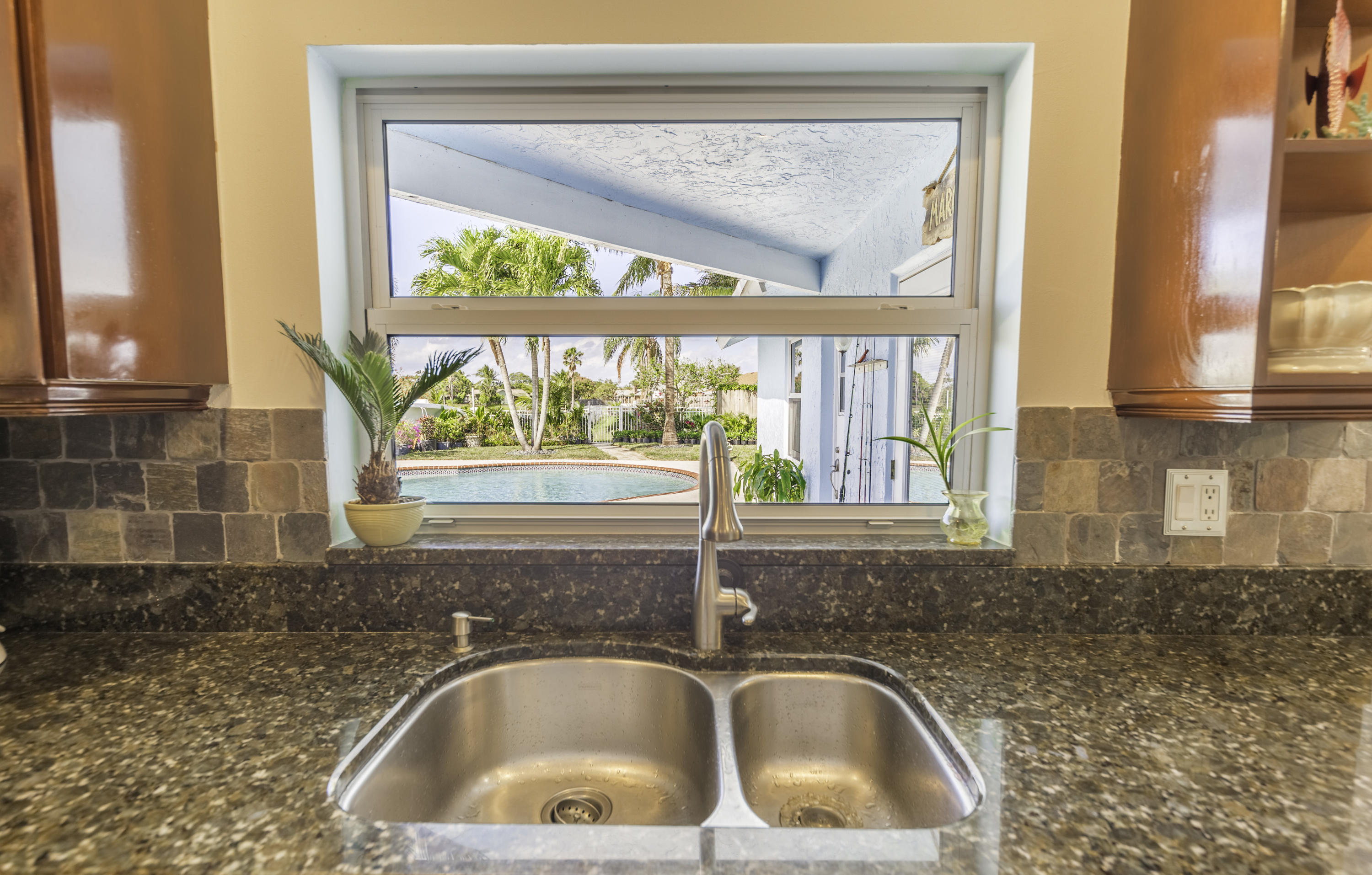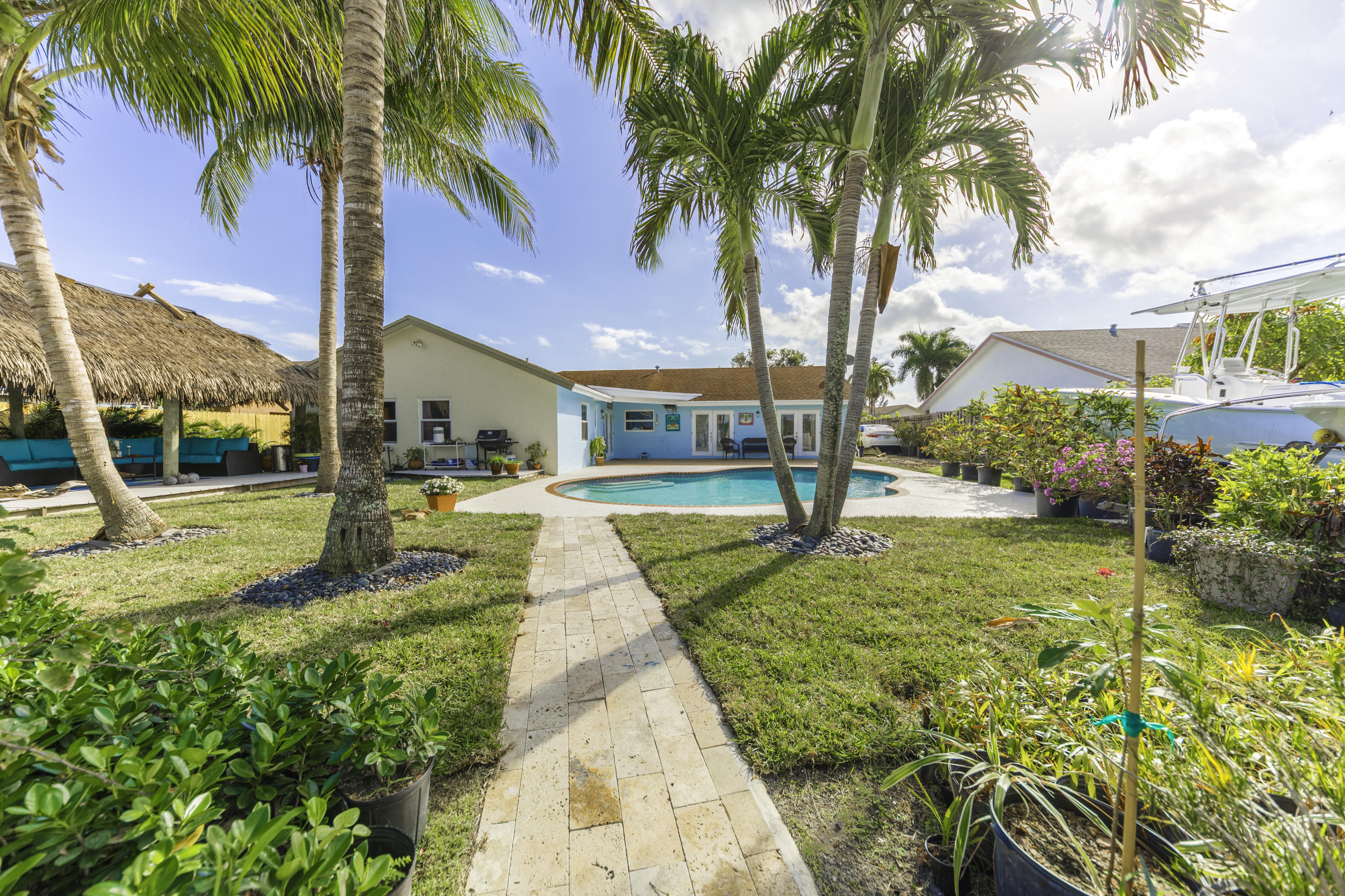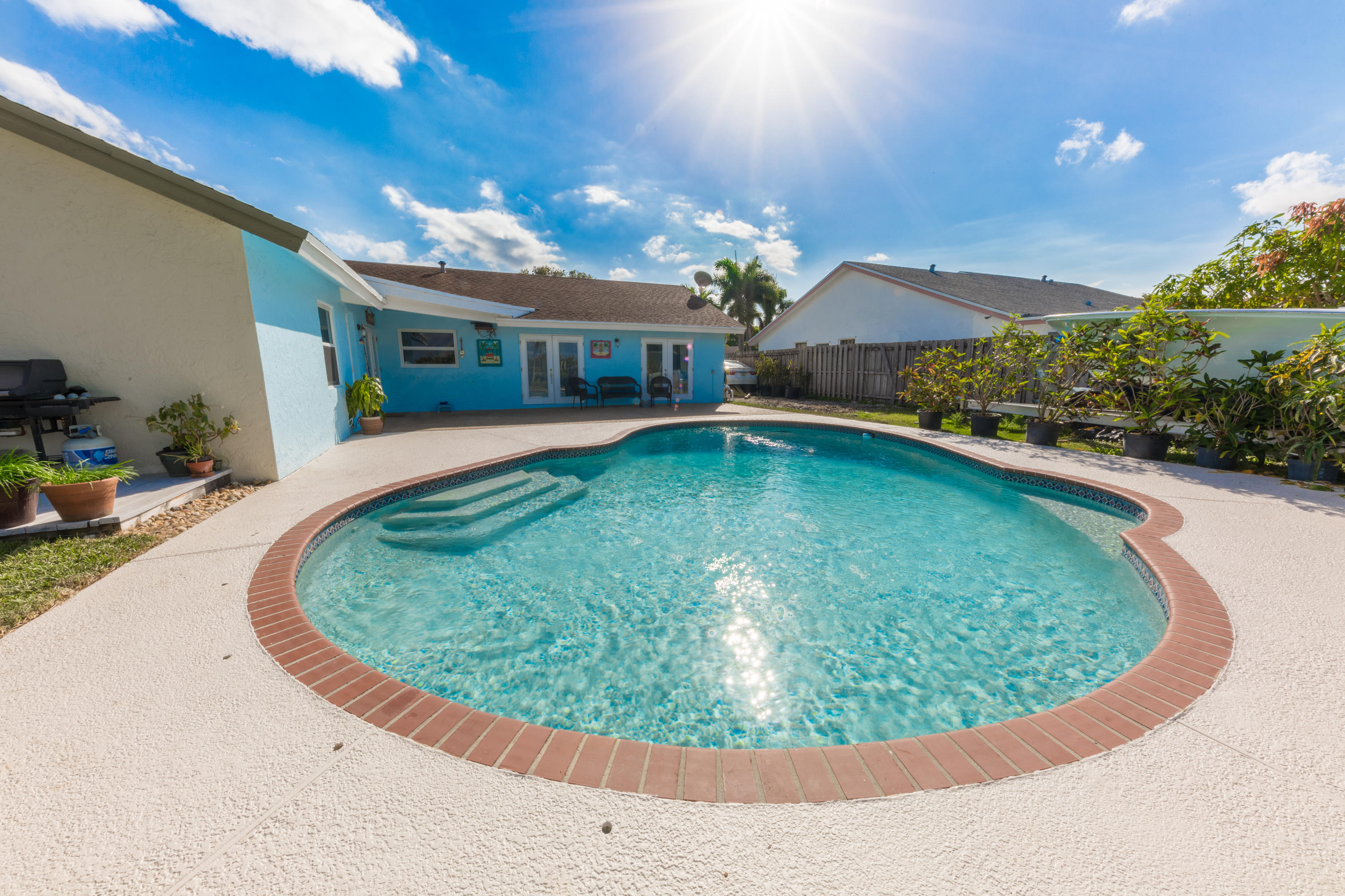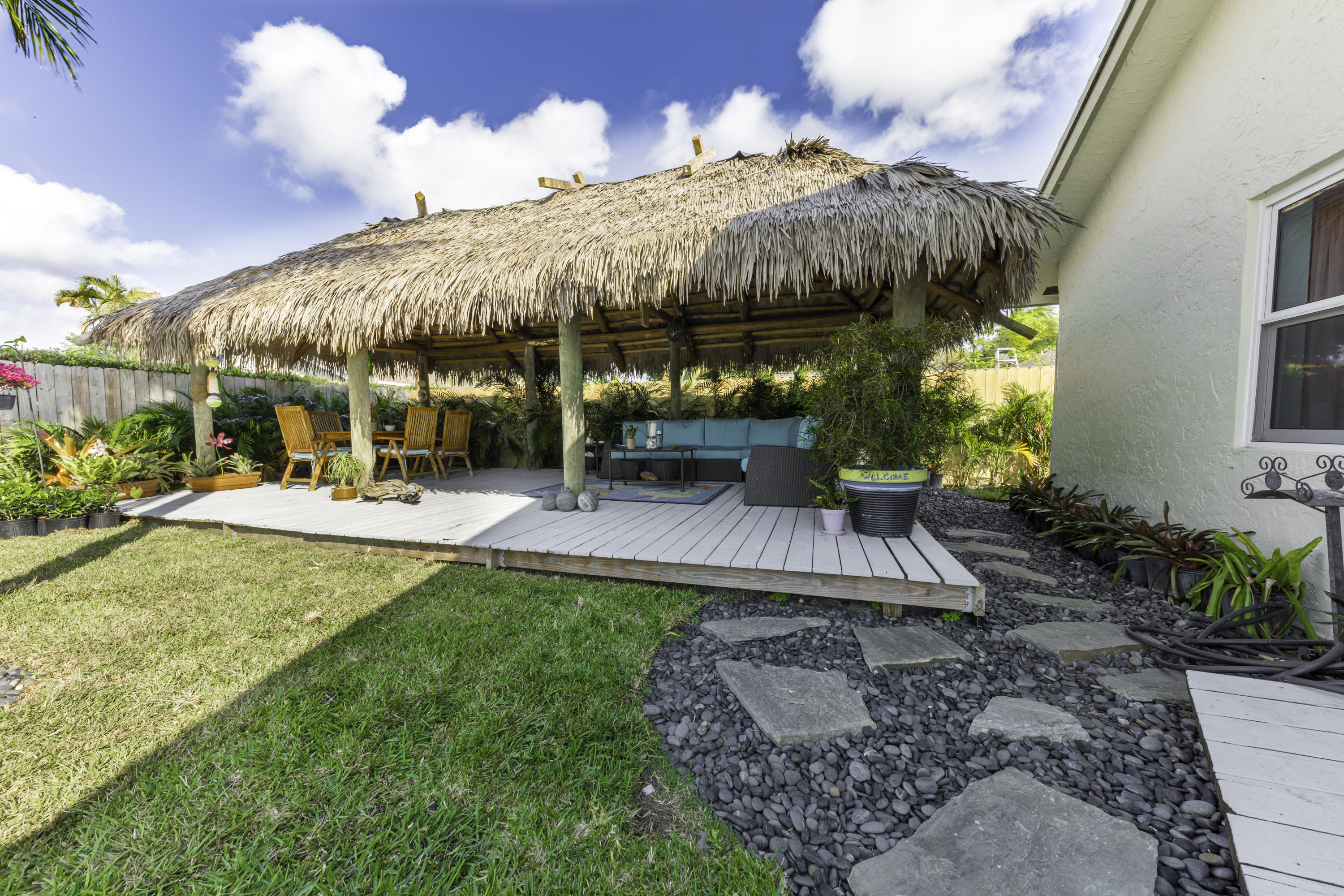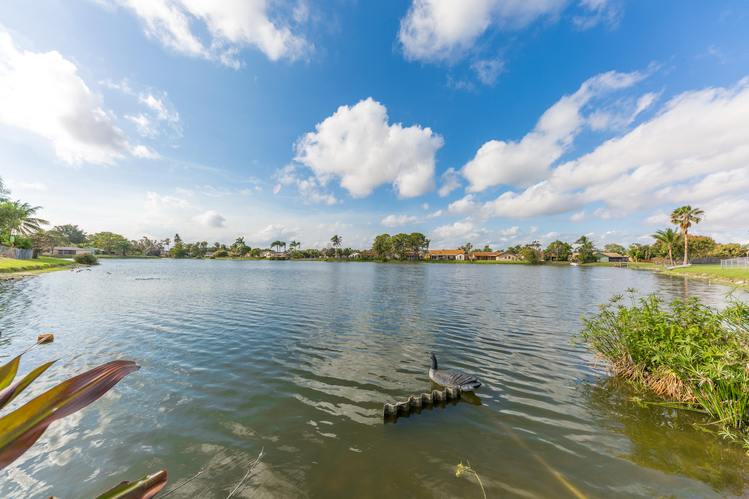 Welcome to your dream home. True living in paradise. Amazing updated home with a freeform pool overlooking gorgeous lake view. Huge custom built TIKI HUT, perfect for entertaining. The kitchen has granite counter tops with stainless steel appliances which opens to large family room. Both bathrooms have been beautifully updated. Large neutral tilein living areas and laminate flooring in all bedrooms.Newer A/C, hurricane impact windows, French doors leading out to pool area. All new interior doors. Wainscoating in second bedrooms. This home is on a cul de sac street and the sprinkler system is fed from the lake.Very low HOA fee which includes a community pool, tennis courts, basketball courts and playground. Walk to house of worship. Close to many restaurants, shopping, & movies.