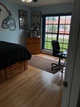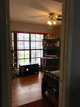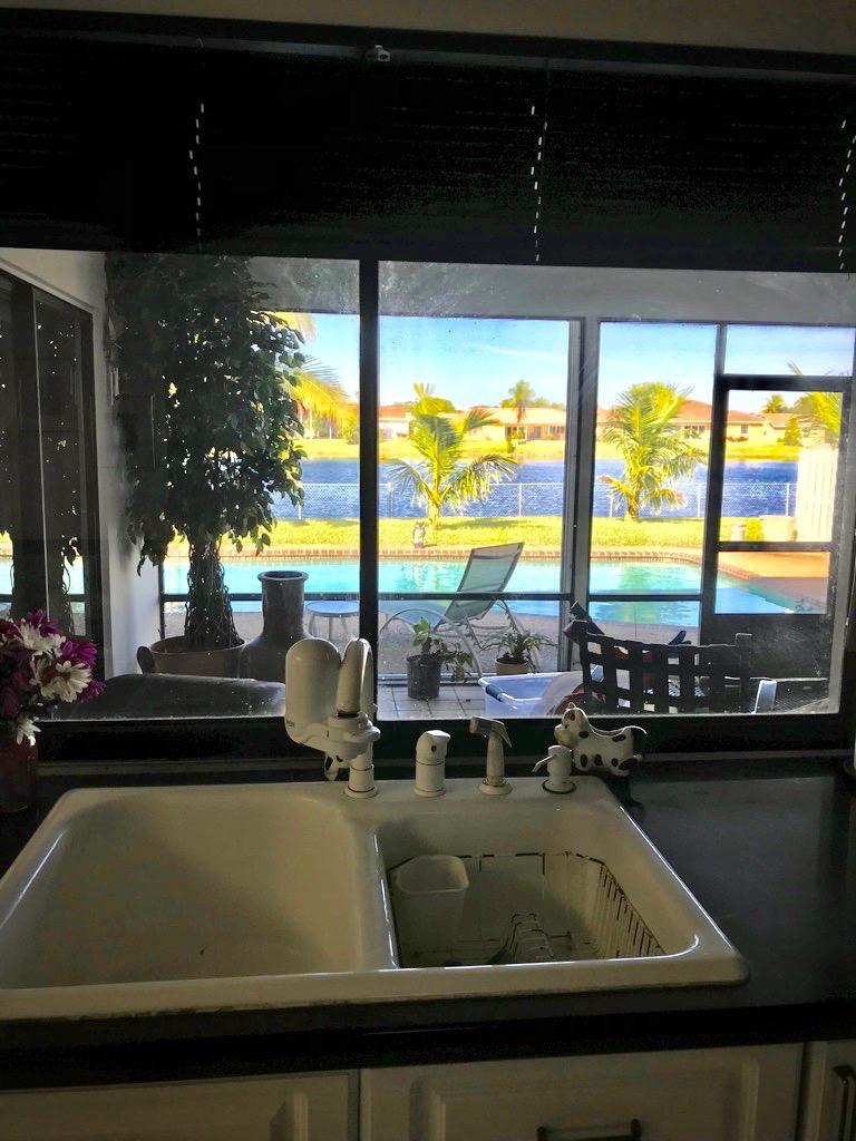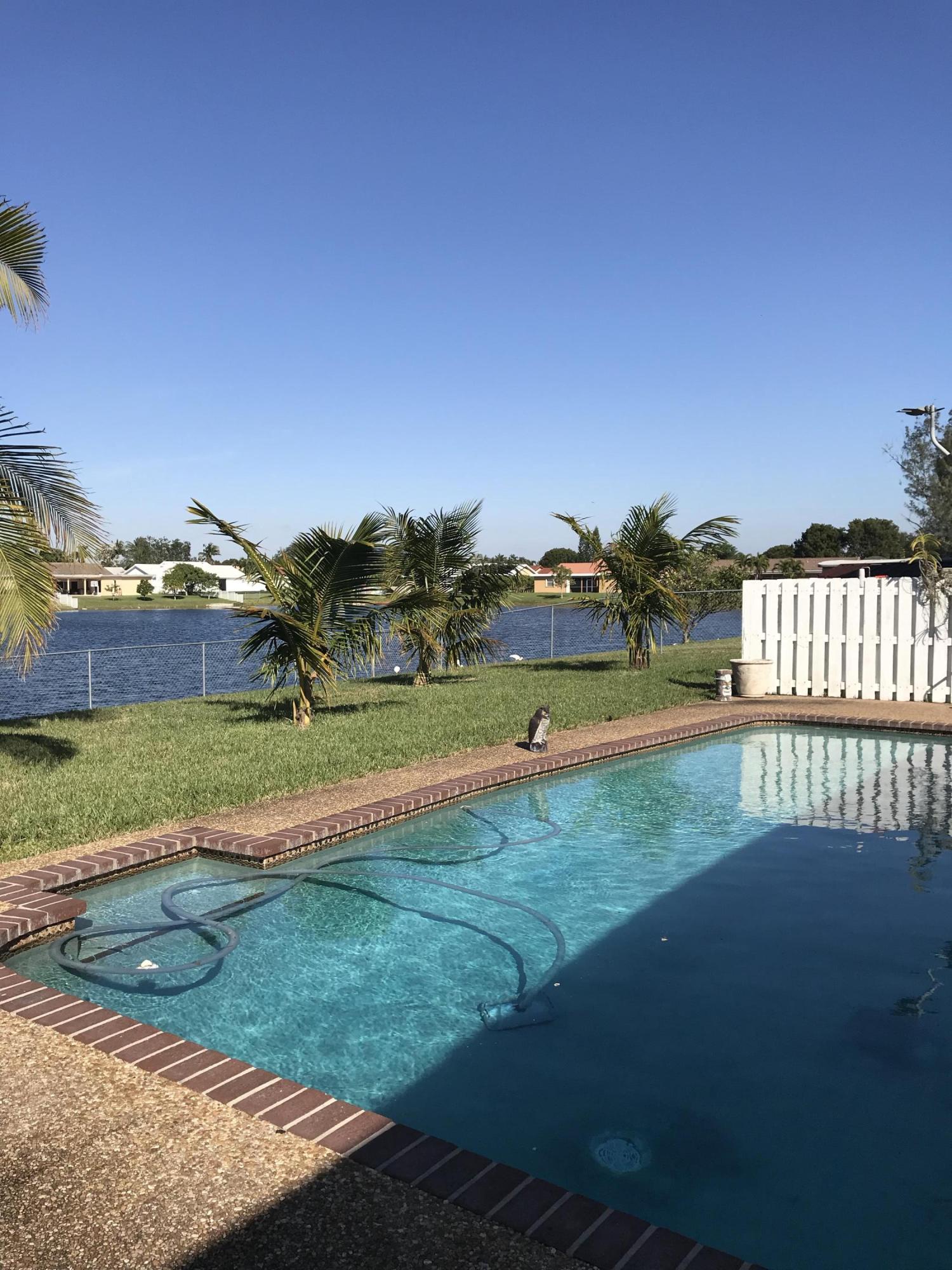 Lakefront 4/2.5 home in a peaceful neighborhood. View of pool and lake throughout the house (even from entry!). Plenty of space for entertainment and family, including living room, dining room, den, and breakfast nook. Entirely separate laundry room including additional bathroom leaves a more open area around the garage entrance. Security system with screen sensors installed. Accordion storm shutters come with the house as well. Fenced yard. Sprinkler system. The owners are willing to leave the pool table and movable electric fireplace upon buyer's request. The home owner's association fee is only $200/year for lake maintenance. This home's unique, spacious floor plan is no longer common in modern homes.