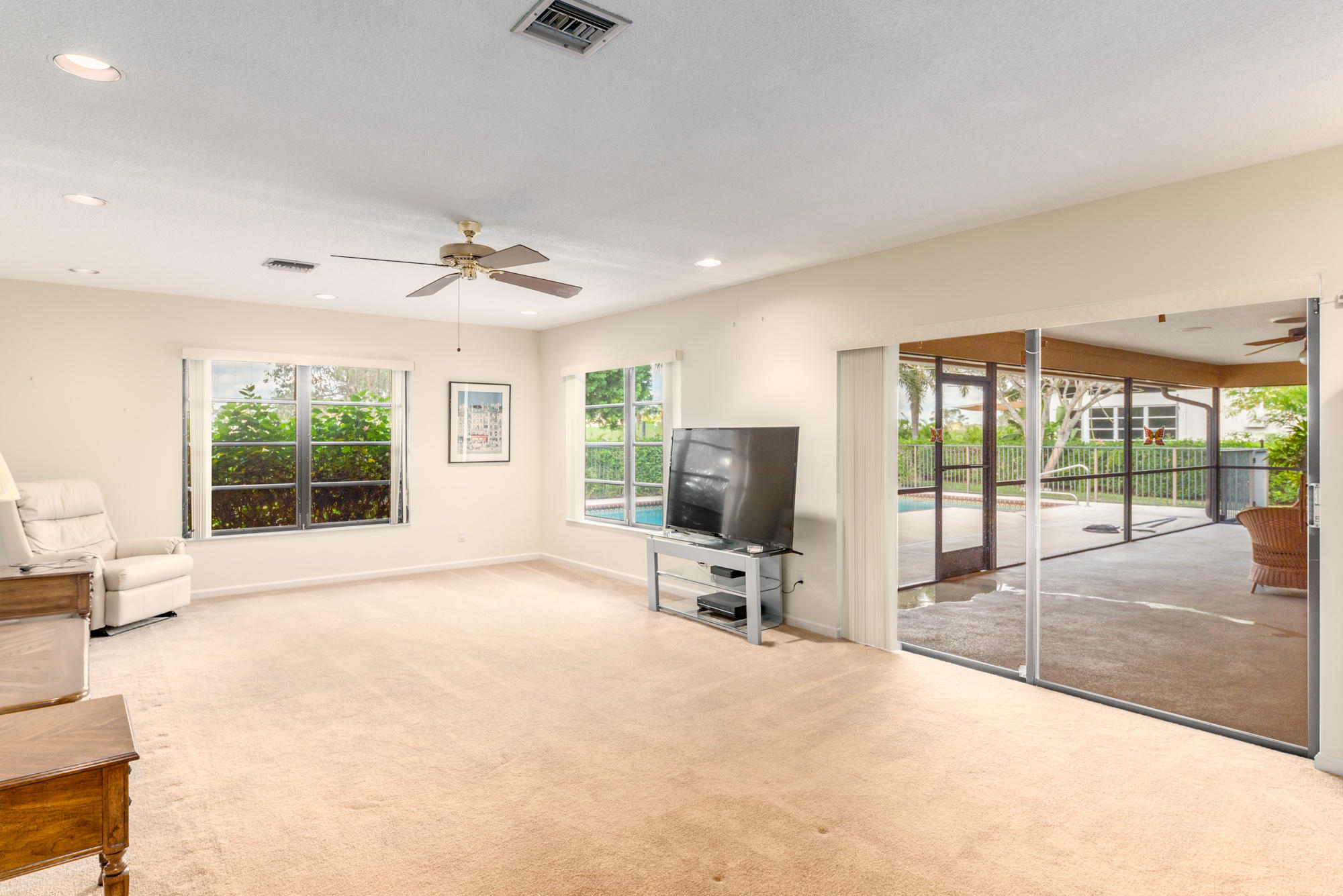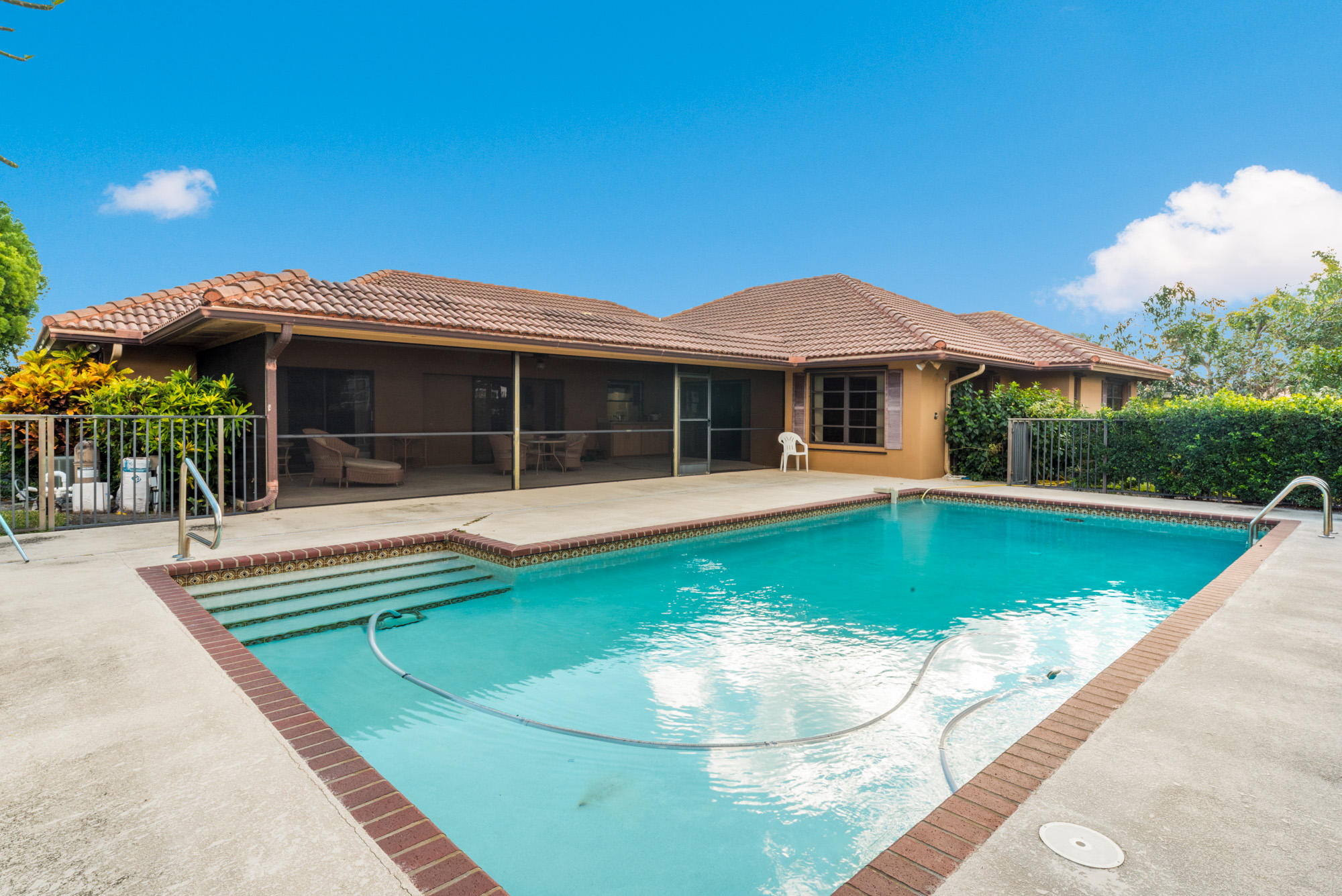 Charming 4 BR pool home on the golf course in desirable Presidential Estates. Move-in condition. Split bedroom plan. Centrally located gated community with tennis courts. Close proximity to shopping, airport, and Banyan Cay. Best value!