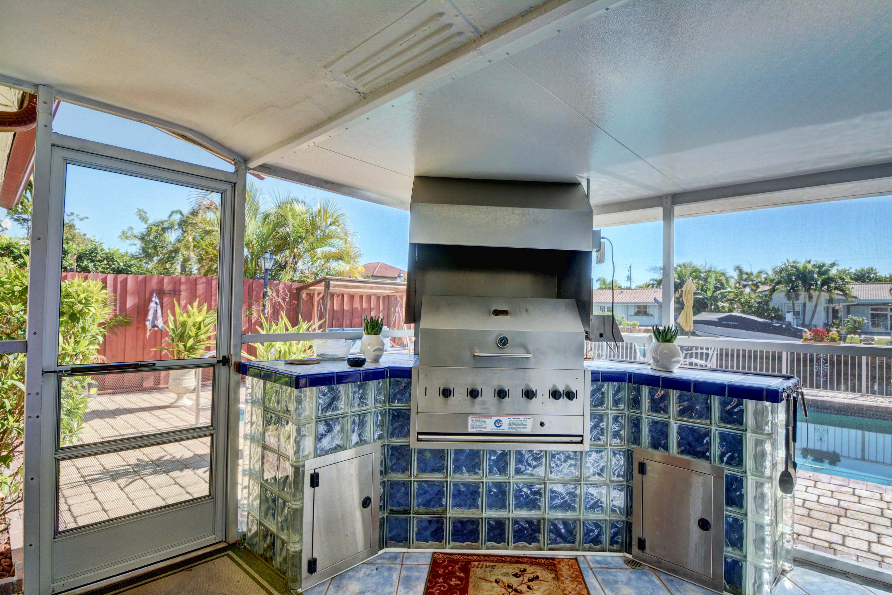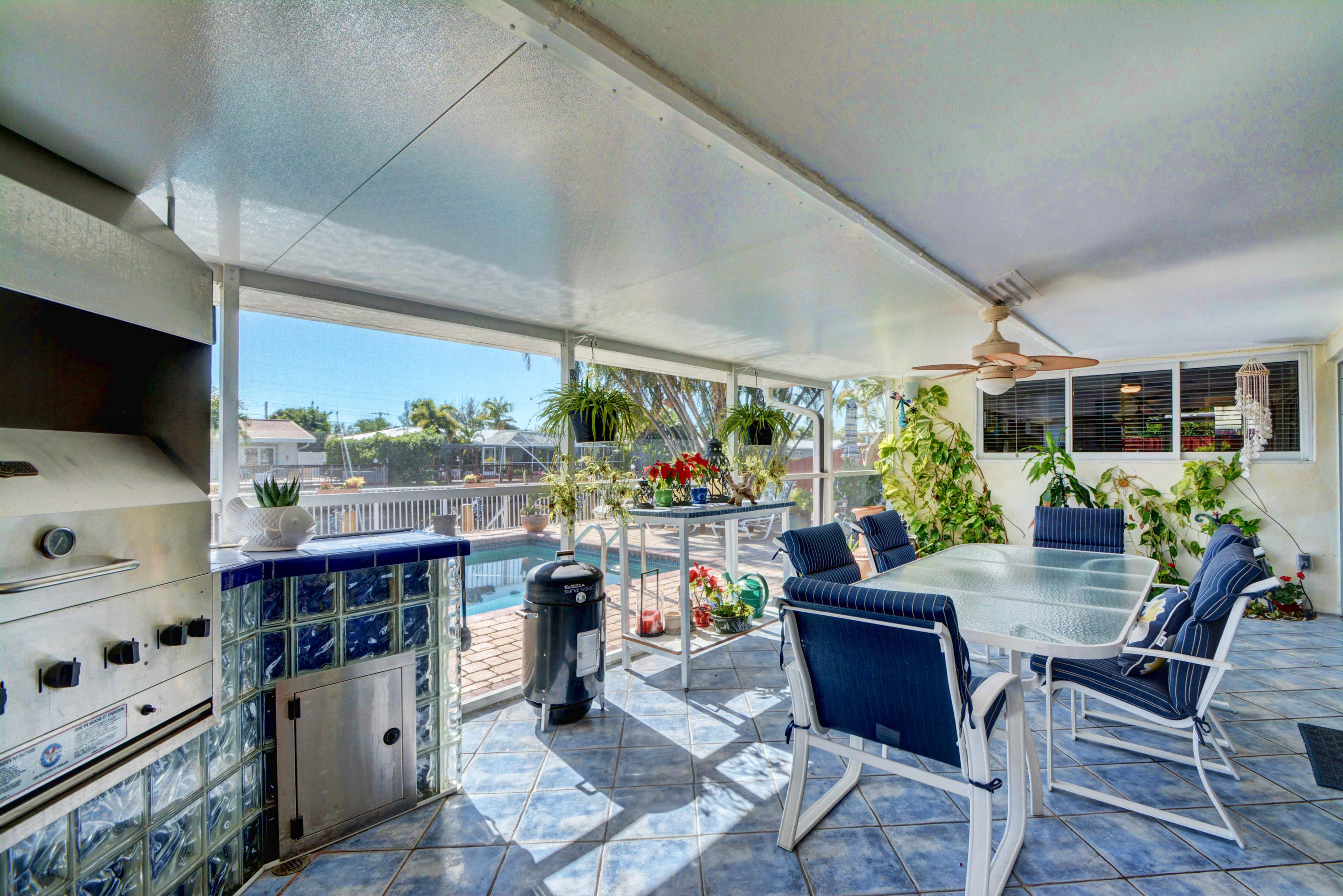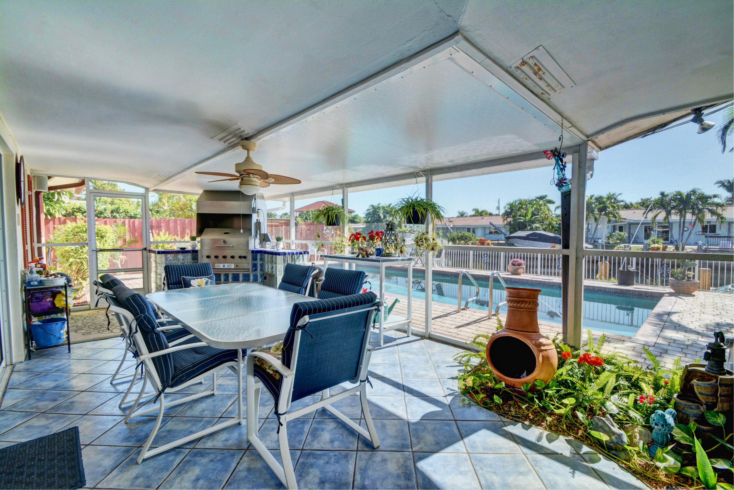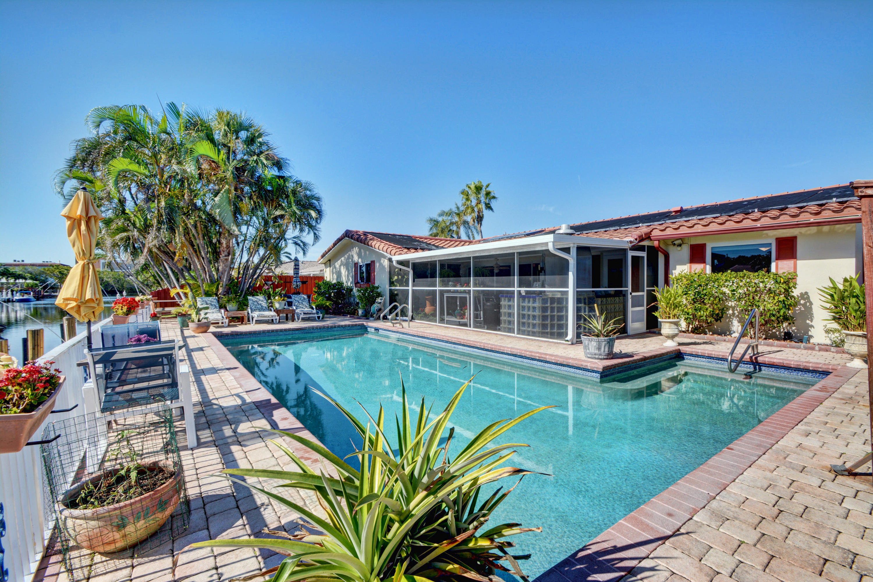Ocean Access! Feel right at home in this cozy waterfront home with ocean access. You'll love the open floor plan and great room/family room with fireplace and bay windows. Enjoy get togethers under the covered screened patio overlooking the pool area and water view, equipped with state-of-the-art built-in bbq grill. This home has it all - impact windows and doors, solar panels to heat the salt water oversized pool and hot water for the home, 3 year new dock, 3 year new roof, 4 year new A/C with HEPA filter, 3 year new gutters, upgraded kitchen cabinets, granite counter tops and top of the line newer stainless steel appliances, washer and dryer still under warranty, plenty of storage, circular driveway and much more.