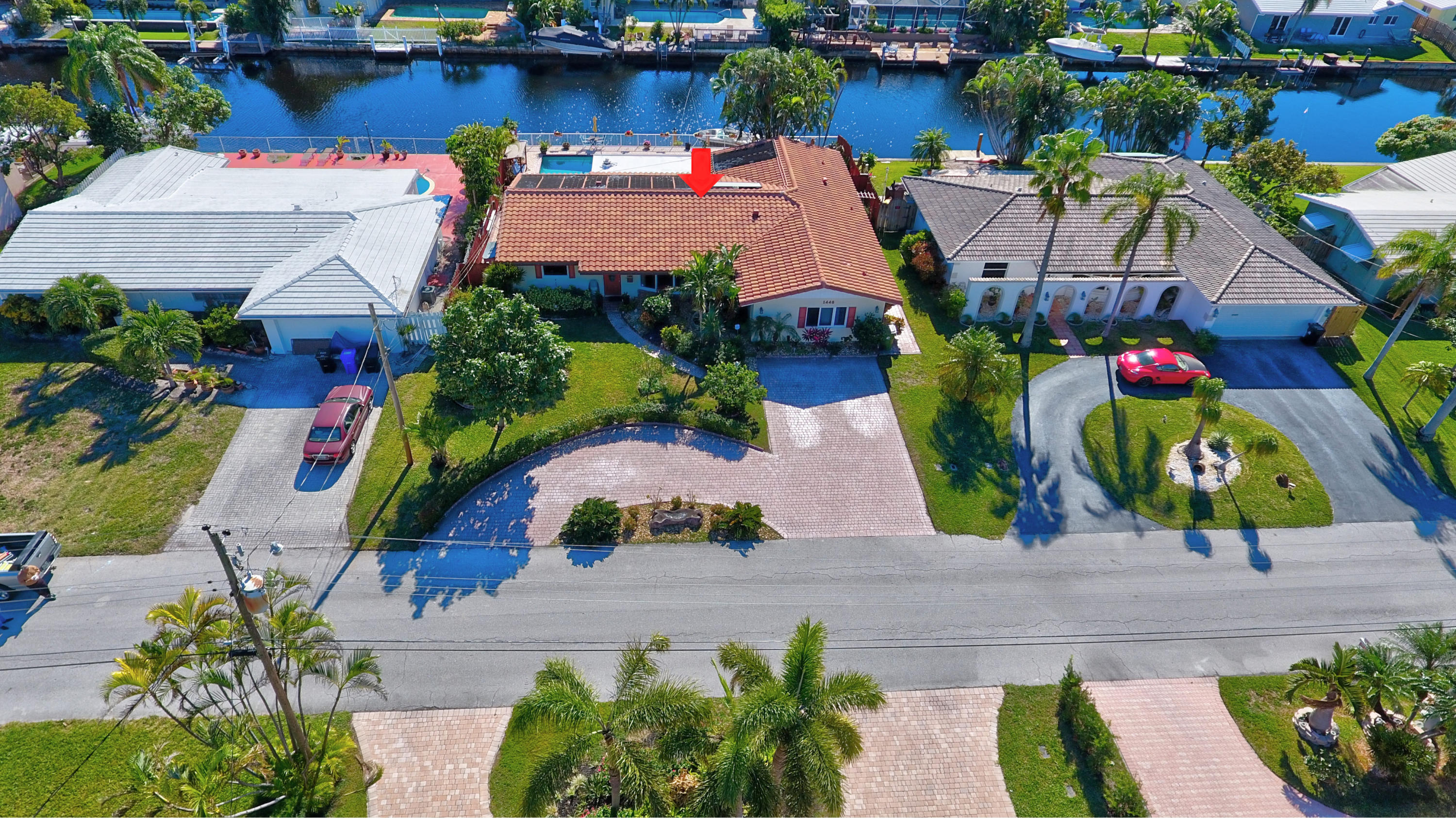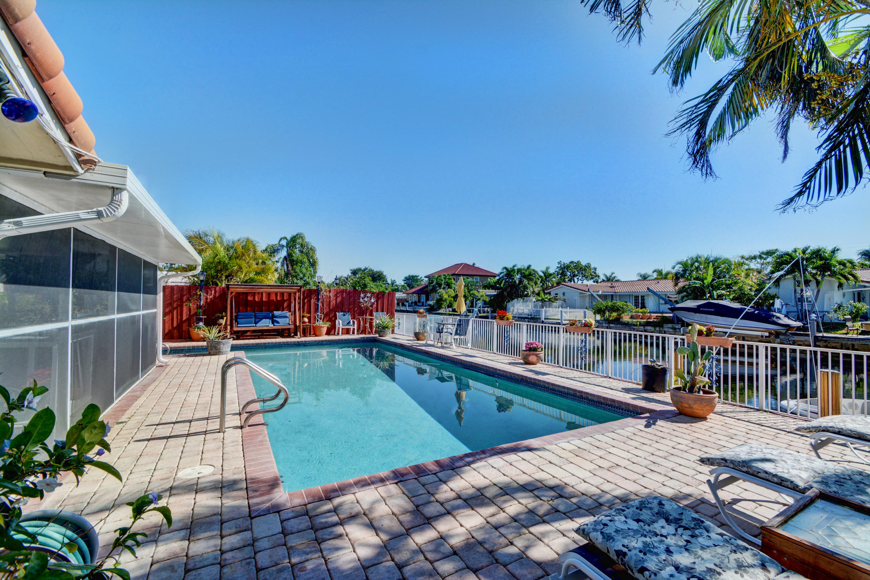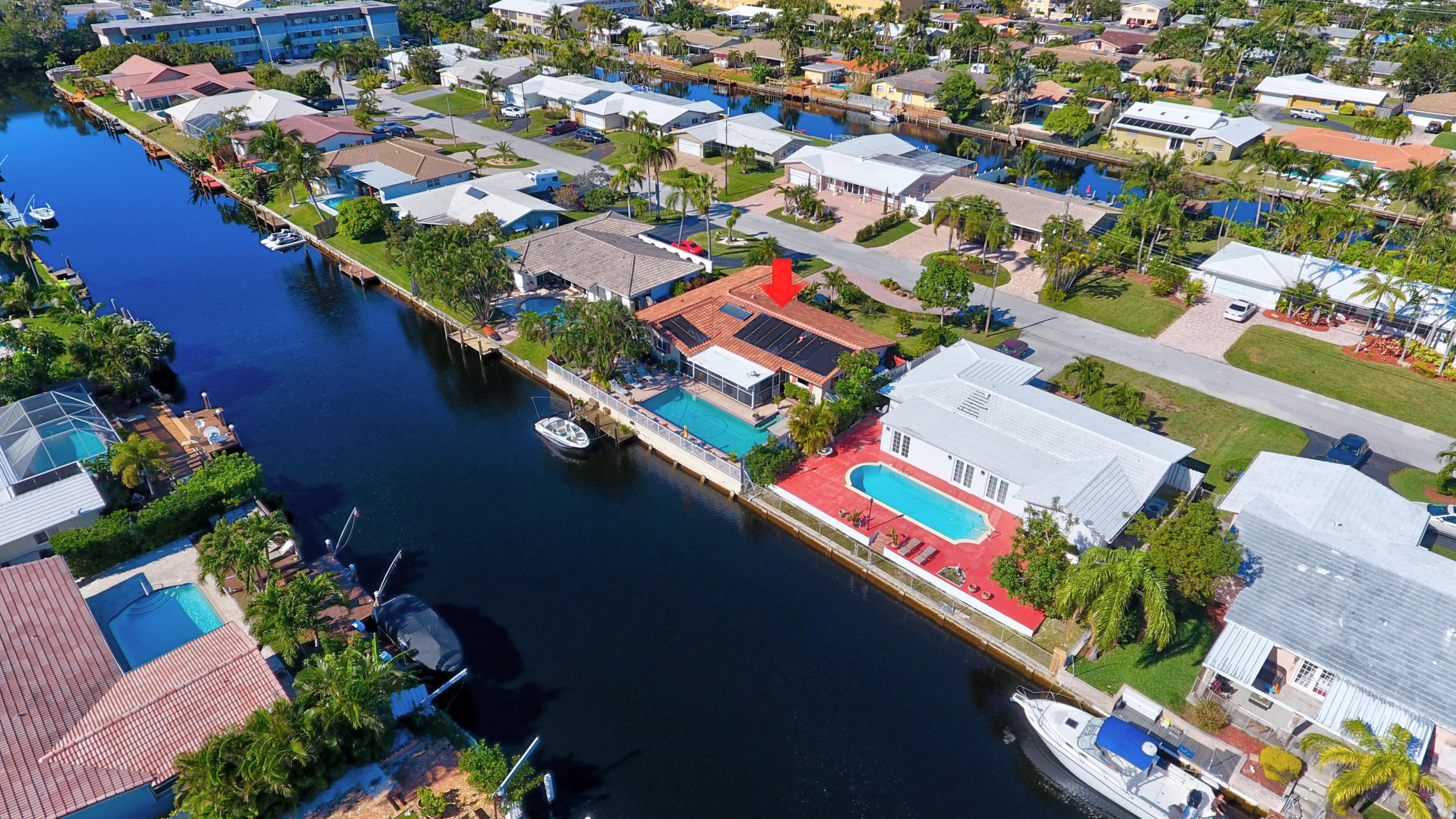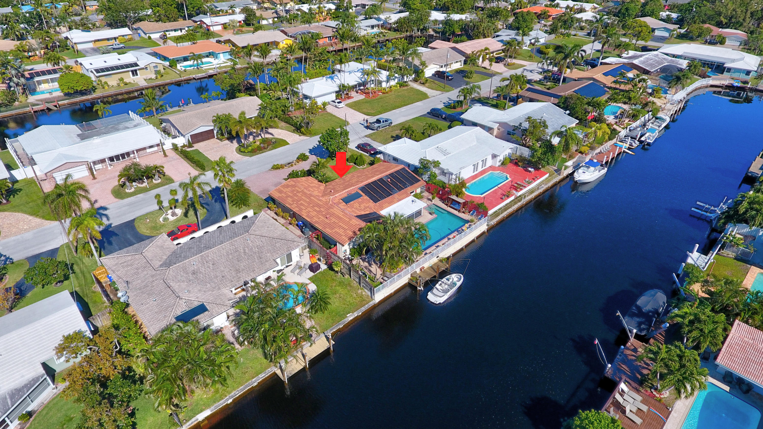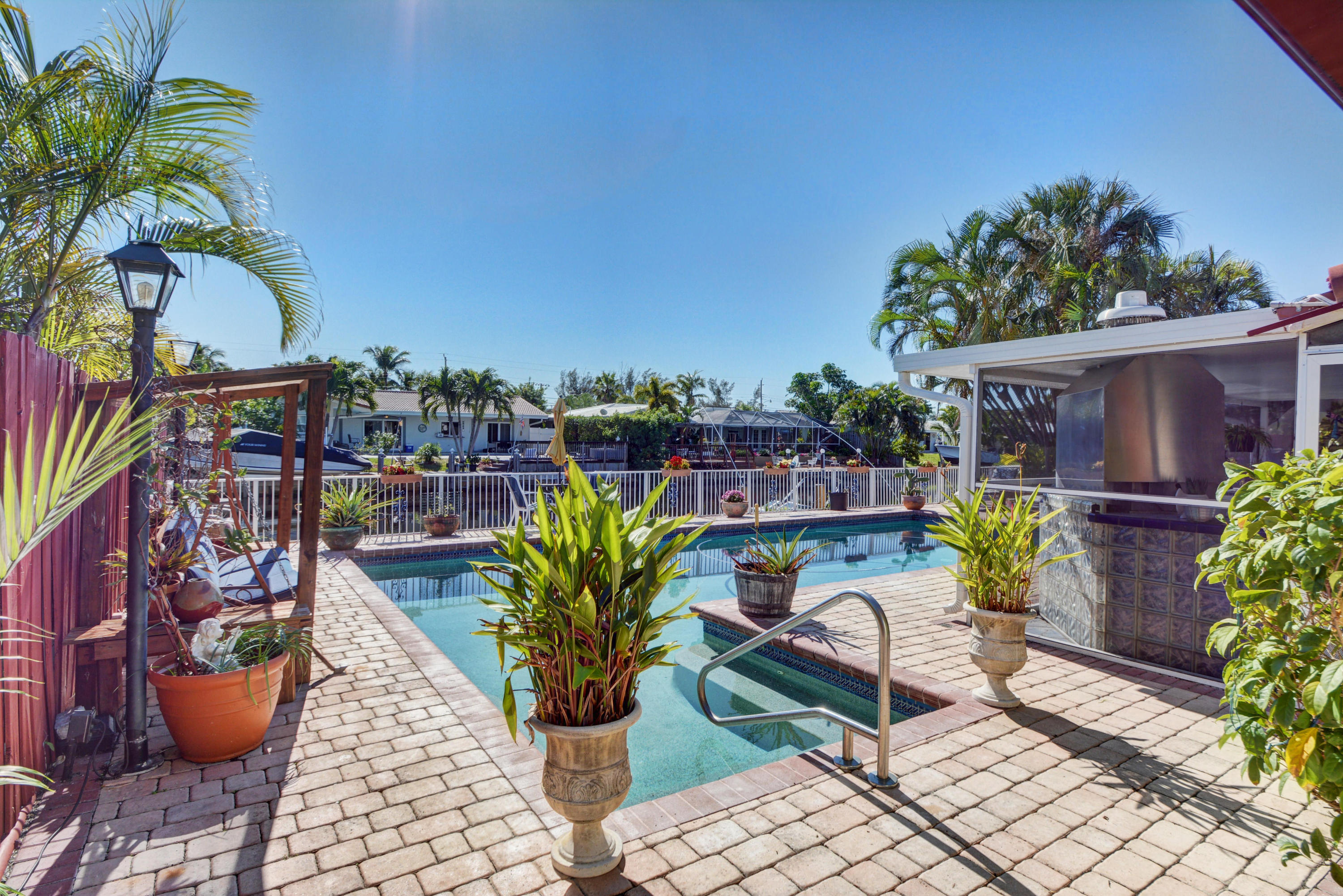 Ocean Access! Feel right at home in this cozy waterfront home with ocean access. You'll love the open floor plan and great room/family room with fireplace and bay windows. Enjoy get togethers under the covered screened patio overlooking the pool area and water view, equipped with state-of-the-art built-in bbq grill. This home has it all - impact windows and doors, solar panels to heat the salt water oversized pool and hot water for the home, 3 year new dock, 3 year new roof, 4 year new A/C with HEPA filter, 3 year new gutters, upgraded kitchen cabinets, granite counter tops and top of the line newer stainless steel appliances, washer and dryer still under warranty, plenty of storage, circular driveway and much more.
