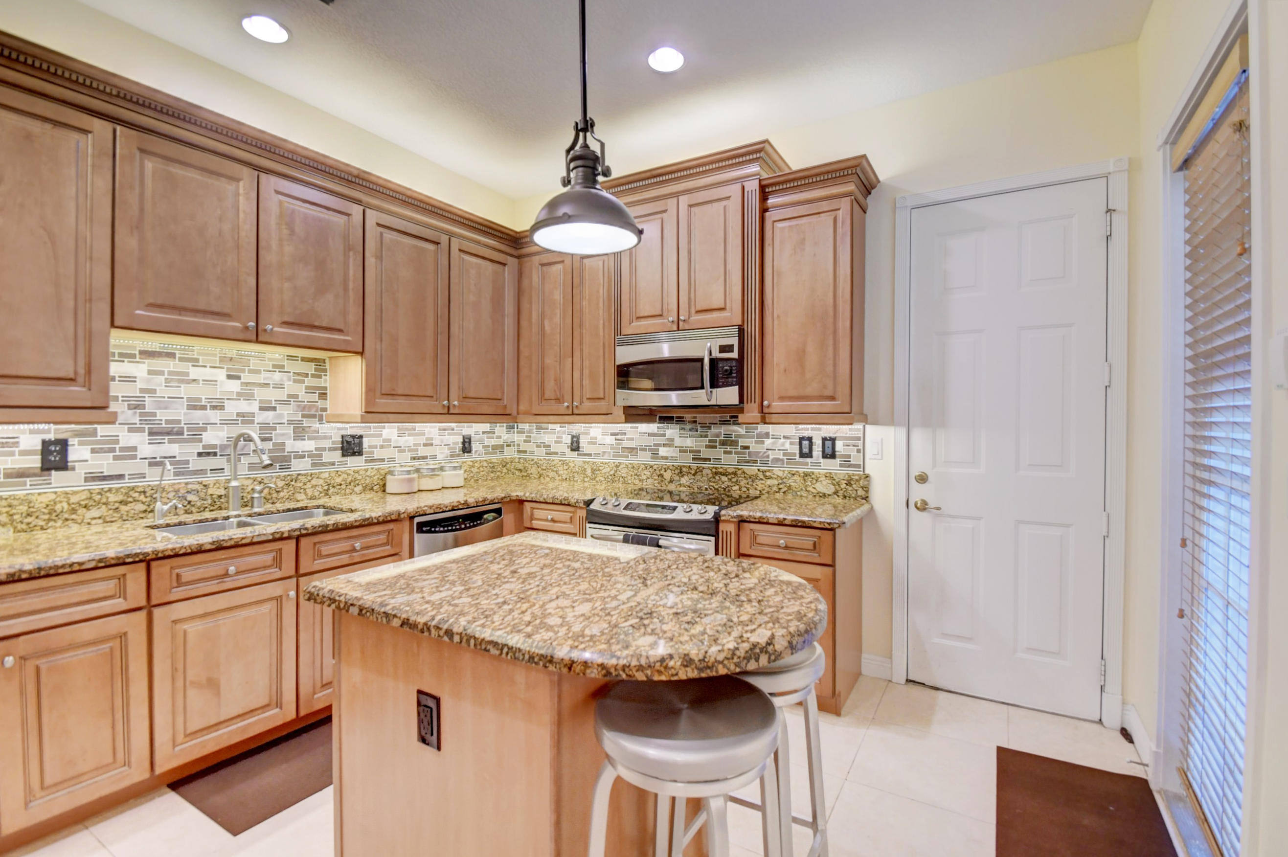 Former model in Central Park. Prime location in complex. Upgraded kitchen w/wooden cabinets,metal&glass backsplash,granite countertops,under cabinet LED lighting,SS appliances,storage island& reverse osmosis water sys. New paint inside and out(pressure washed as well). Tile downstairs&new carpet upstairs. 20 LED hi hats,water heater 3 yrs new.Attic floored&insulated. Central Vac. All hurricane impact windows,doors&garage door. Master suite complete w/crown molding,walk in clos,balcony,roman Jacuzzi tub,sep shower, double sinks&granite countertops. Large 2nd bedroom upstairs w/adjacent full bath. Decorative tile in tub/shower.Upstairs Laundry rm w/cabinets. 2 car garage. Close to corporate business parks,shopping,beach,restaurants. ''A'' rated schools.Pet friendly!Can rent out immed! Suppl.