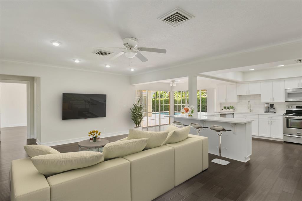 Large 3424sf under air family home in no HOA Palm Beach Farms with the best A+ Schools! New renovation featuring hardwood plank flooring in every room, new Master Bath, New Kitchen renovation with shaker cabinets, quartz countertops, carrera marble backsplash and all SS appliances. The paver patio is partially covered and has a huge pool and oversized grassy yard with fence and privacy hedge. Master has marble bath with jetted tub and expansive walk through closet. Home is an entertainer's dream with sliders that completely pocket off of kitchen/family room and also living room for tropical indoor/outdoor living. The Beach, Downtown Boca, Restaurants, Shopping and I-95 are only 1-2 miles away.
