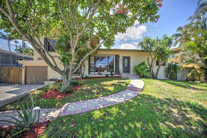 Lauderdale Isles deep water 3BR/2BA with 65 ft on ocean access canal, private dock, no fixed bridges. Beautifully shows interior and exterior w/pool & jacuzzi. The kitchen is completely renovated as are the bathrooms and hardwood floors. Fresh paint inside and out, this is truly ''move-in'' ready. The use of both a pool and a backyard is a unique feature for a home in this neighborhood. There is a single car garage and a two-car driveway. Bring your family and your boat, you will love living here.