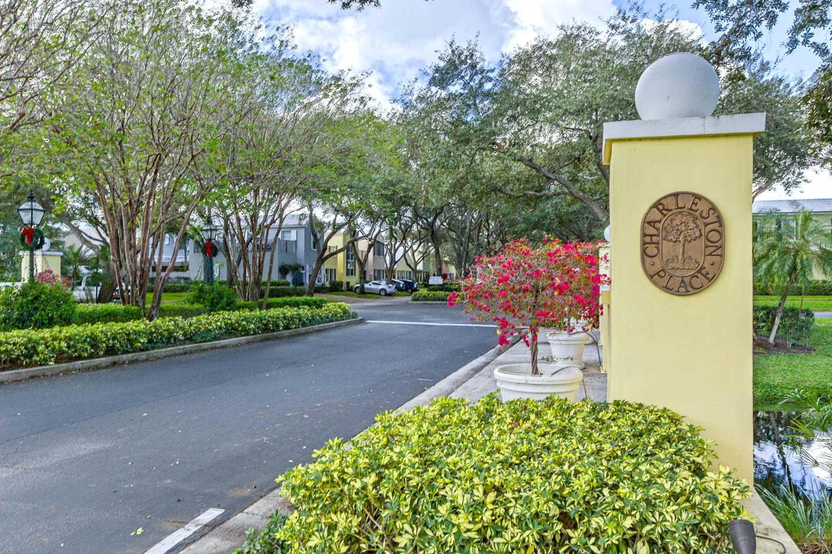 Ideal lake views and park views from all windows. - Superbly UPDATED with $200,000 of improvements 1 DOWNSTAIRS bedroom, IMPACT windows and french doors. NEW KITCHEN - Award winning community of Charleston Place - walking distance to restaurants, gym, salons yet not in a congested area of traffic. 4 Pools in community. 10 foot ceiling heights bathes the home in natural light. Kitchen, with park view was redesigned with the highest upgrades. - Custom solid wood cabinetry with island Designer lighting. Plantation shutters throughout 4 sets of Impact french doors overlook covered brick patio plus open patio with private view of lake. This is an end unit with total privacy. Charleston Place is a tree lined community designed by famed architects Andres Duany & Elizabeth Plater-Zyberk