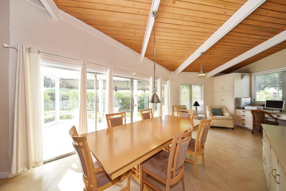 ''The Geckoes" is a mid-century modern architectural gem-one of the last remaining South Florida properties designed by Palm Beach architect Byron Simonson who also designed the Colony Hotel and the former La Coquille Club in Manalapan, and was a protege of Addison Mizner and Maurice Fatio. The Geckoes is less than 500' from the Intracoastal Waterway. The owners, the Lord and Lady of Wrentnall, have architecturally restored the interior (2012-2015)-keeping it as original as possible to the original blueprints which the owners have: built-ins, cabinets, vaulted cypress ceilings and commanding exposed beams. An open floor plan lends easy transition from the more formal living room area to long dining room, work/office area and a pleasantly functional open kitchen in keeping with the design.
