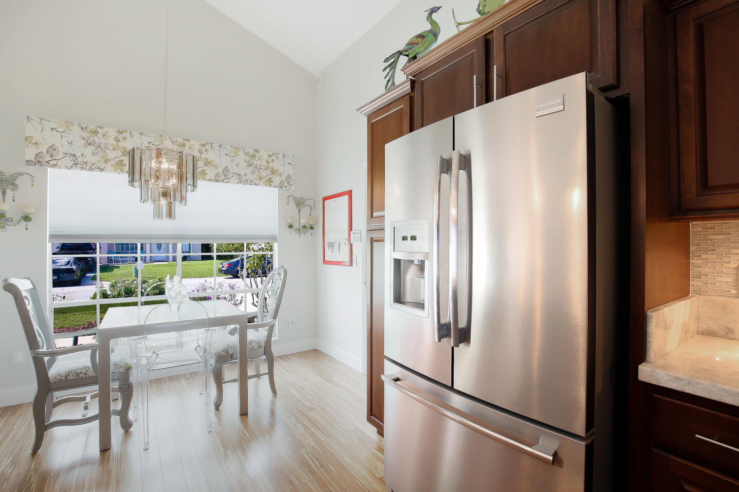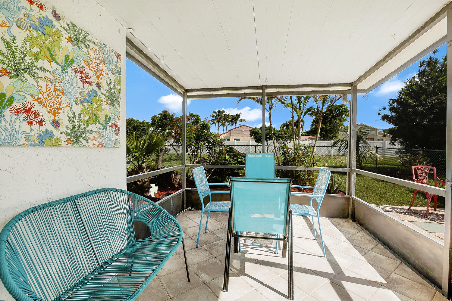 Lots of glamour is packed into this adorable, remodeled home on a private, beautifully landscaped, fenced lot! The open kitchen has wood cabinets with Lazy Susans, pantry, quartzite counters, luminous glass backslpash, large undermount sink, stainless steel appliances including a slide-in convection oven, microwave & French door refrigerator. Sparkling pendant lights grace the breakfast bar. Bamboo & laminate flooring throughout. NO POPCORN CEILINGS in living areas! 2nd bathroom has soaking tub/shower combo with gorgeously funky faucet & rainshower,full tile to ceiling, glass vessel sink & pretty wood vanity. Master Suite has two spacious linear closets,updated bathroom w/wood vanity, granite counter, floor to ceiling tile, crown molding + rainshower. Clear hurricane panels. Pool & Tennis