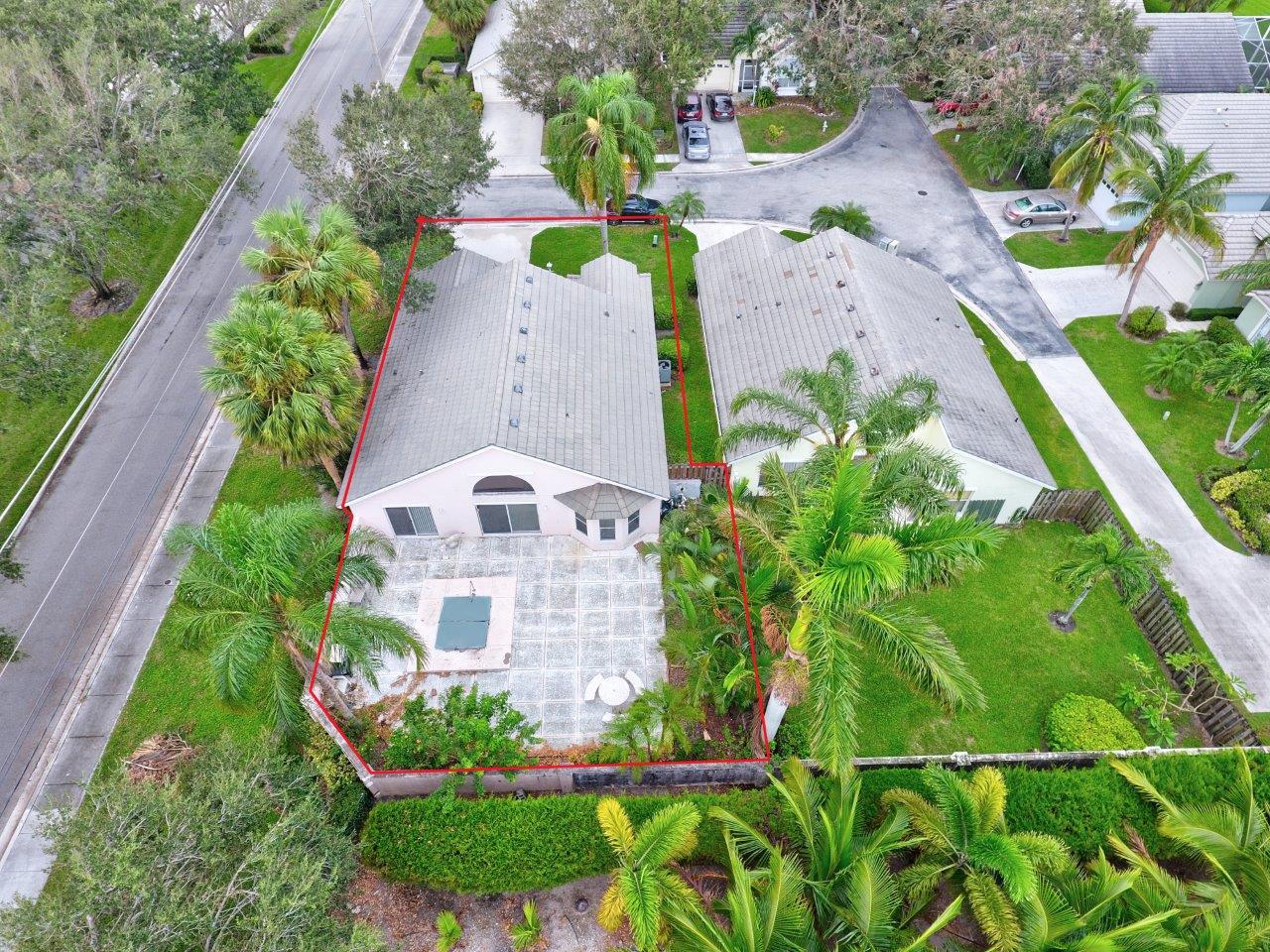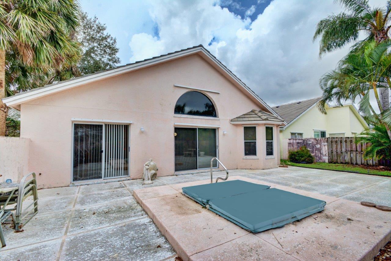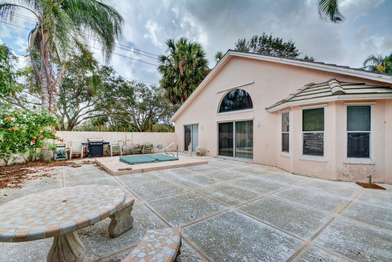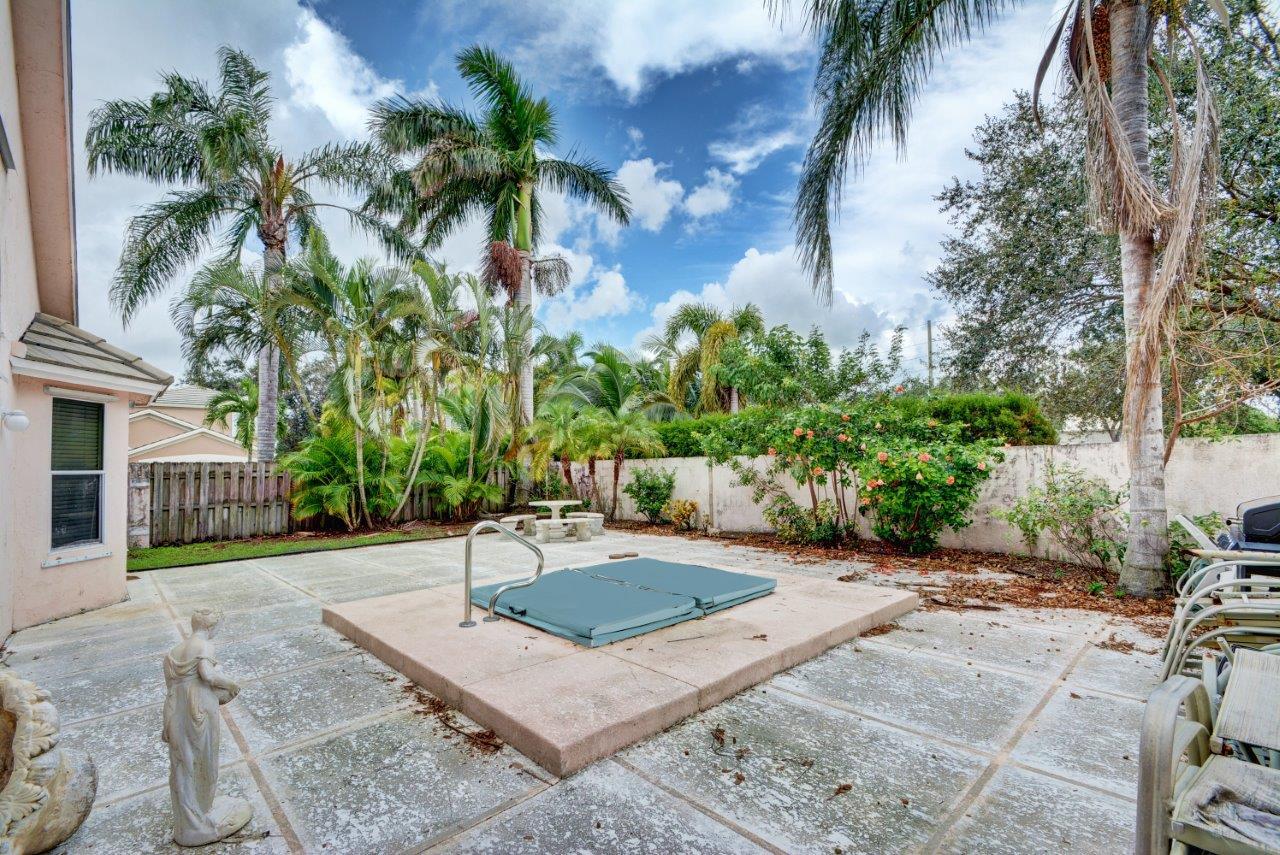 Superb location between Military Trail and Village Blvd just off Cumberland across from green space. Private courtyard surrounding welcoming heated in-ground spa with large open patio ready to be made into your tropical oasis. Great spot for gatherings, a quiet spot for coffee in the early morning or a glass of your favorite at sunset. Three bedroom along with two baths. New carpeting in master bedroom. Tile throughout main. Easy access to dining, shopping (Outlet Mall), sports venues (new Spring Training facility), beaches, airport and more. Walking distance to community recreational facilities that include pool, tennis, racquetball and basketball courts along with a picnic area and playground.Close to schools.