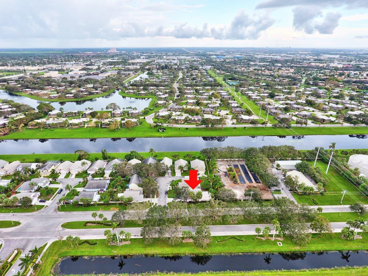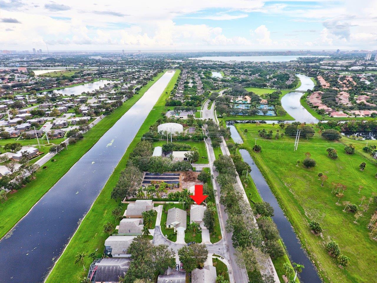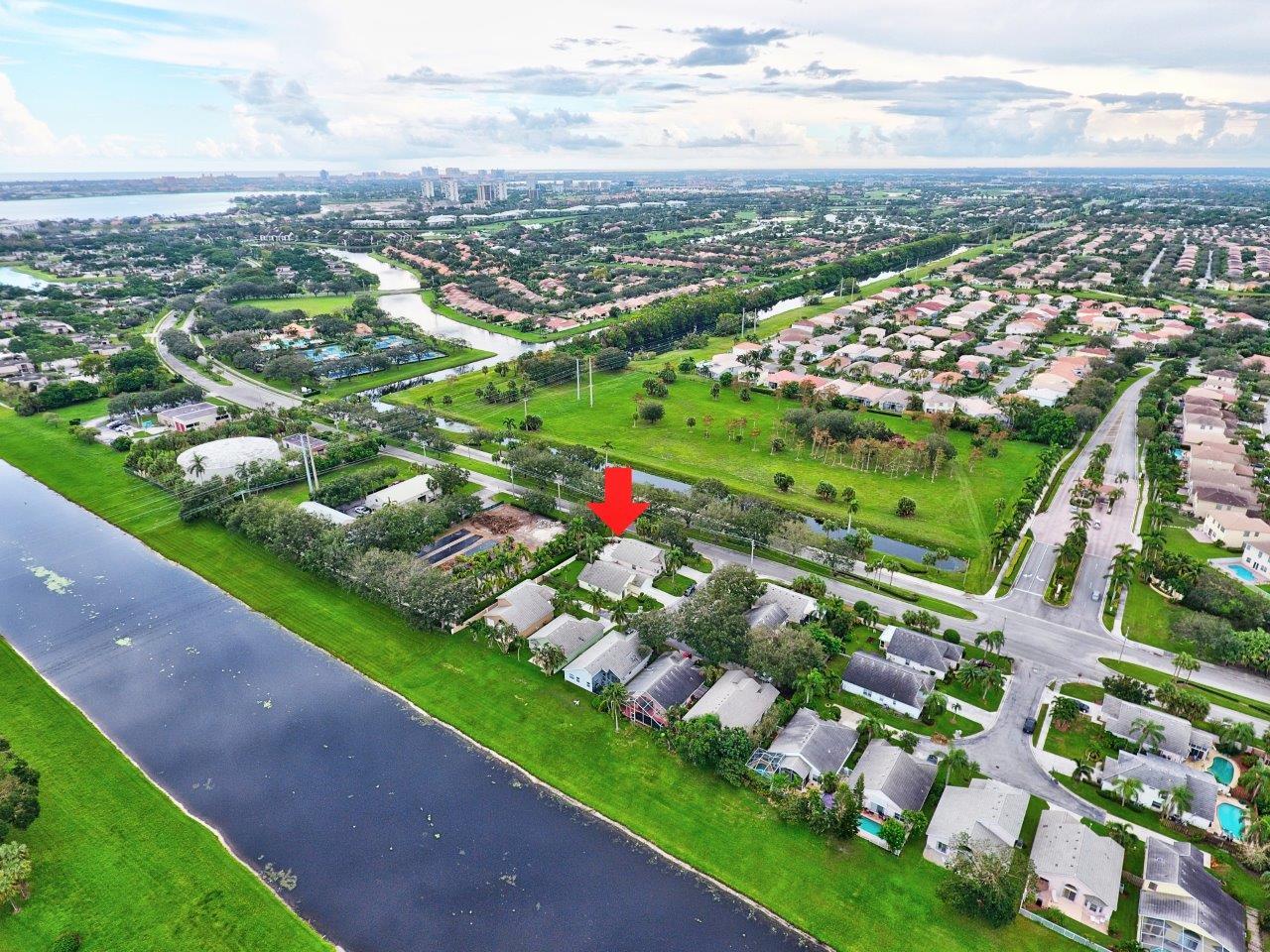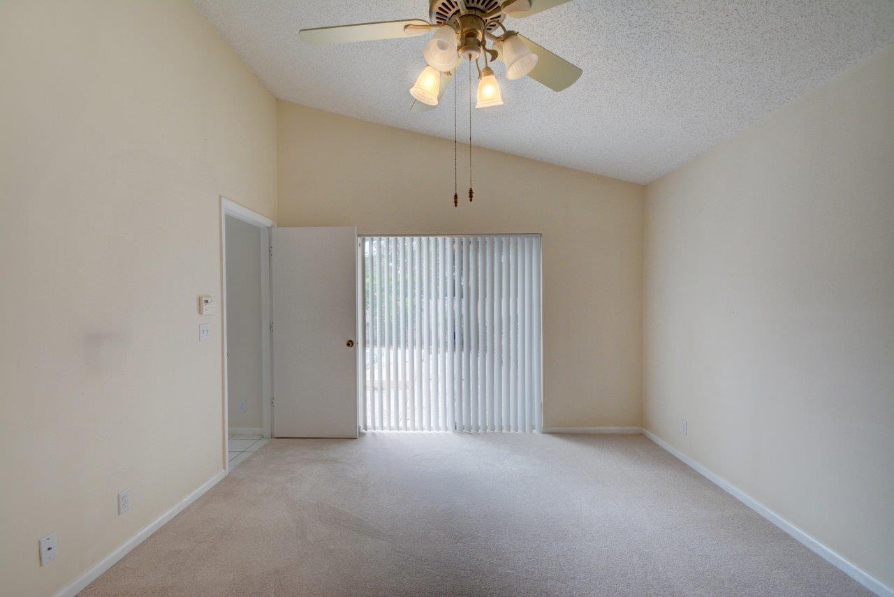 Superb location between Military Trail and Village Blvd just off Cumberland across from green space. Private courtyard surrounding welcoming heated in-ground spa with large open patio ready to be made into your tropical oasis. Great spot for gatherings, a quiet spot for coffee in the early morning or a glass of your favorite at sunset. Three bedroom along with two baths. New carpeting in master bedroom. Tile throughout main. Easy access to dining, shopping (Outlet Mall), sports venues (new Spring Training facility), beaches, airport and more. Walking distance to community recreational facilities that include pool, tennis, racquetball and basketball courts along with a picnic area and playground.Close to schools.