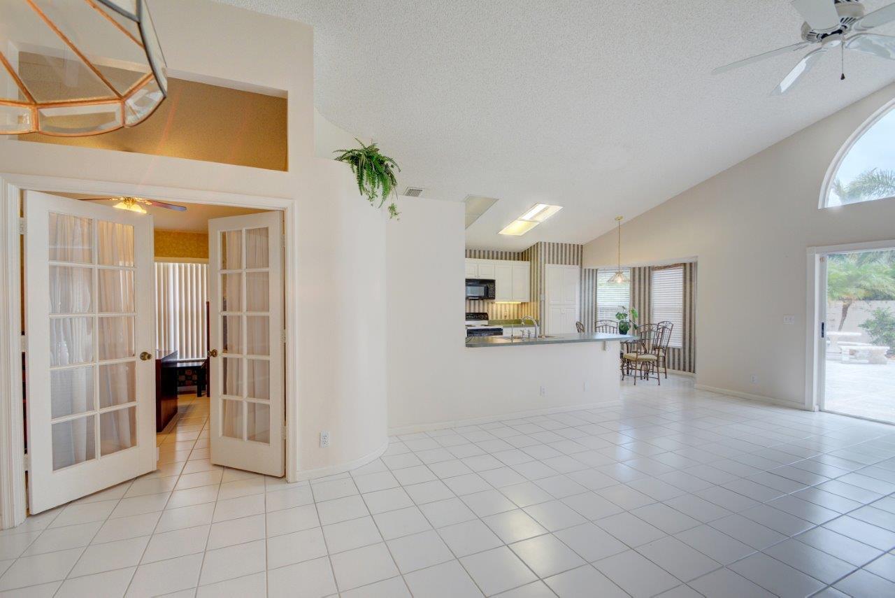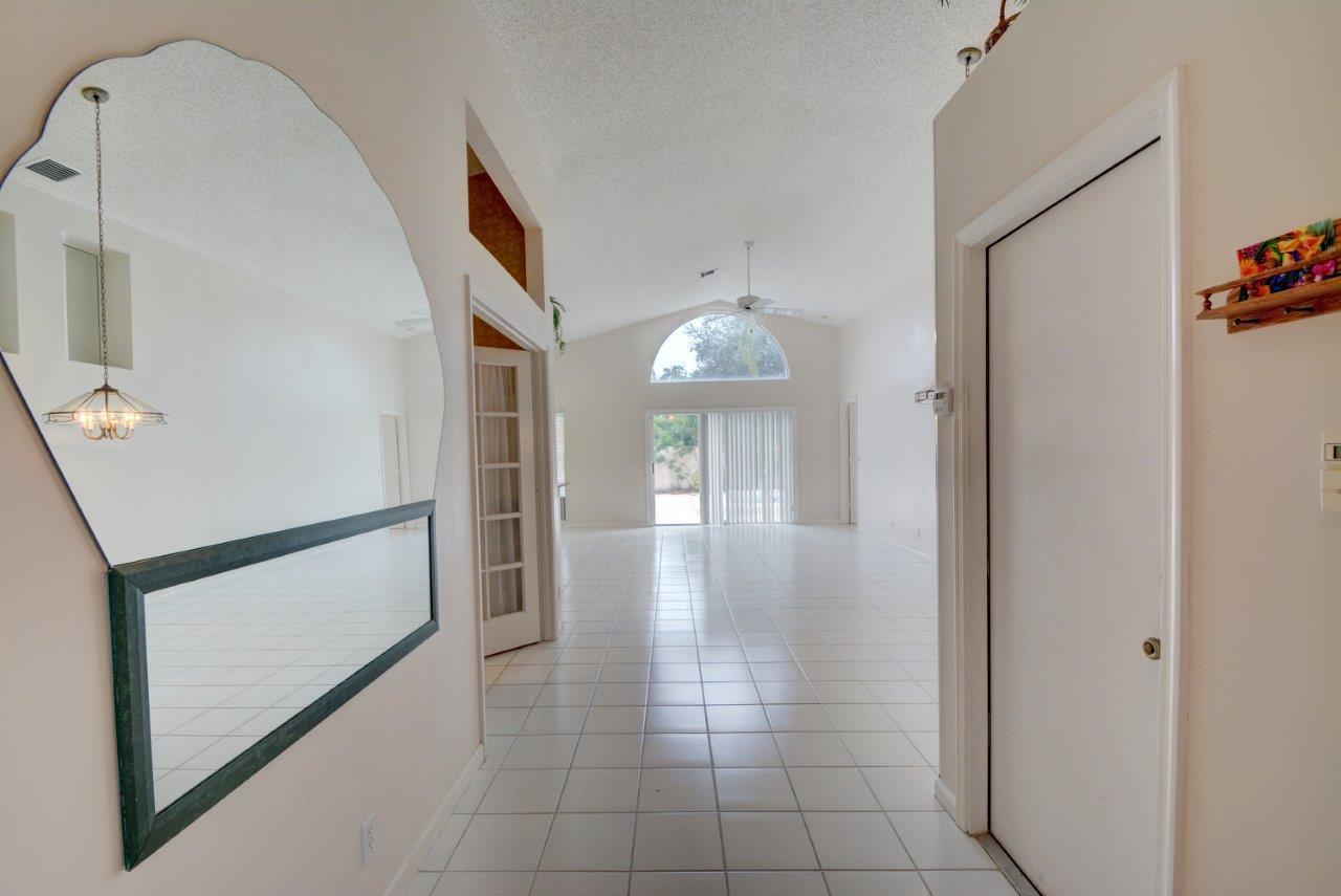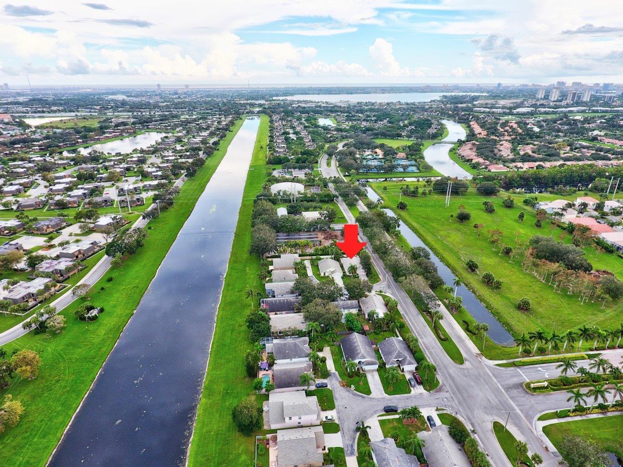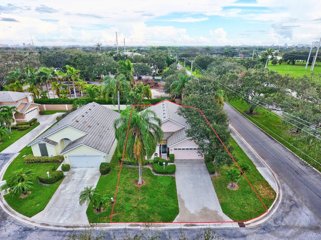 Superb location between Military Trail and Village Blvd just off Cumberland across from green space. Private courtyard surrounding welcoming heated in-ground spa with large open patio ready to be made into your tropical oasis. Great spot for gatherings, a quiet spot for coffee in the early morning or a glass of your favorite at sunset. Three bedroom along with two baths. New carpeting in master bedroom. Tile throughout main. Easy access to dining, shopping (Outlet Mall), sports venues (new Spring Training facility), beaches, airport and more. Walking distance to community recreational facilities that include pool, tennis, racquetball and basketball courts along with a picnic area and playground.Close to schools.