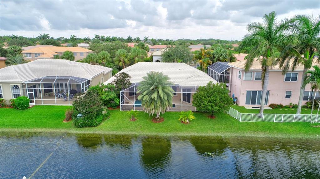 Beautifully renovated 4 bedroom, 2-1/2 bathrooms one-story pool home w breathtaking lake views. House has been freshly painted inside and new wood laminate has been installed in the bedrooms. Kitchen features dark custom cabinets, granite countertops, stainless steel appliances & breakfast bar. Master bathroom has slate tiles and jacuzzi tub, double sinks and separate shower. Master bedroom has custom closet treatments. Home has hurricane shutters. Community amenities include basic cable w HBO & Internet, clubhouse, heated pool, hot tub, sauna & steam room, gym offering free fitness classes, tennis programs at the tennis center, basketball, racquetball, soccer field, and racquetball courts. Residents can enjoy Happy Hour every other Friday at the Gazebo (BYOB). Close to all. A+ Schools.